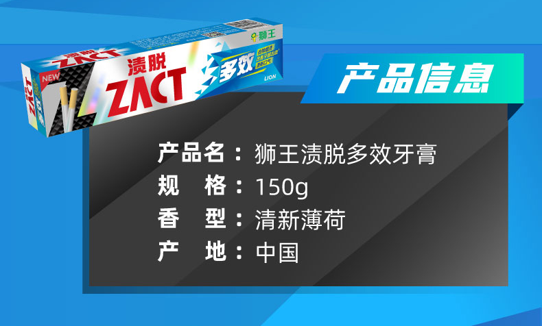 狮王(Lion)渍脱多效去烟渍牙膏含氟成人牙膏国产牙膏 薄荷香型 150g 2支
