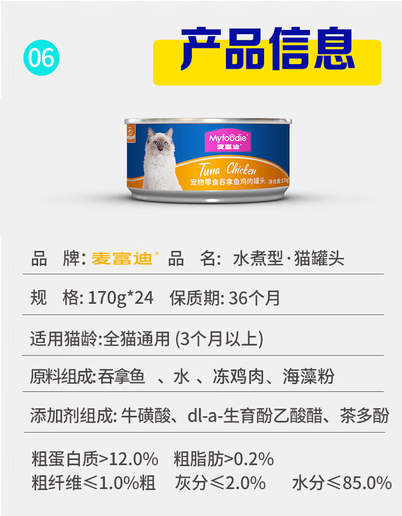 麦富迪 猫罐头 宠物猫咪零食猫湿粮罐头 吞拿鱼鸡肉味 170g*24