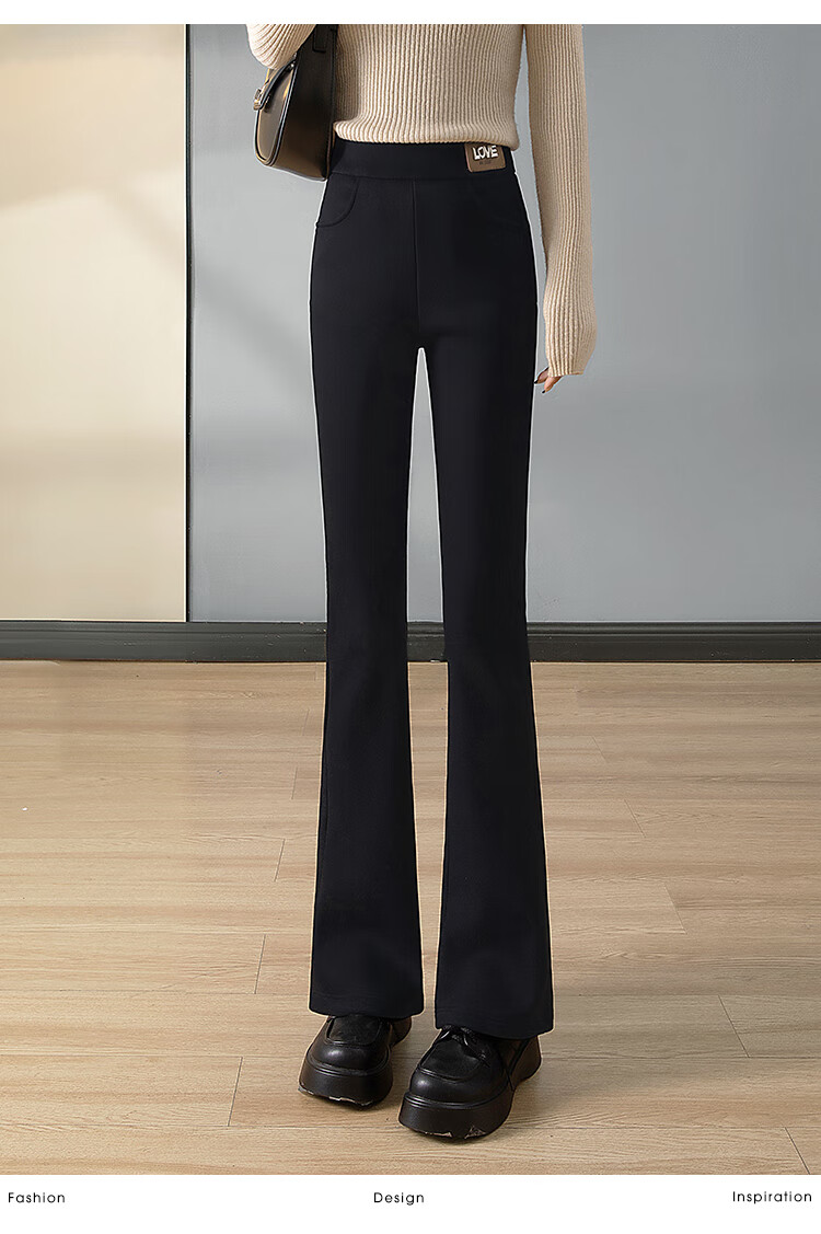 丝柏舍高腰休闲裤2025冬装新款女装显瘦加绒长款喇叭裤