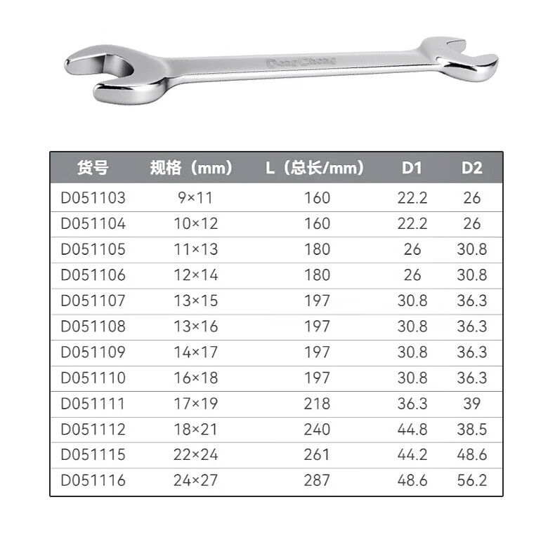 东成 镜面双开口扳手省力扳手多功能家用维修工具五金工具镜面扳手 5.5×7mm镜面双开口扳手D051101