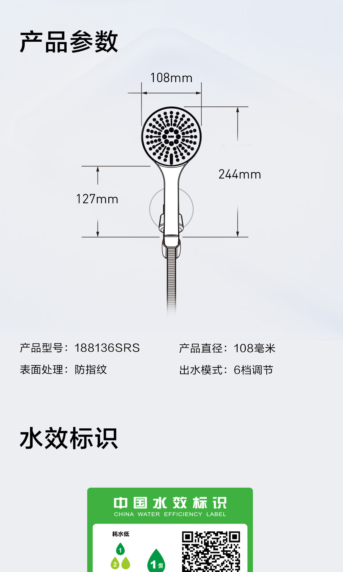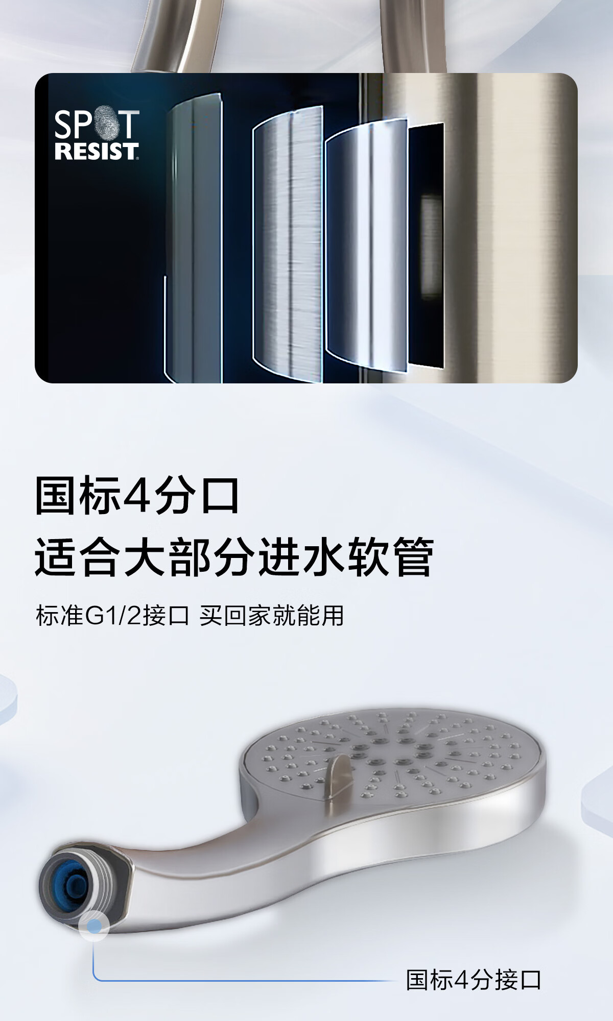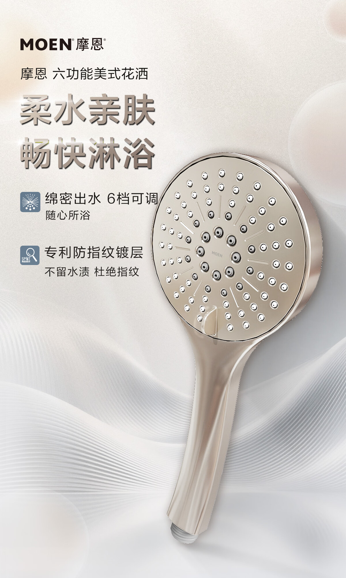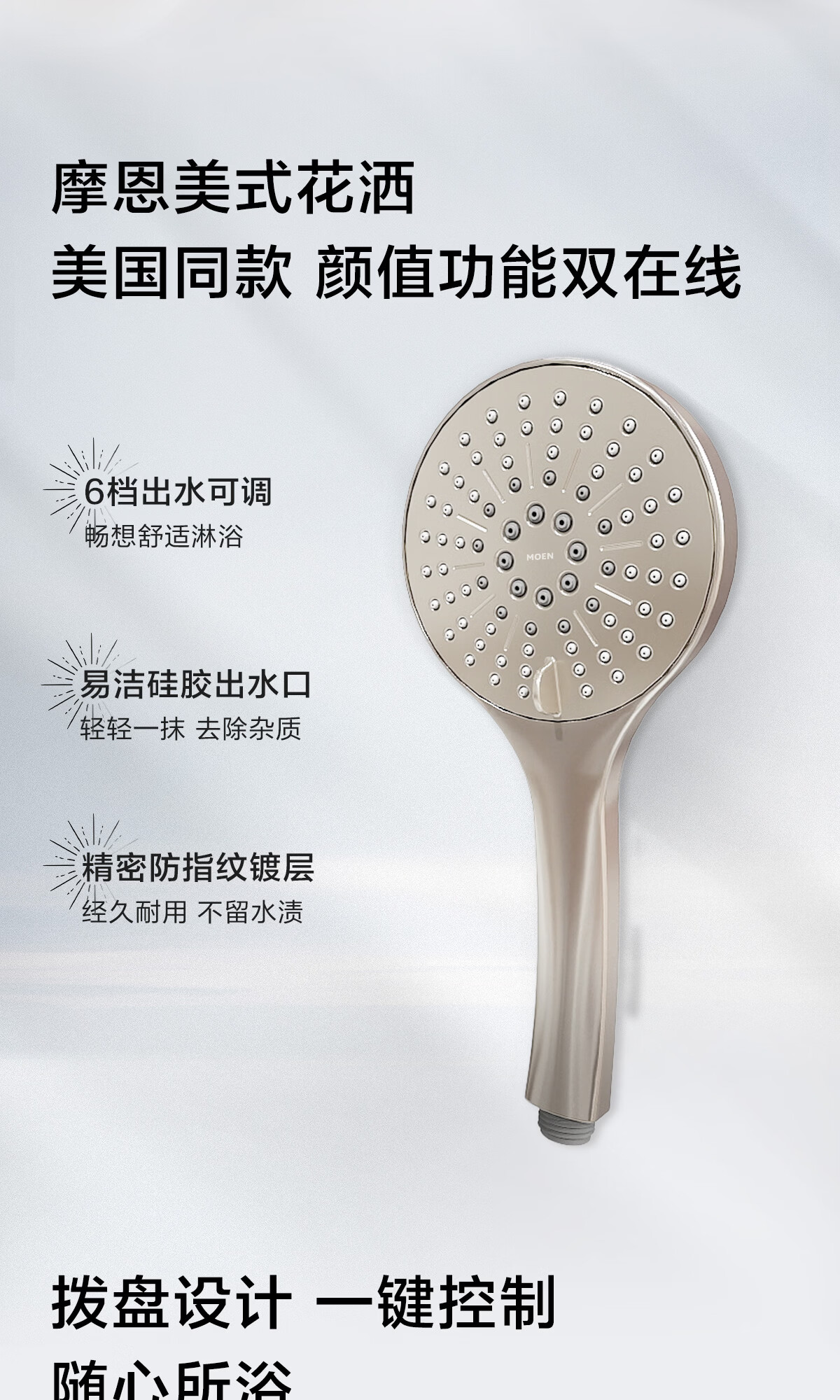 摩恩手持花洒防指纹花洒喷头六种出水方式多功能浴室淋浴花洒配件 摩恩防指纹手持花洒
