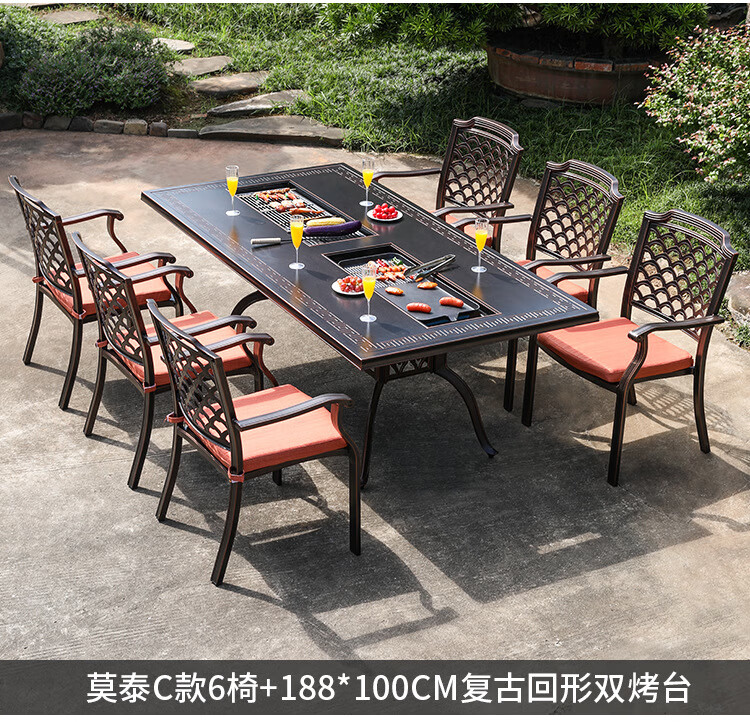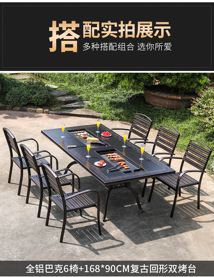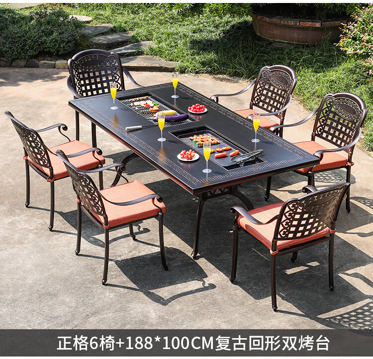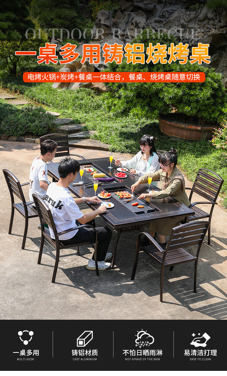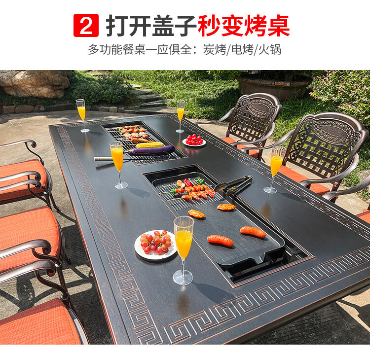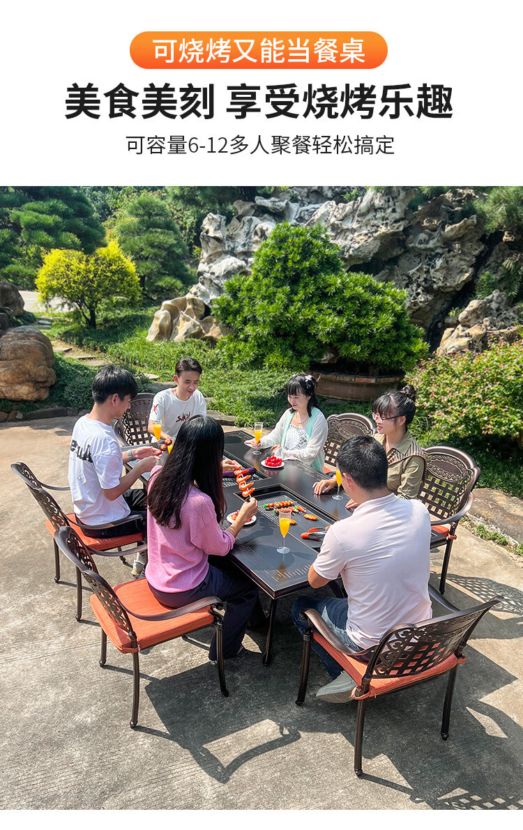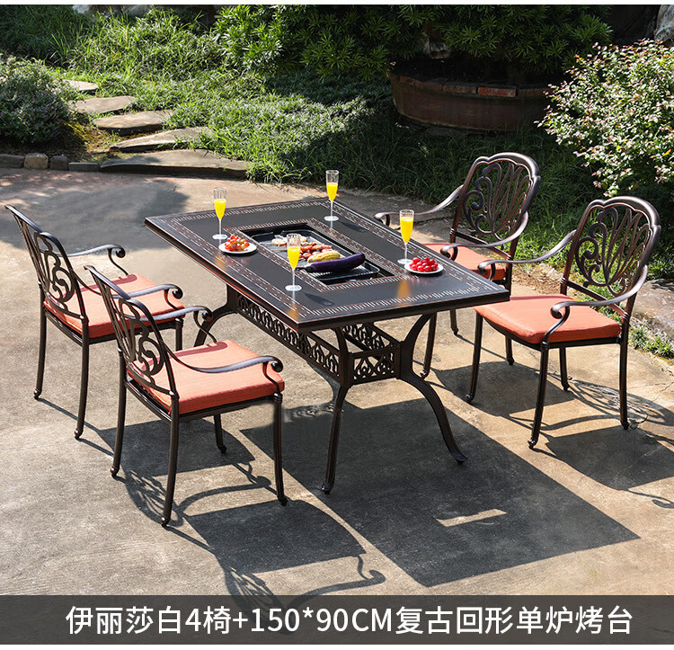 gosoo 户外桌椅庭院别墅围炉煮茶烧烤餐桌椅电烤炭烤火锅铸铝椅正格椅