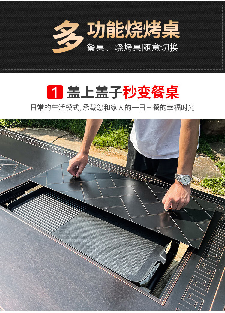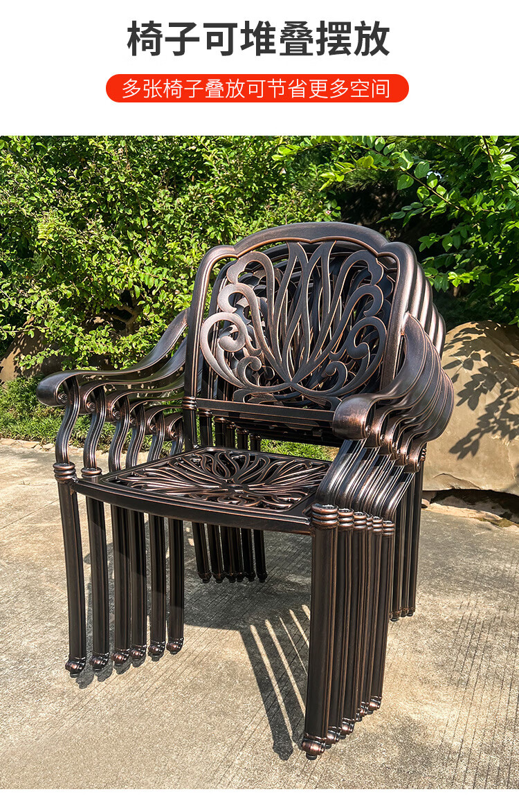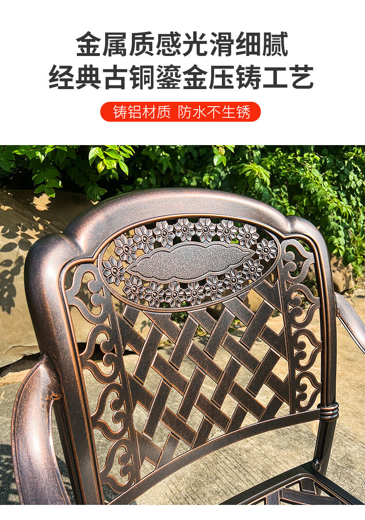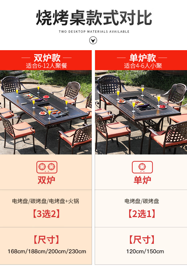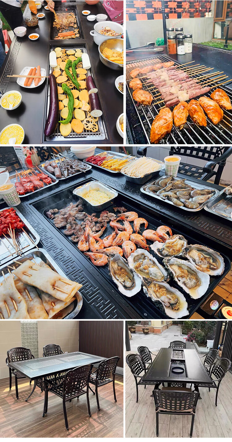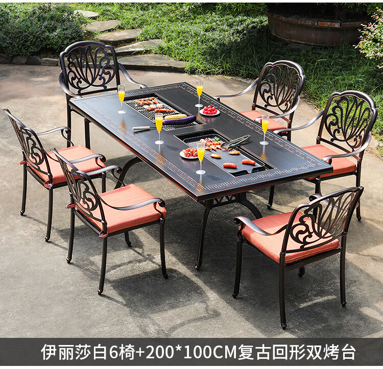 gosoo 户外桌椅庭院别墅围炉煮茶烧烤餐桌椅电烤炭烤火锅铸铝椅正格椅