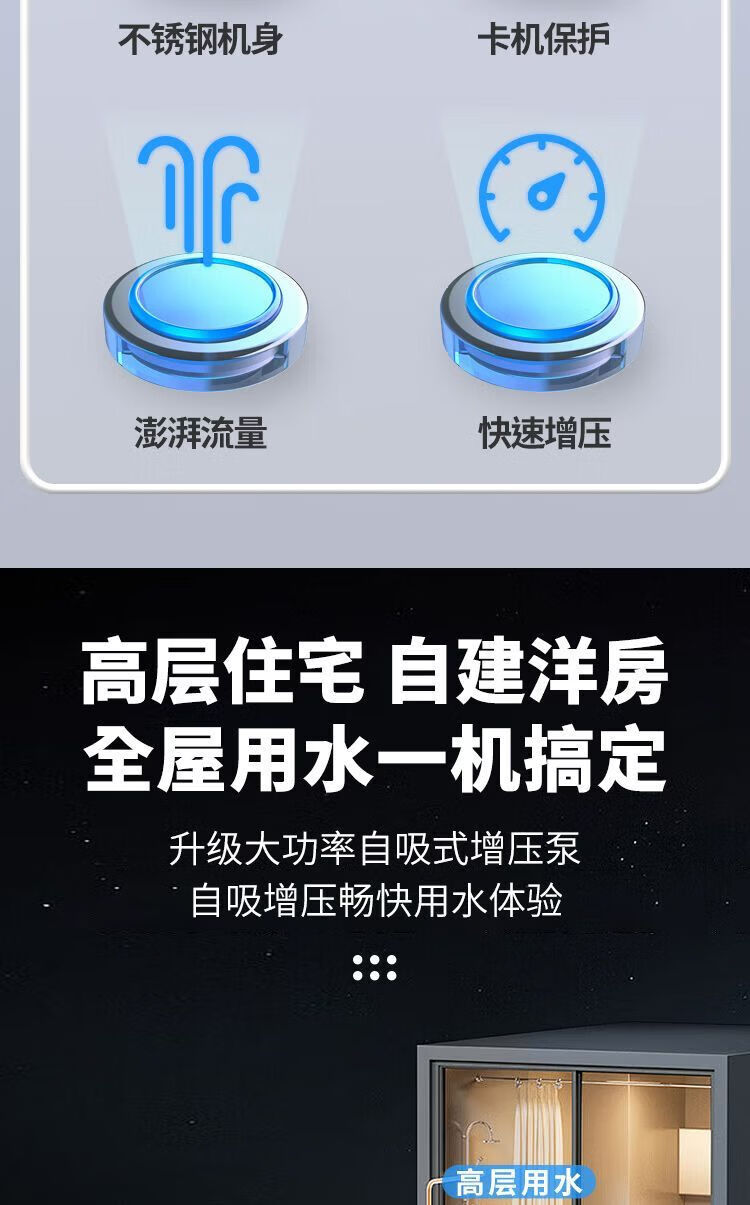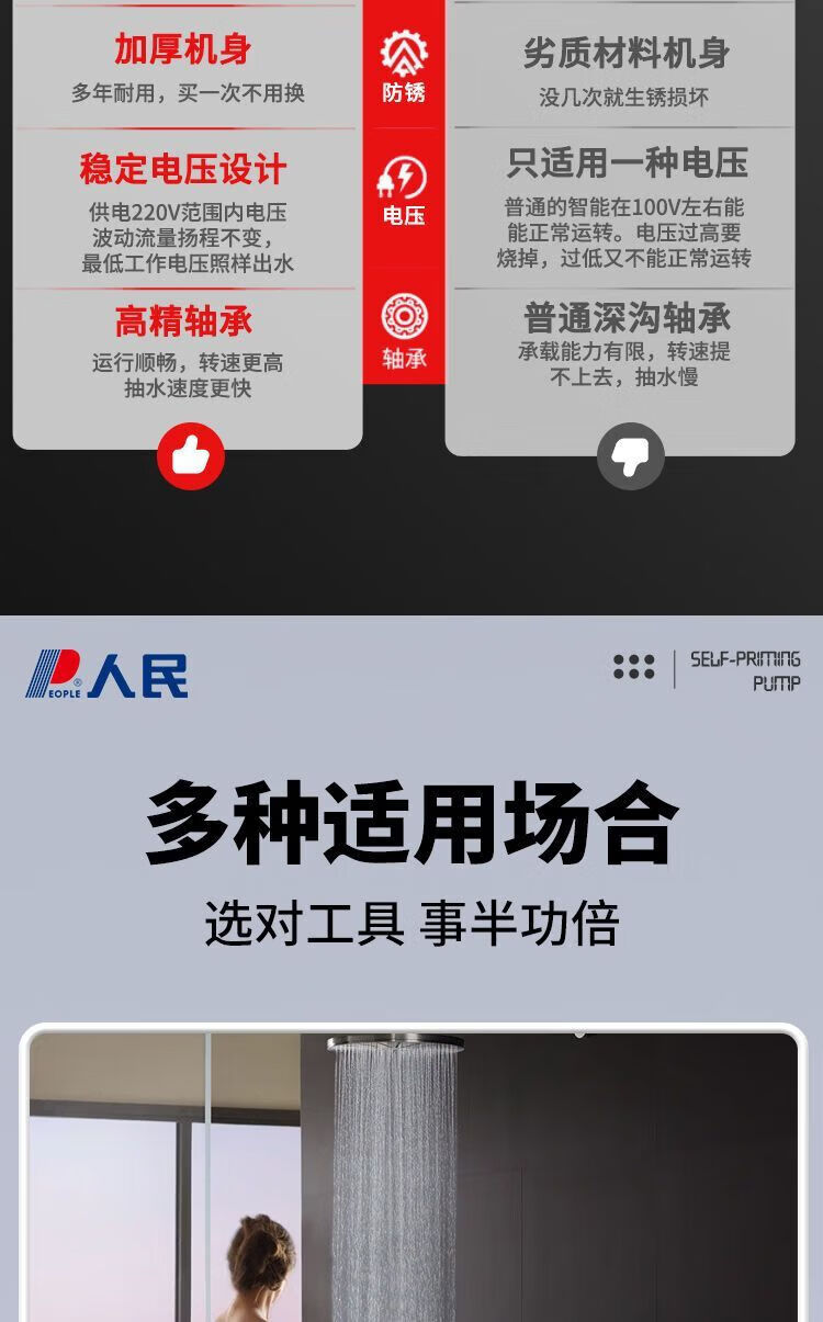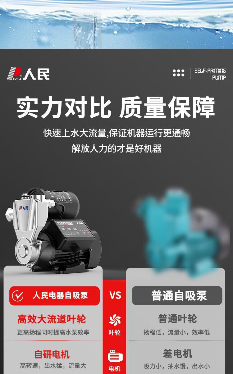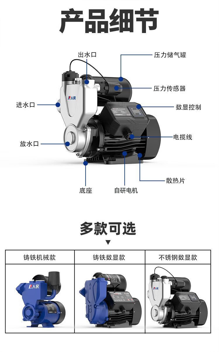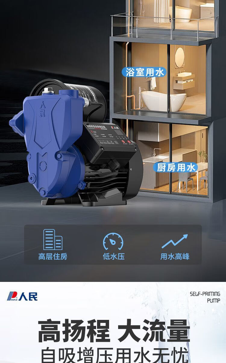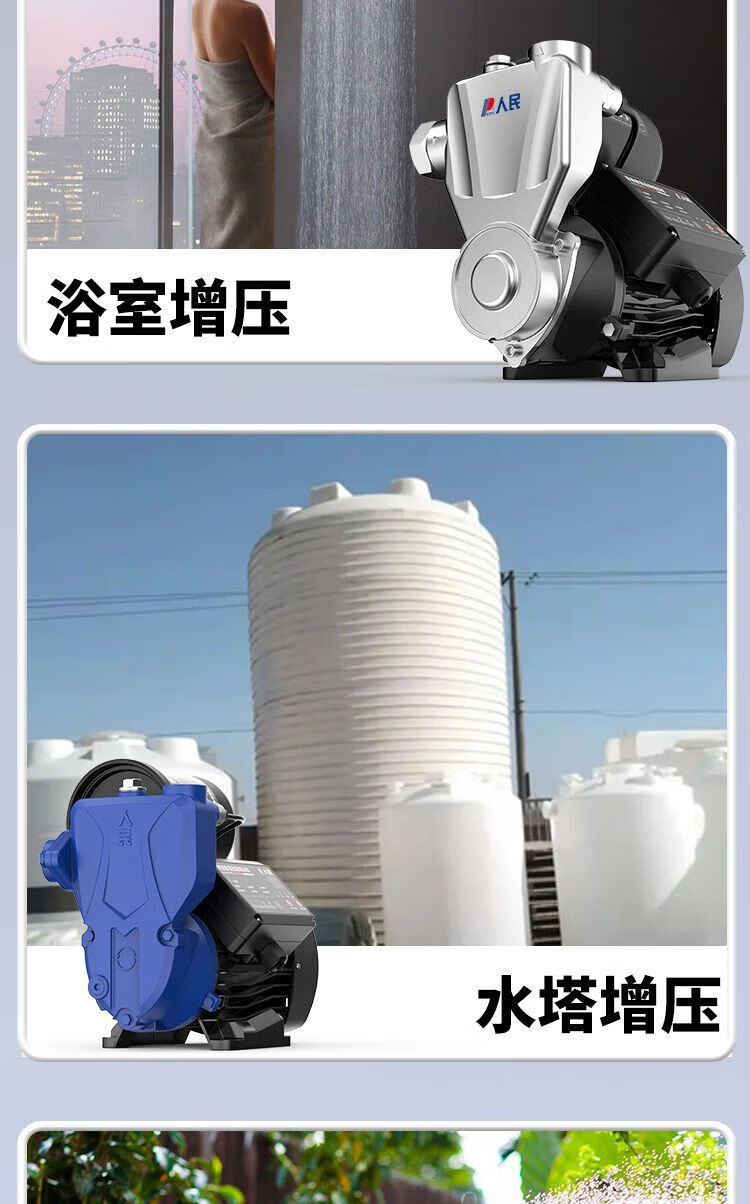 人民全自动增压泵太阳能自来水管道加压泵家用智能抽水自吸增压泵 【强劲动力】370W机械能自动款