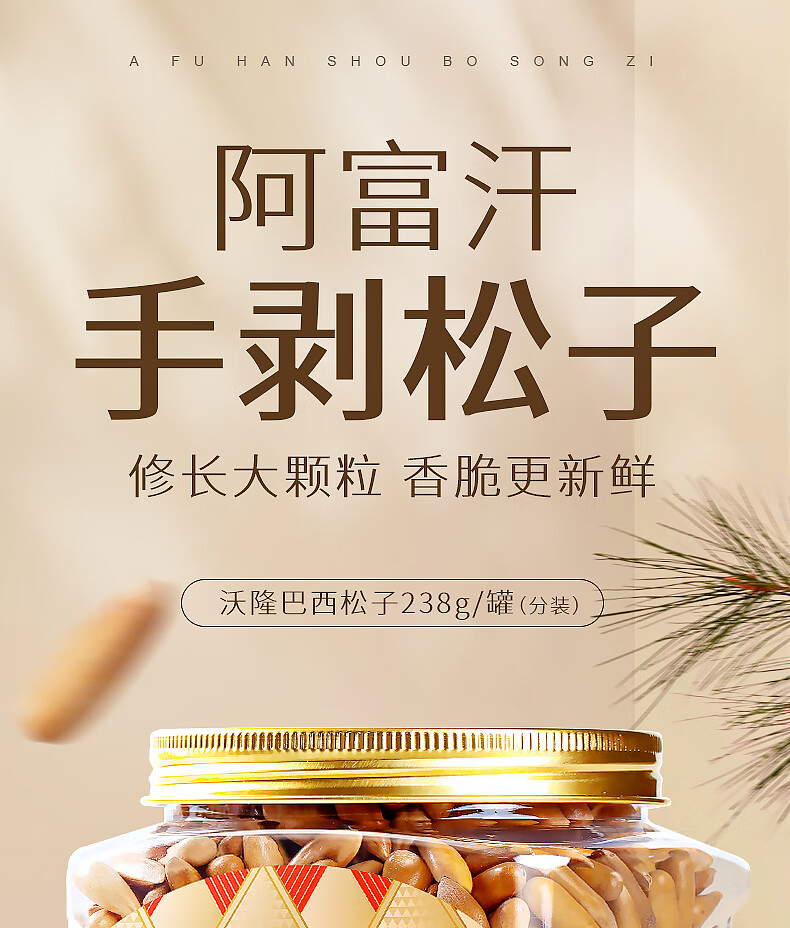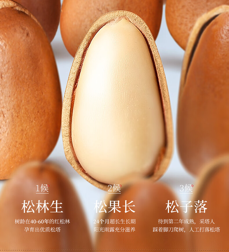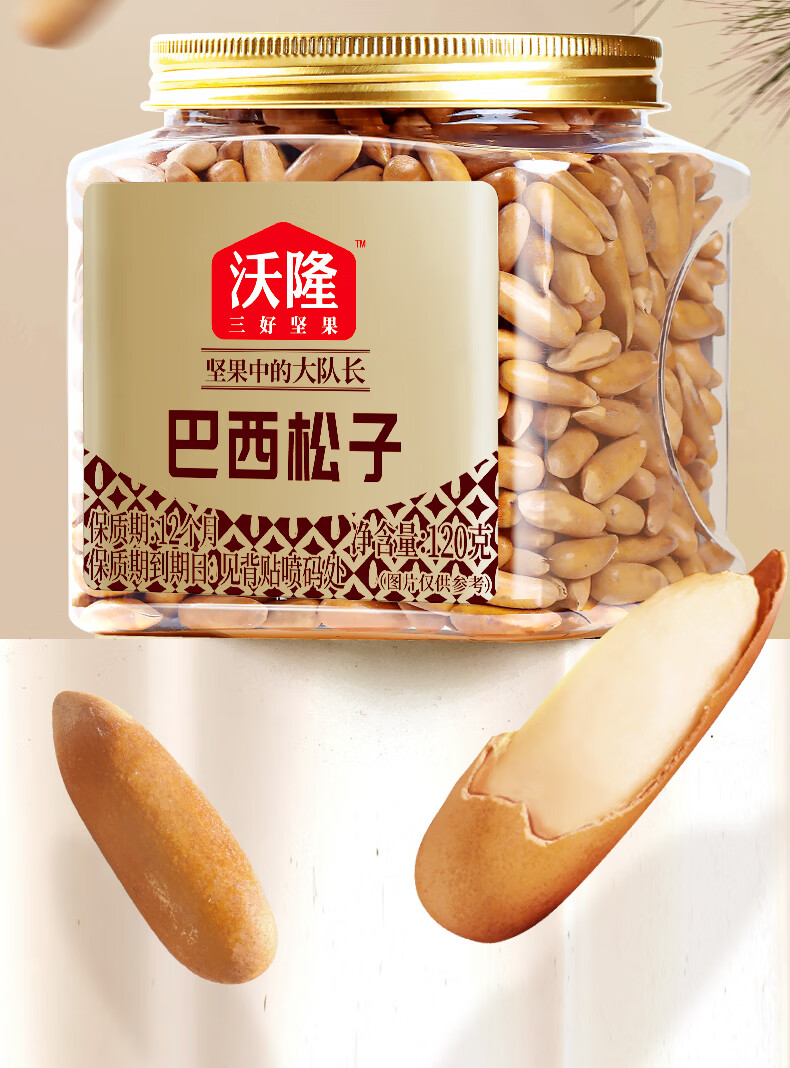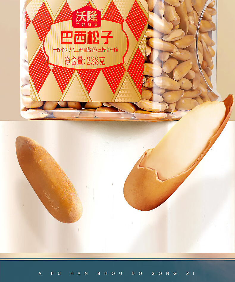 沃隆手剥巴西松子A+级特大果东北松子坚果炒货每日坚果团购送礼零食 【0添加剂】158g*3袋东北松子