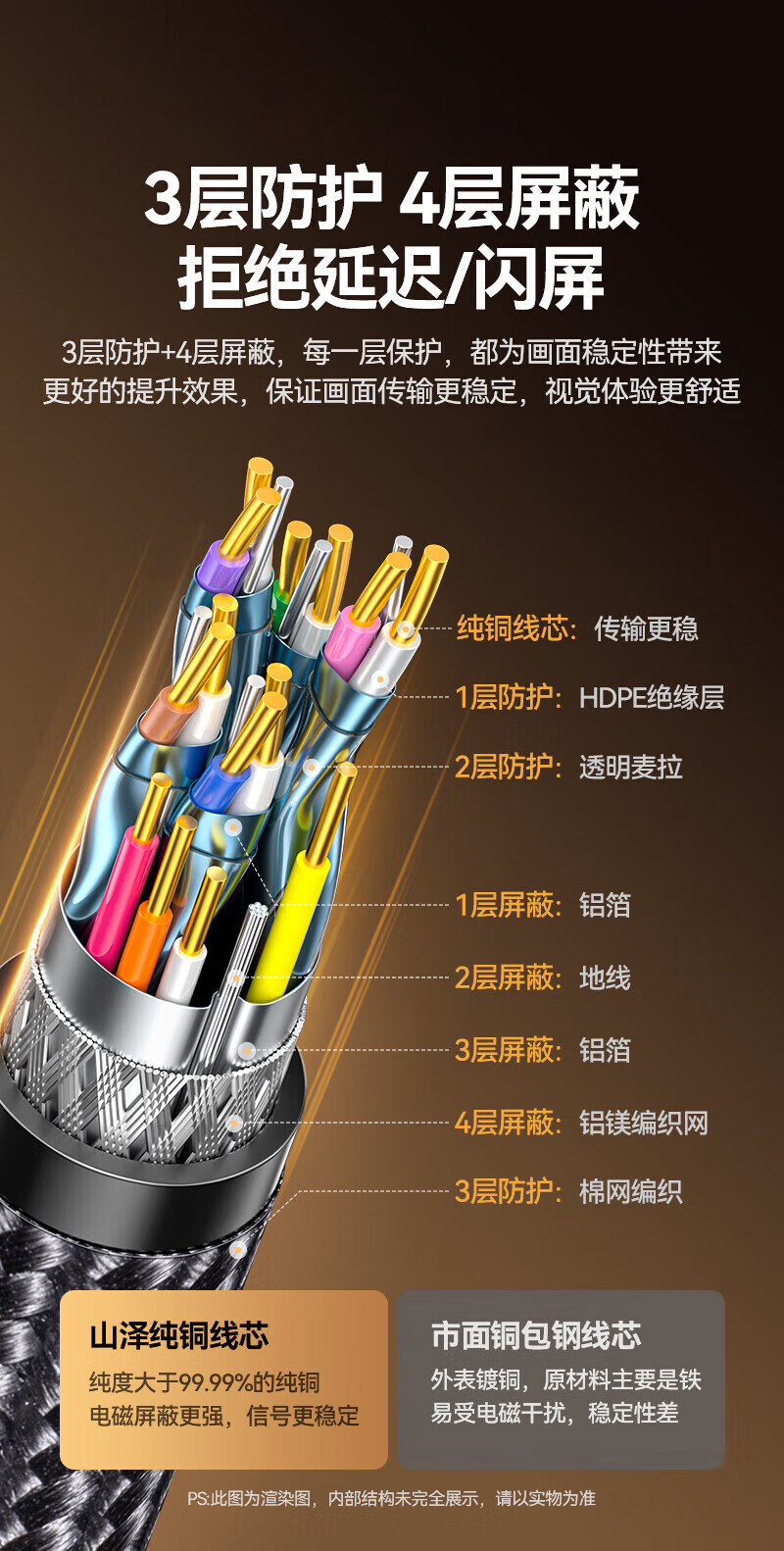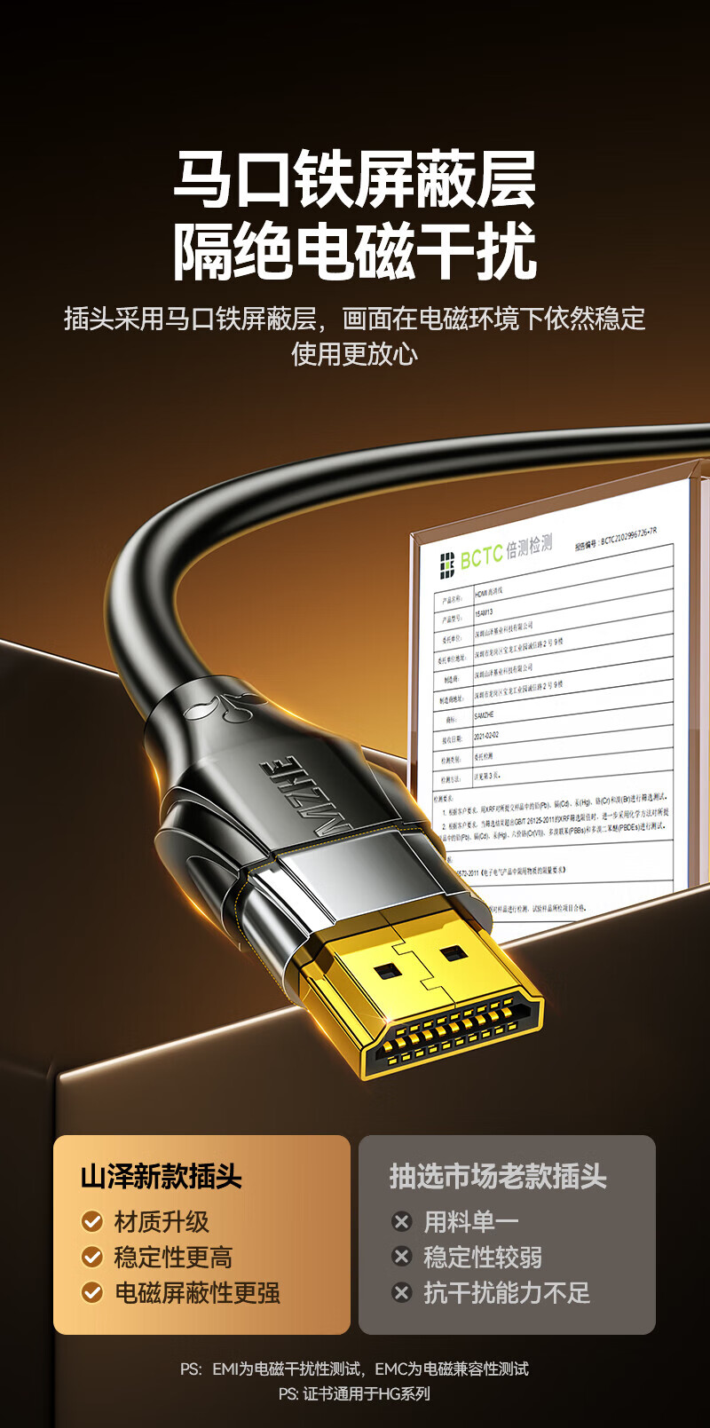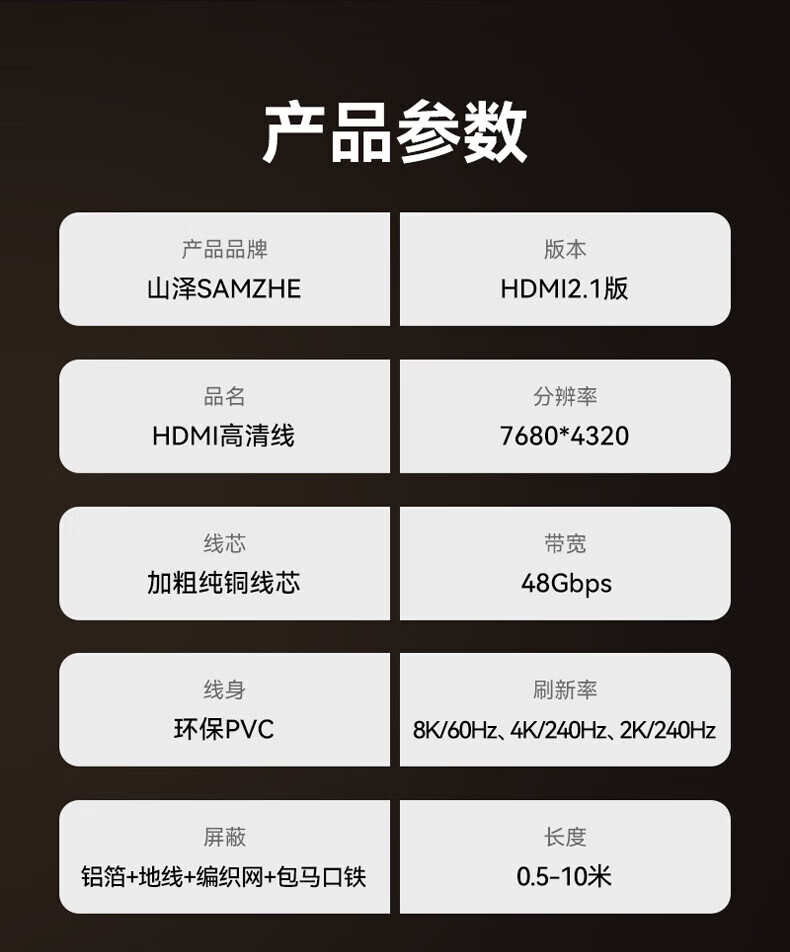 山泽HDMI线2.1版 兼容HDMI2.0 光纤线 数字高清线家装 笔记本电脑机顶盒连接投影仪显示器数据连接线 4K经典款【家装/工程】SH8 0.5米