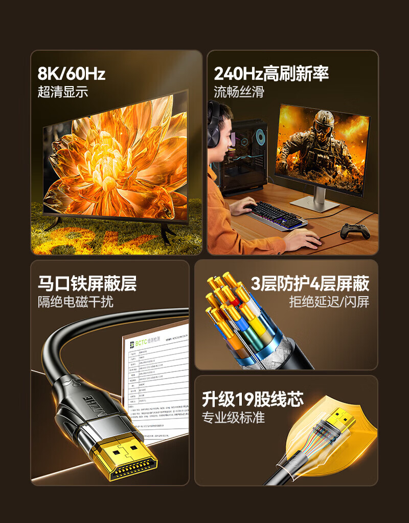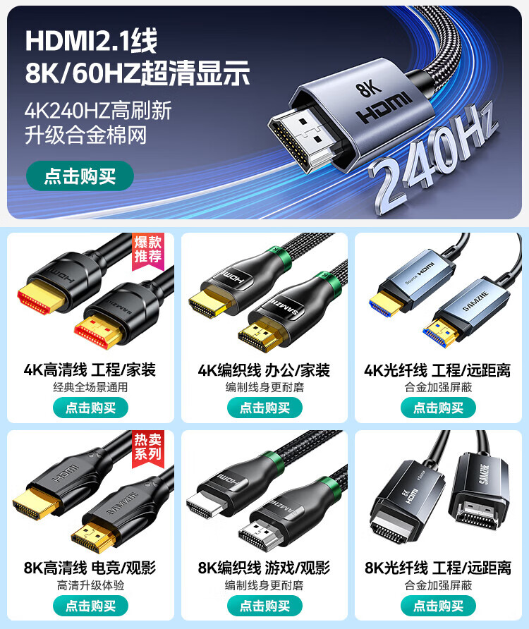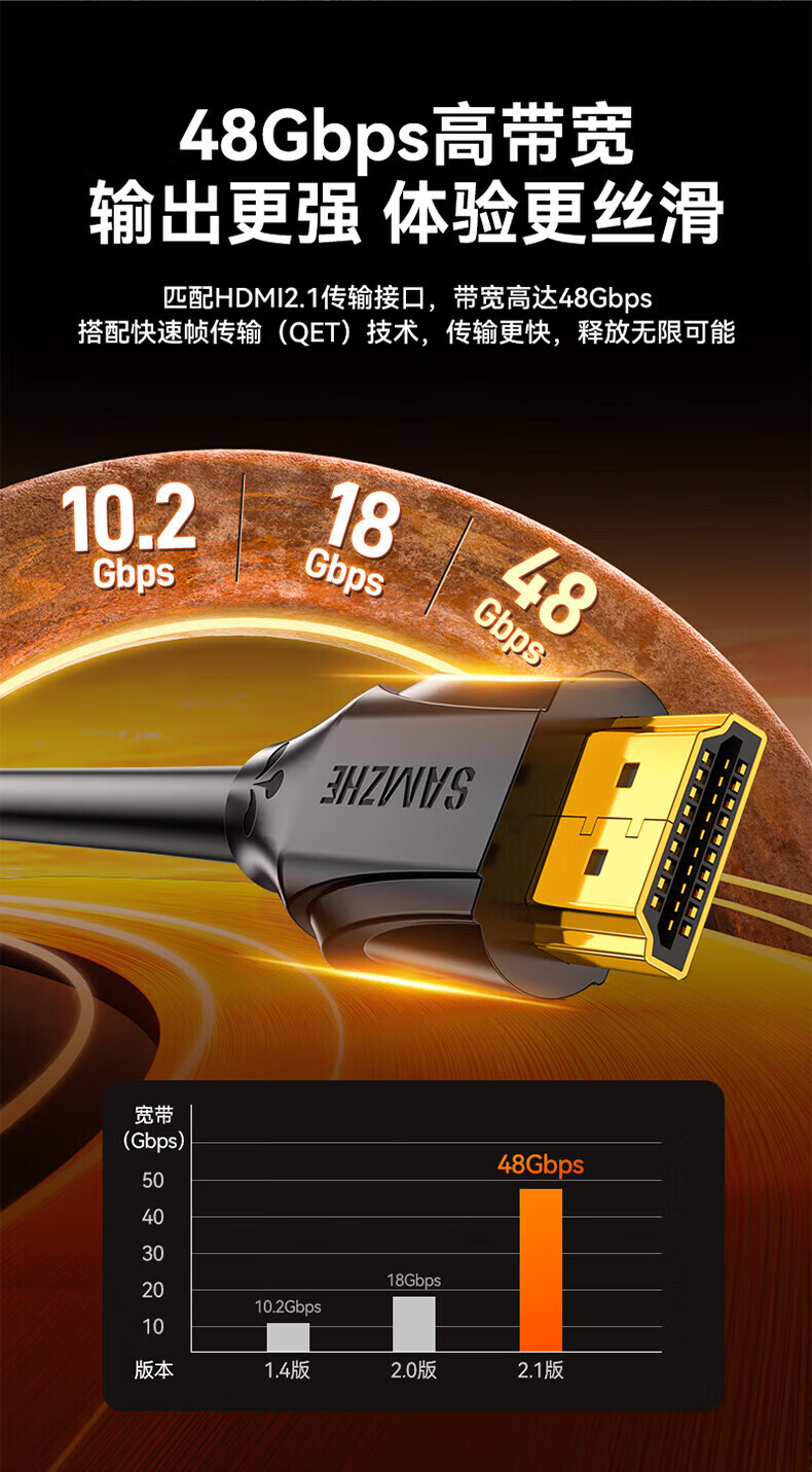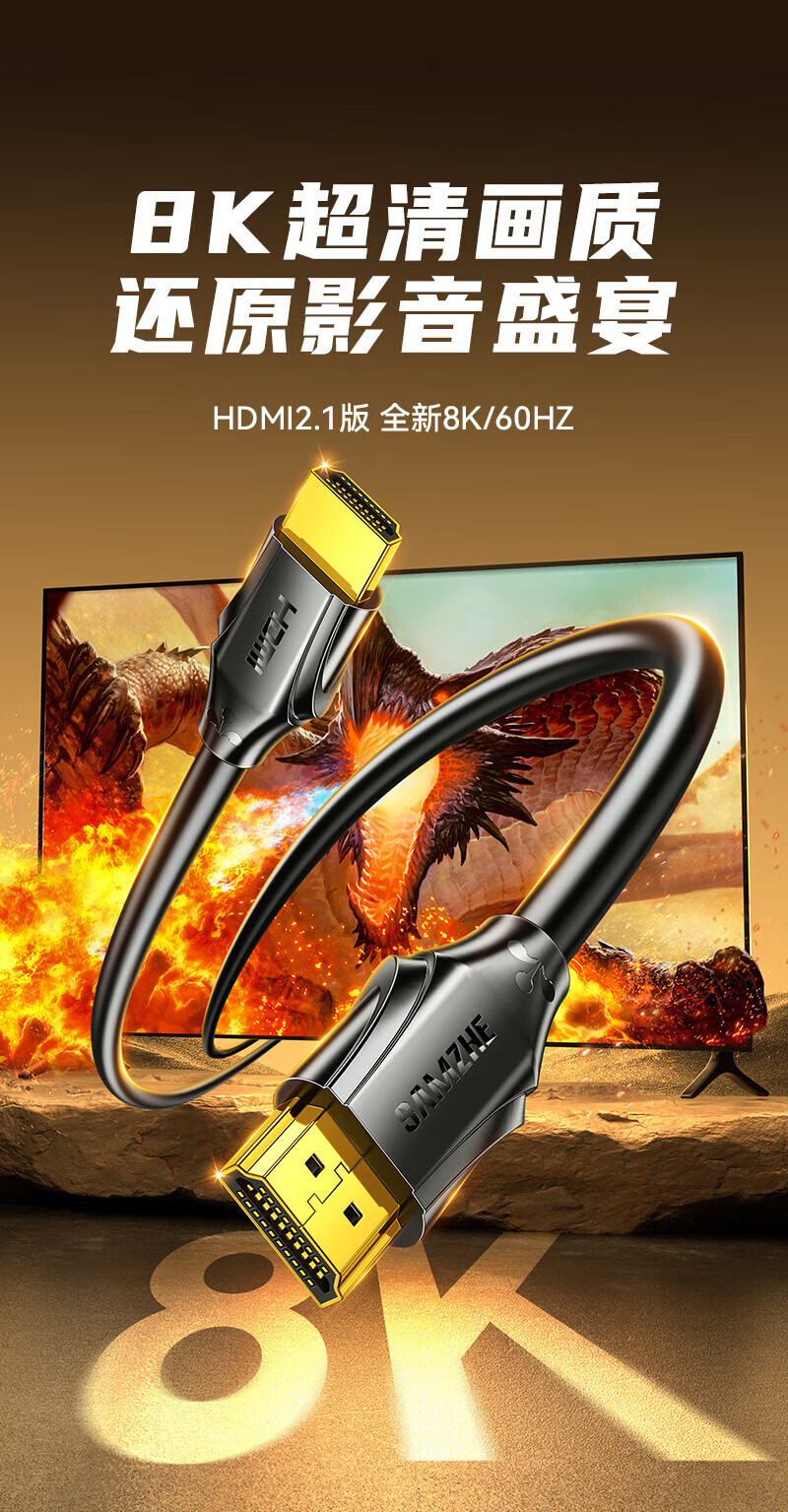 山泽光纤HDMI线2.1版8K60Hz 4K240Hz笔记本电脑机顶盒显示器电视投影仪高清视频连接线兼容HDMI2.0 8K编织线【升级耐拉扯】HW 2米