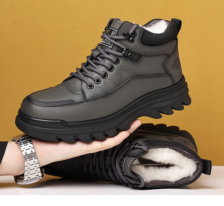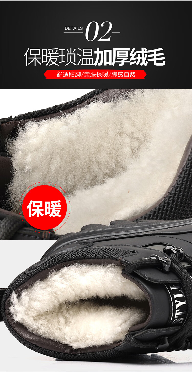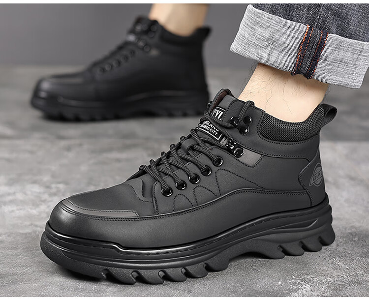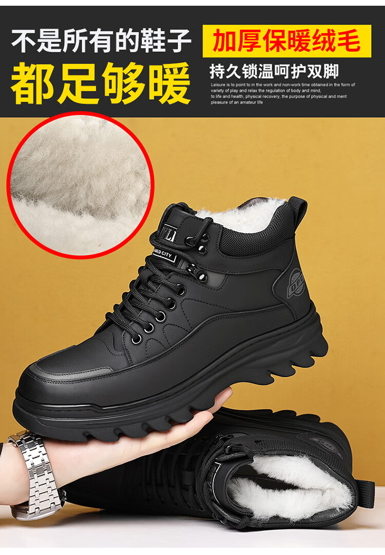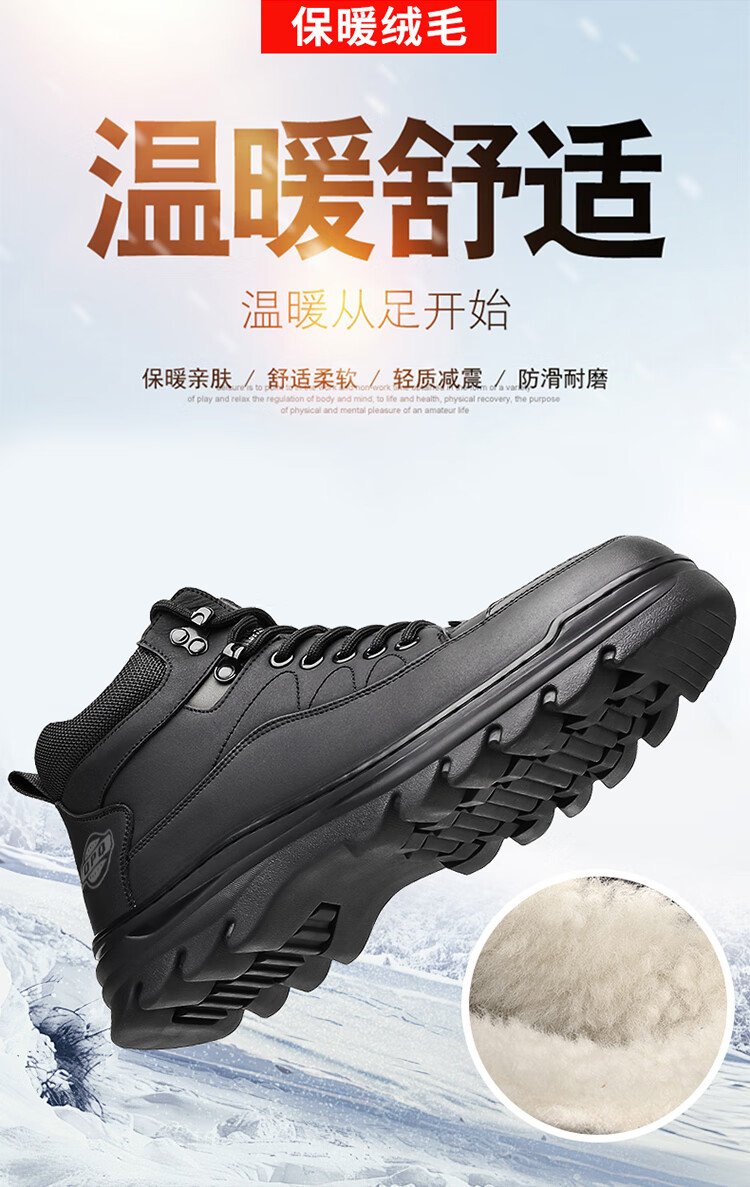 稻草人(MEXICAN)男士马丁靴2026新款羊毛加绒保暖工装棉皮鞋中帮全牛皮抗寒雪地靴 黑色 LT6723 40