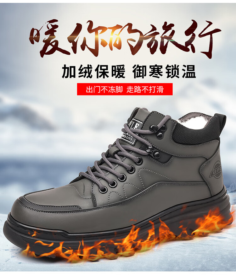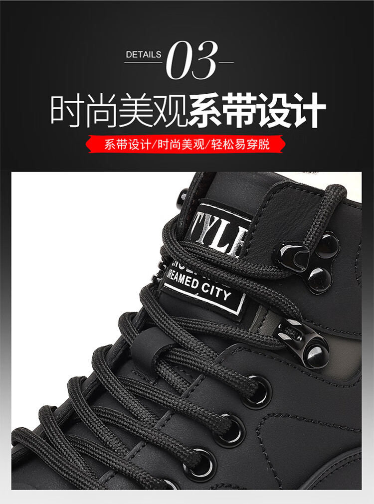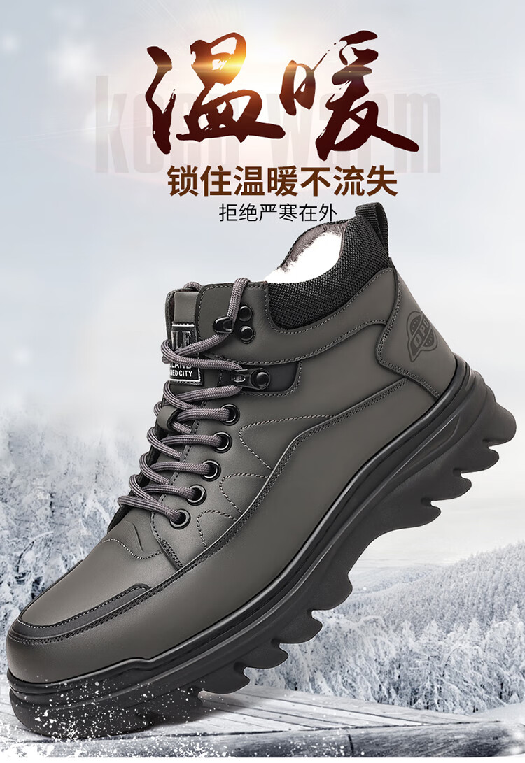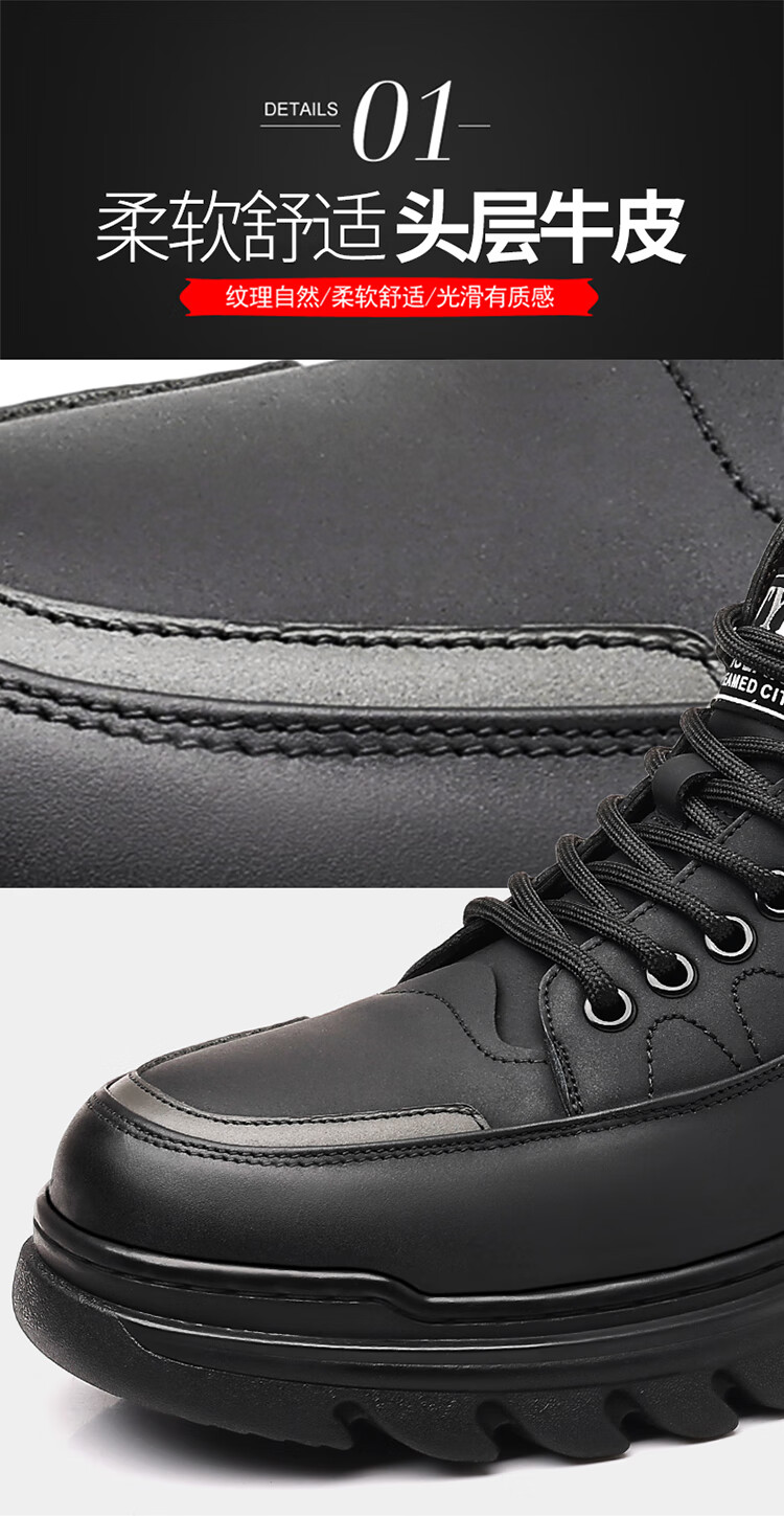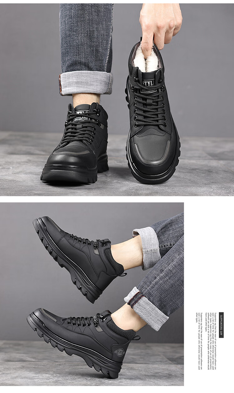 稻草人(MEXICAN)男士马丁靴2026新款羊毛加绒保暖工装棉皮鞋中帮全牛皮抗寒雪地靴 黑色 LT6723 40