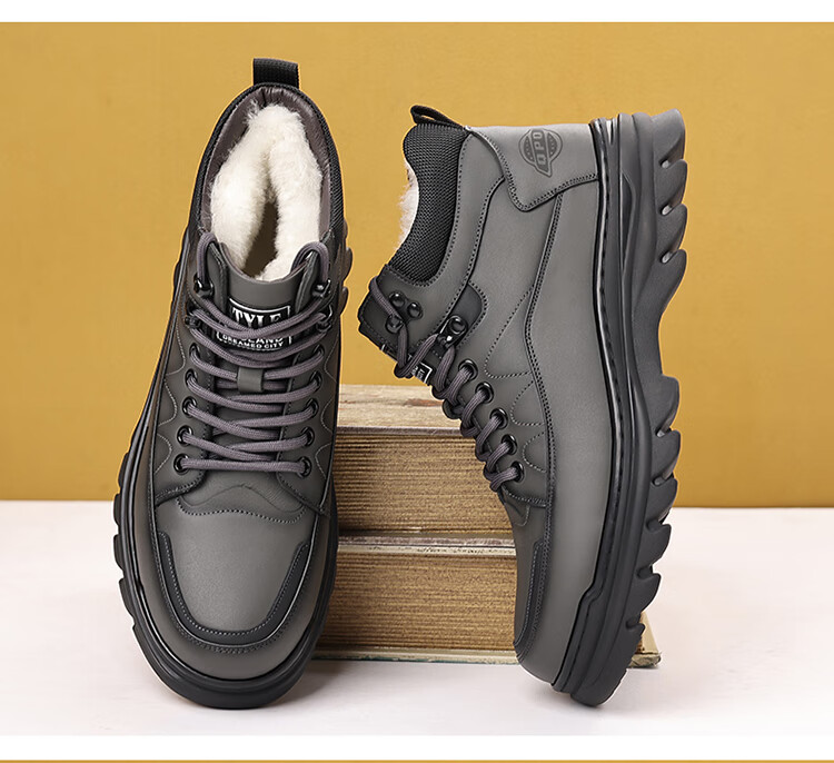 潮流轻奢男鞋2025秋冬季新款保暖运动鞋男软底休闲减震跑步鞋子男 NK336白兰色【皮面款】 42