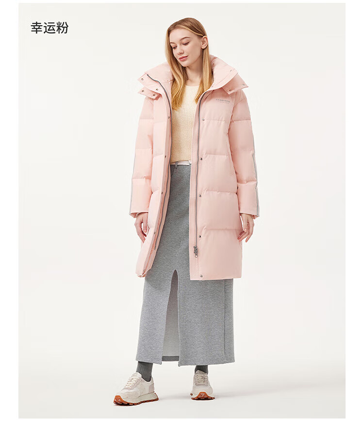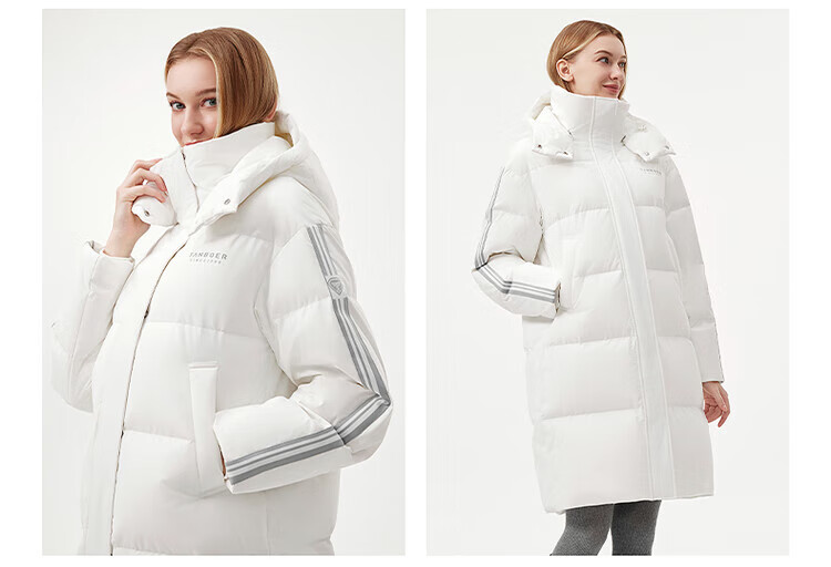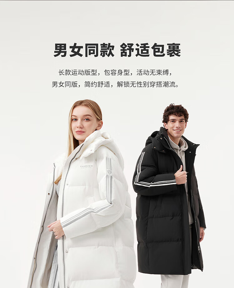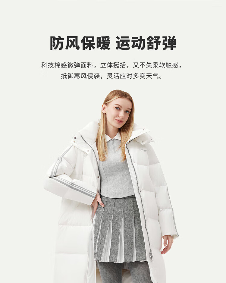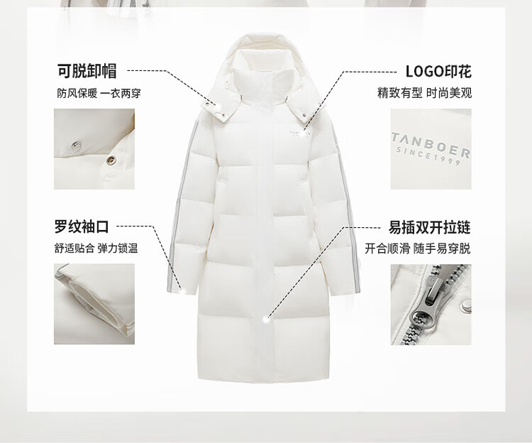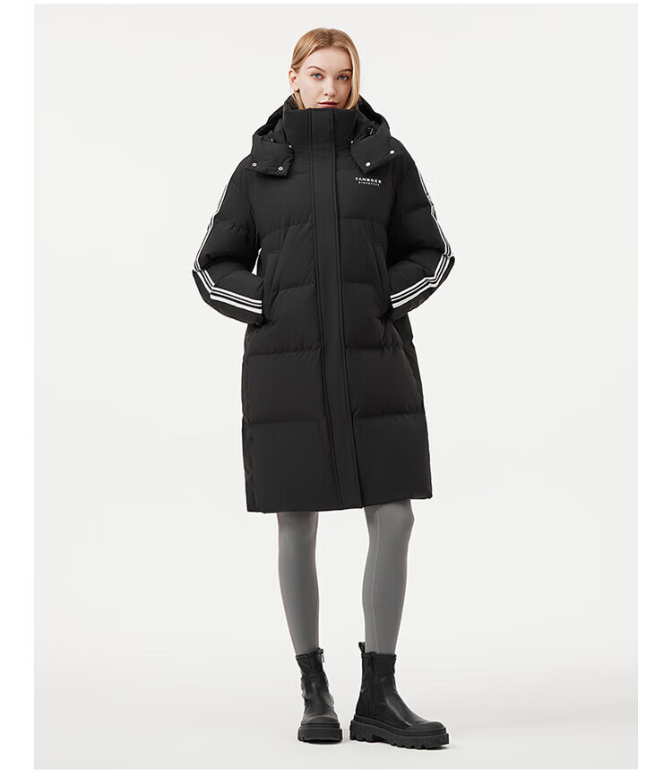 坦博尔羽绒服女中长款学院风可脱卸帽潮流运动外套TEF550808D 黑色 M (165)