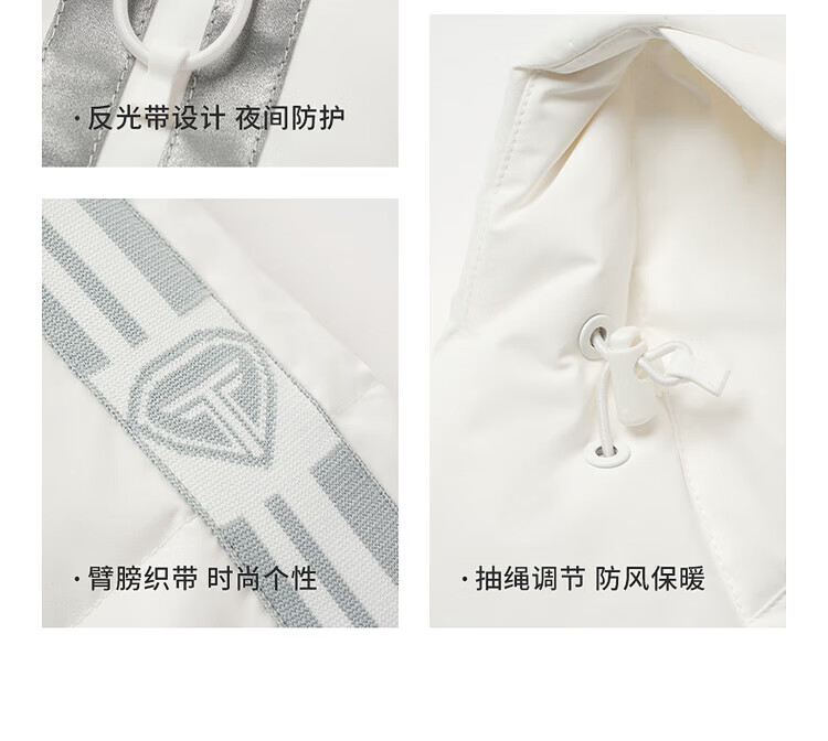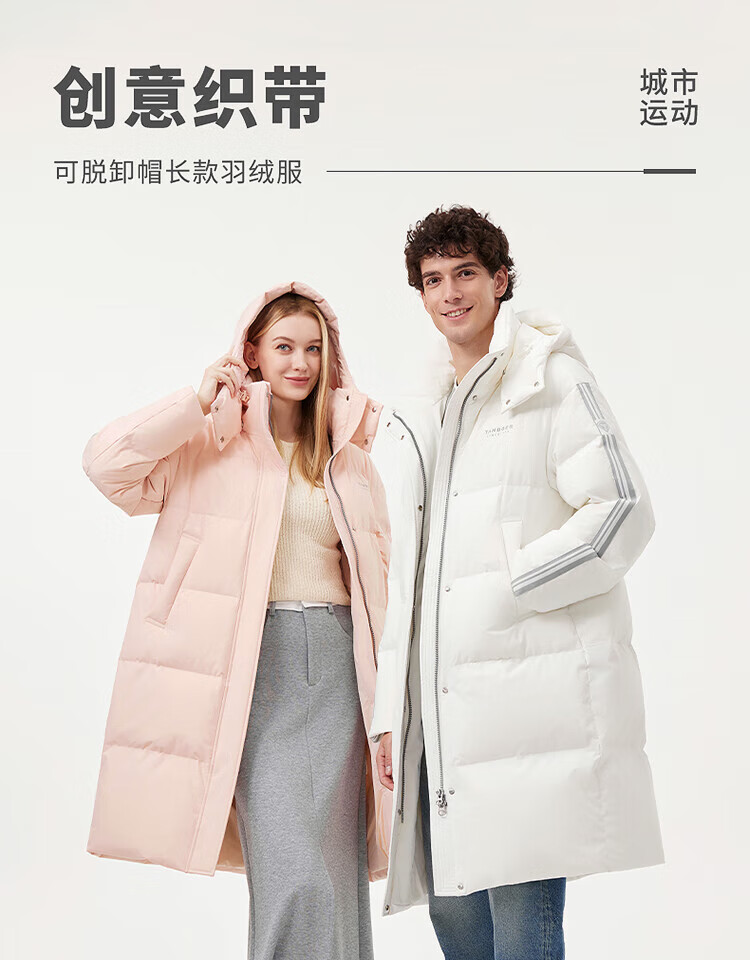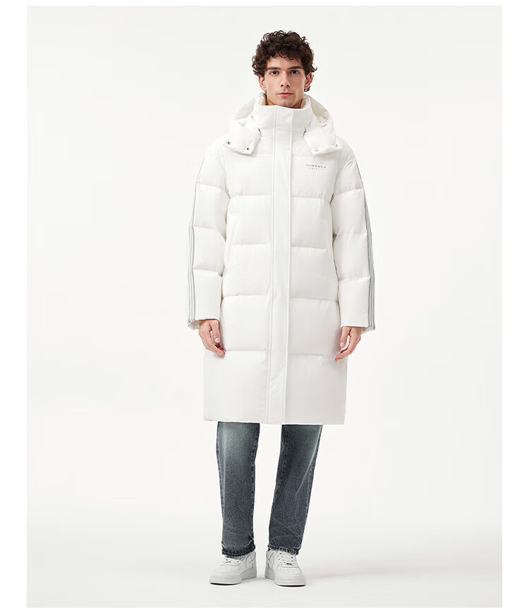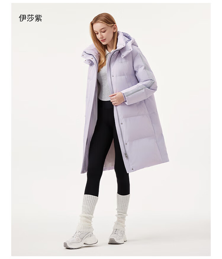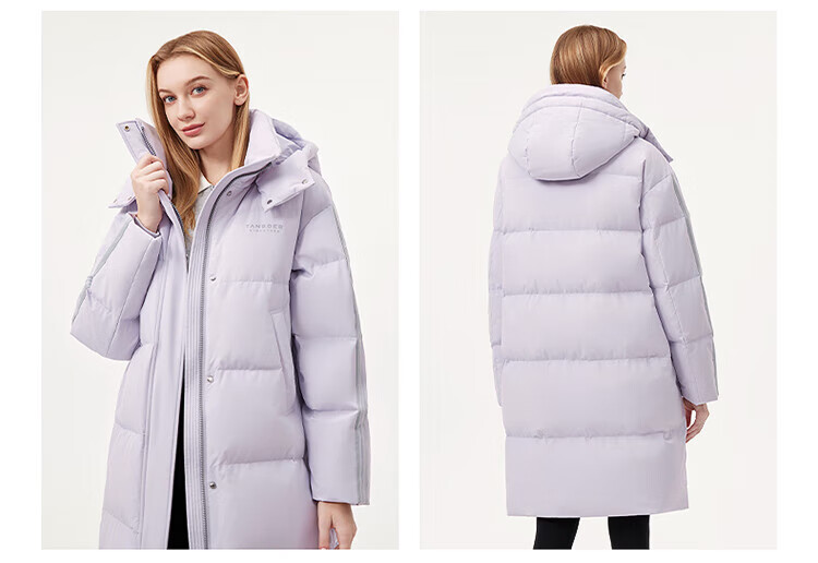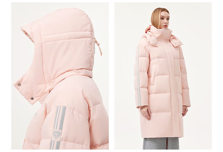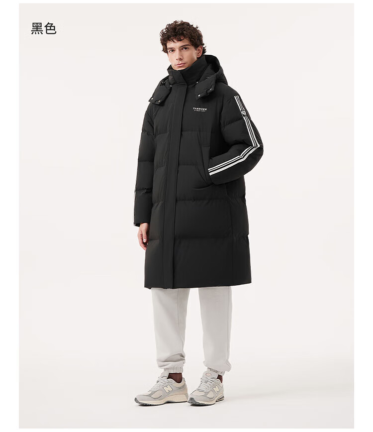 坦博尔羽绒服女中长款学院风可脱卸帽潮流运动外套TEF550808D 黑色 M (165)