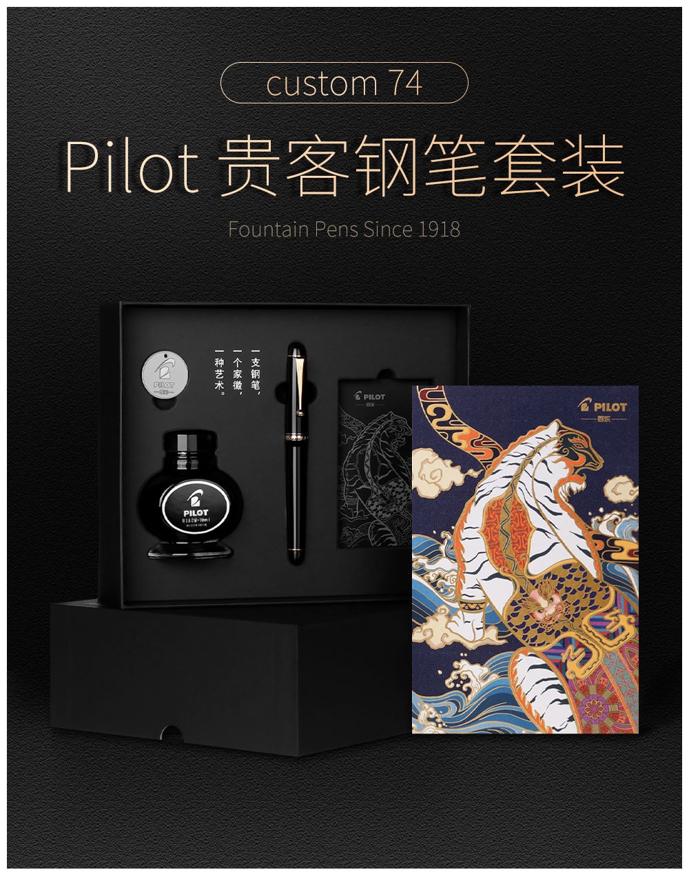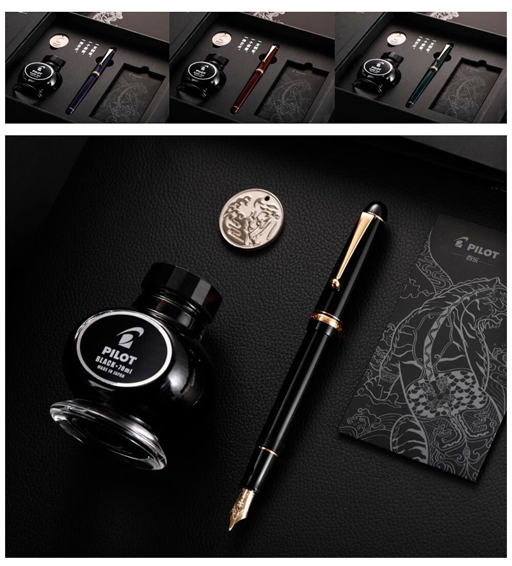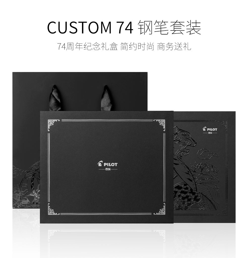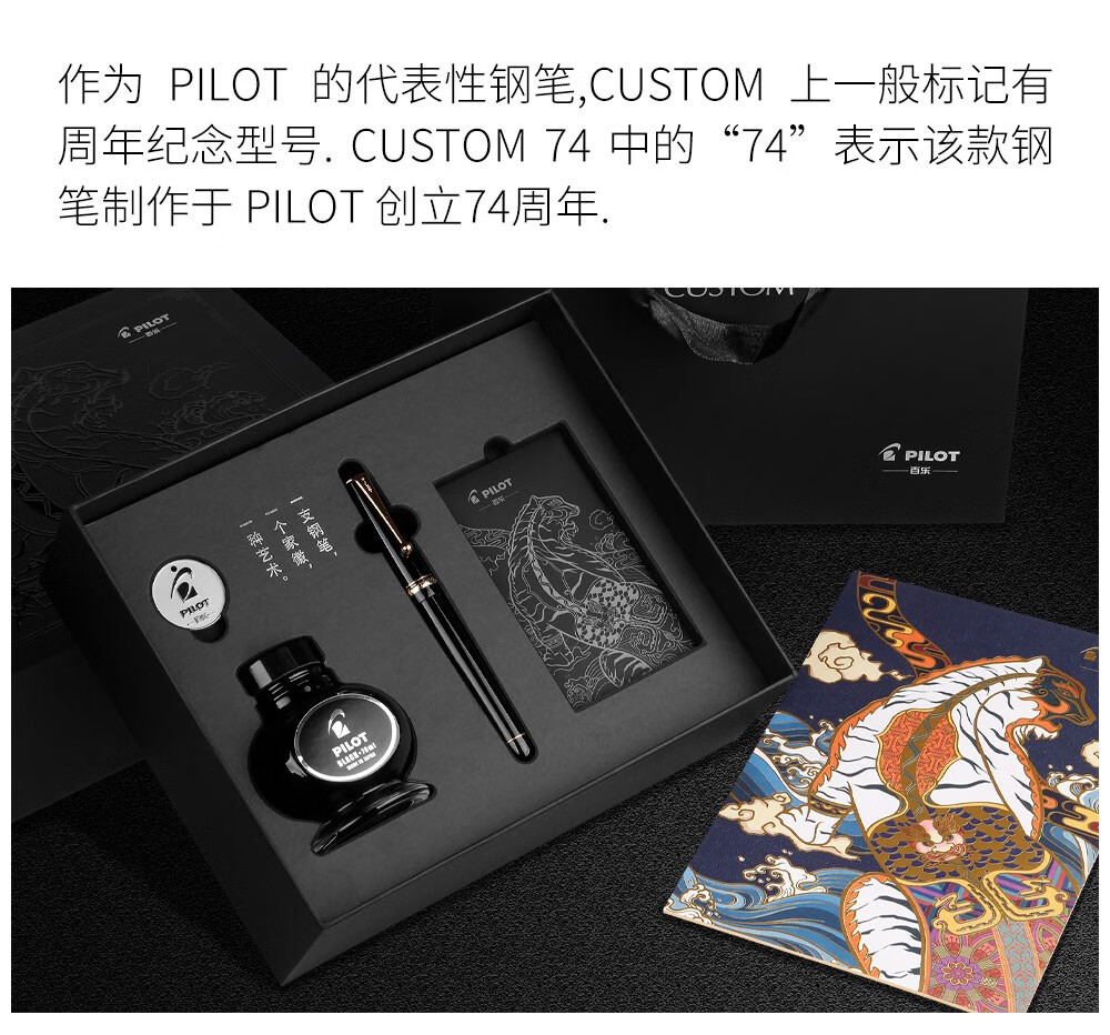 PILOT百乐【新年礼物】贵客CUSTOM74钢笔14K金尖成人练字商务办公送礼墨水礼盒套装 【黑色】 F尖/约0.5mm