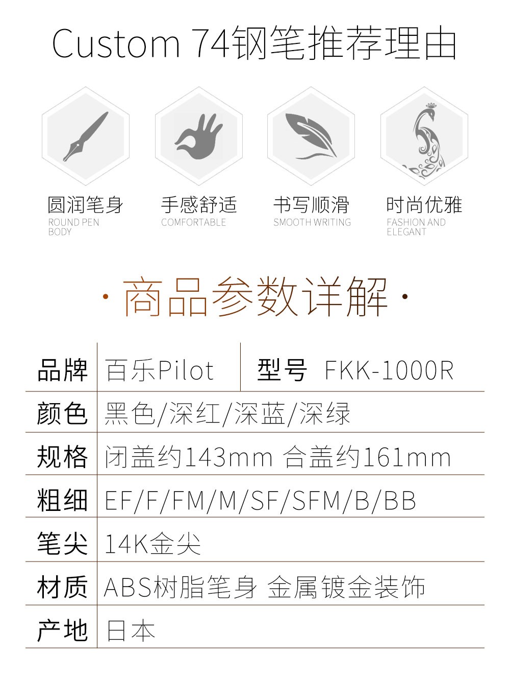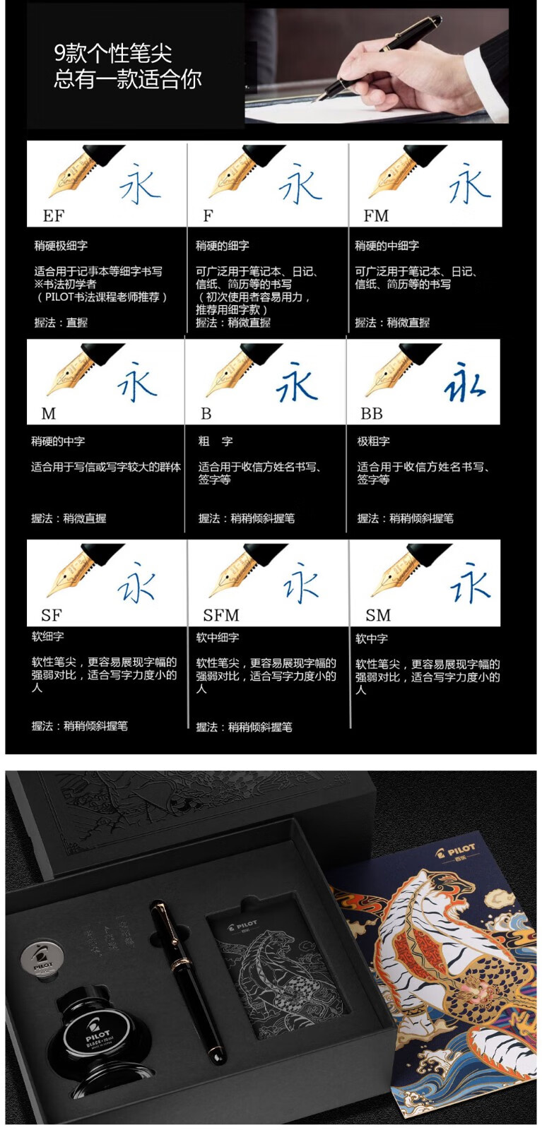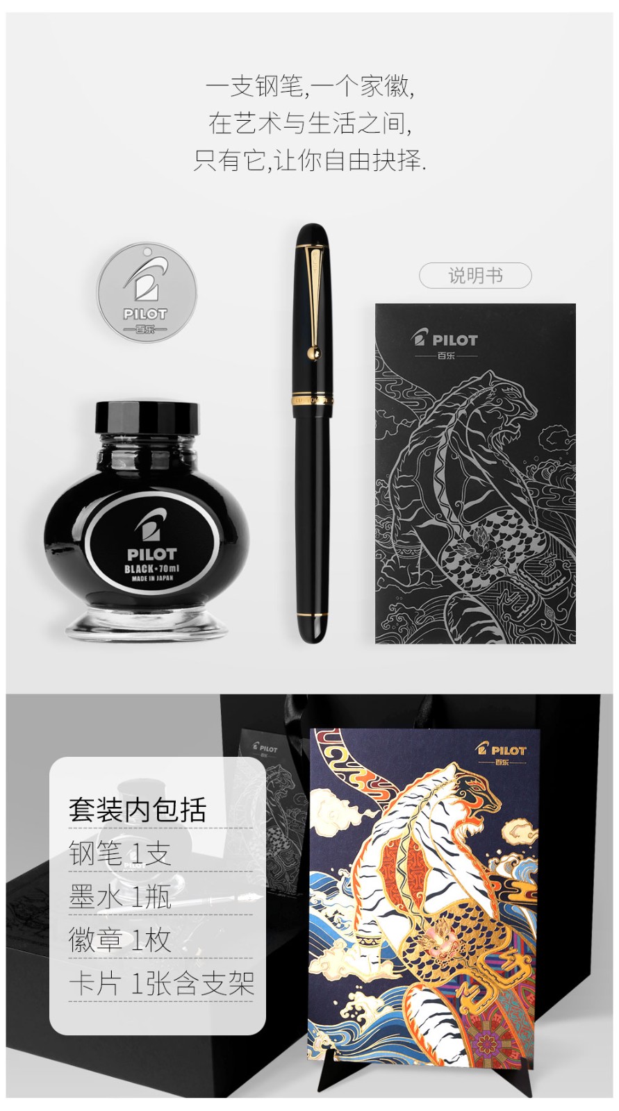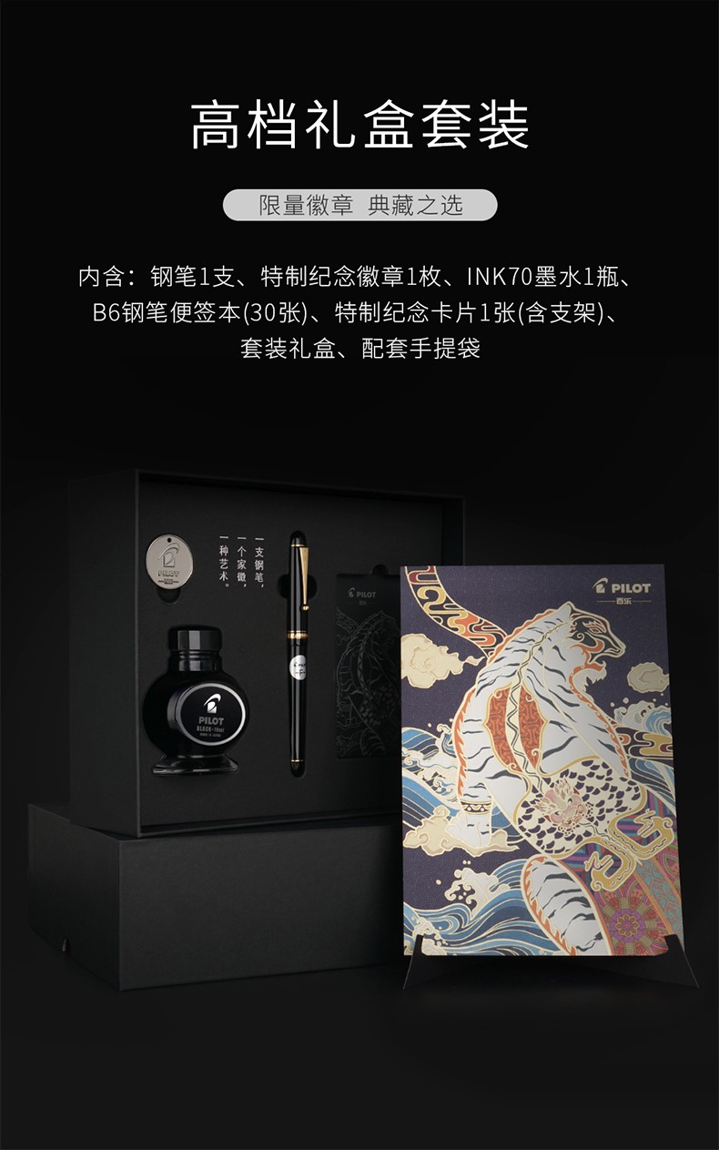 PILOT百乐【新年礼物】贵客CUSTOM74钢笔14K金尖成人练字商务办公送礼墨水礼盒套装 【黑色】 F尖/约0.5mm