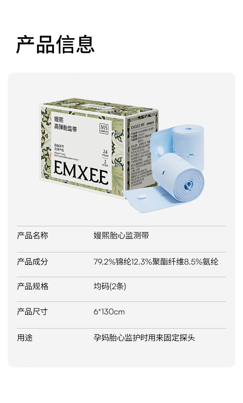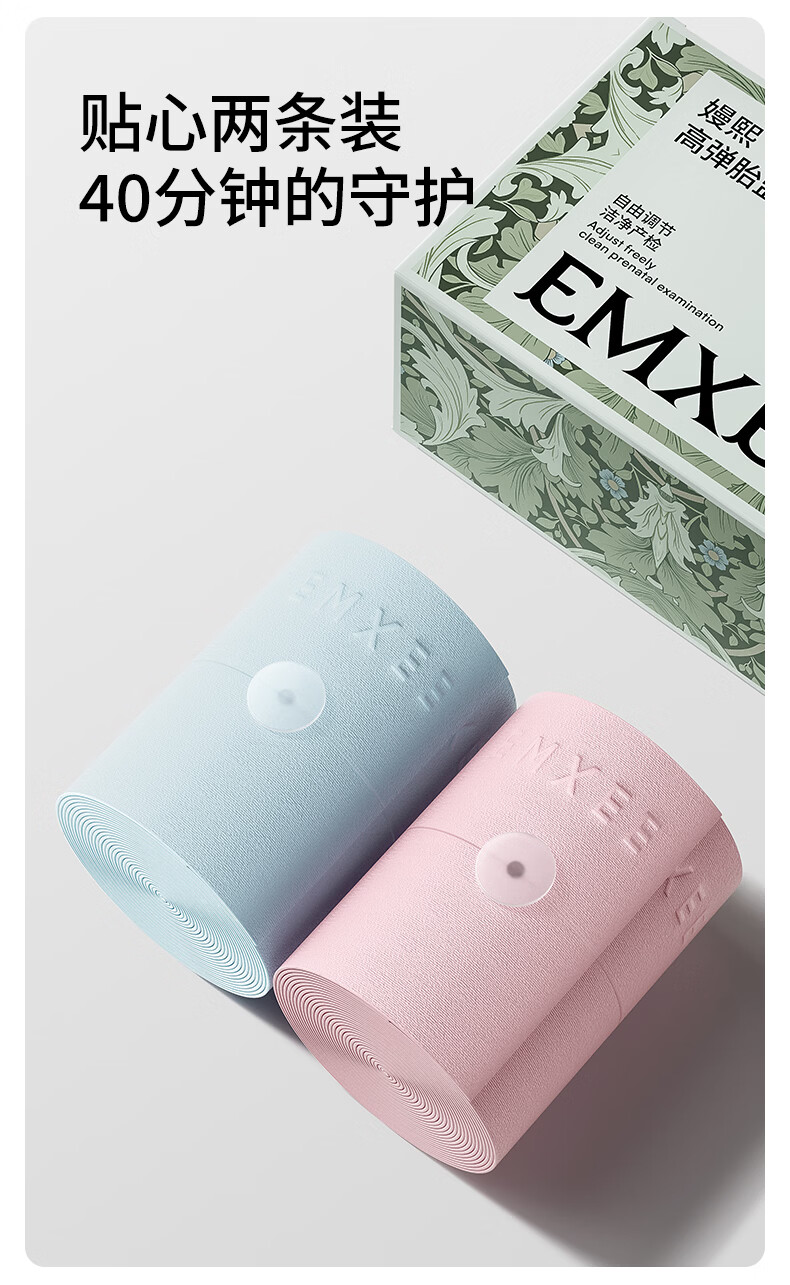 嫚熙(EMXEE)胎监带胎心监护带孕妇监测带产检监护绑带弹力加长2条装 粉色 1条+蓝色 1条