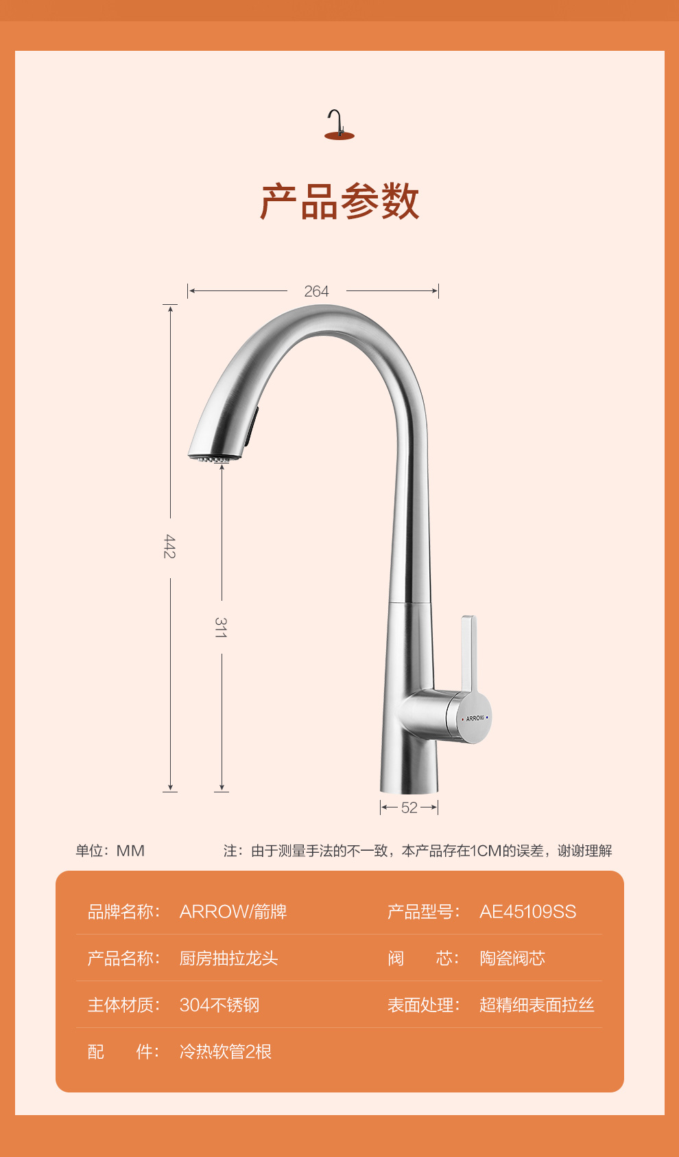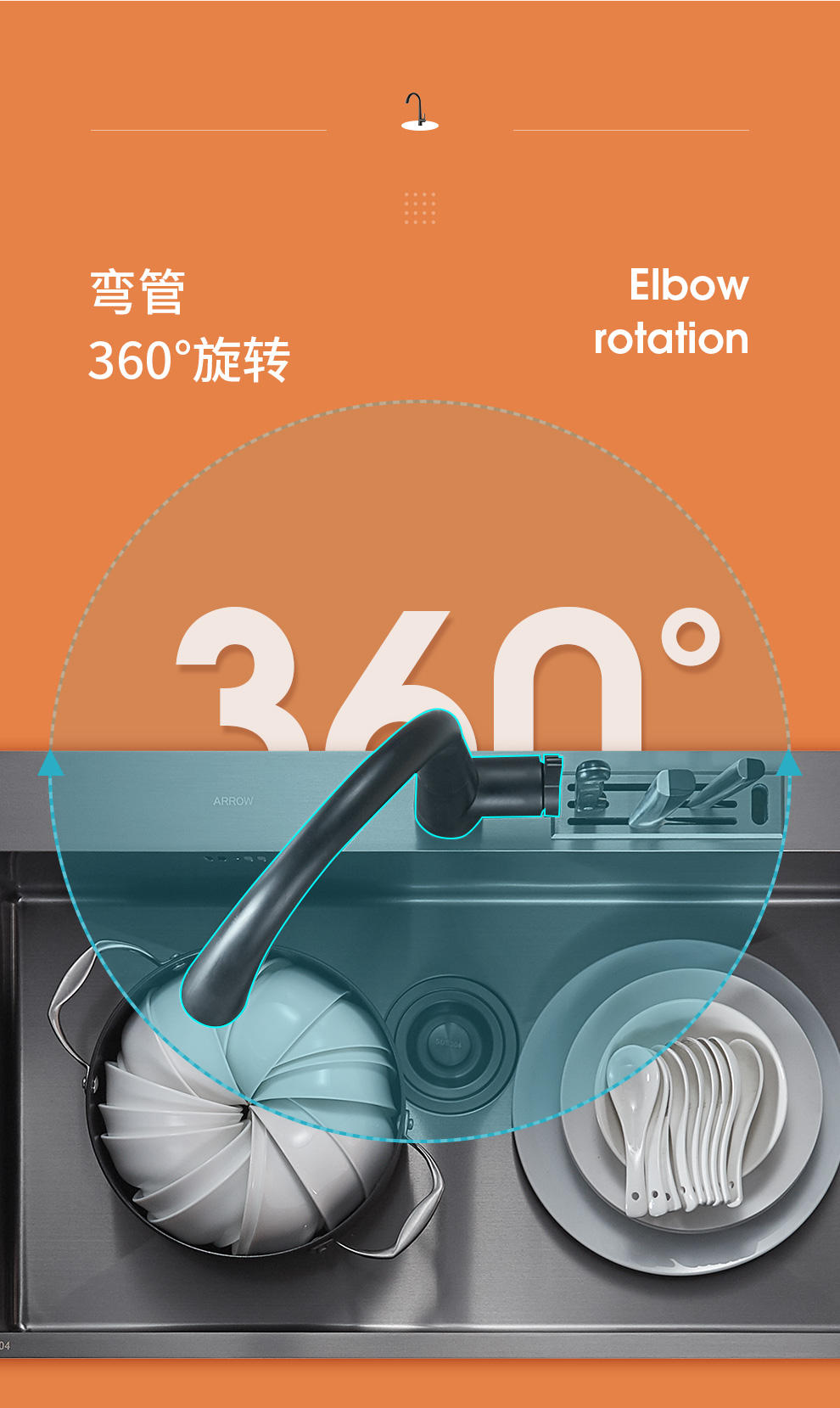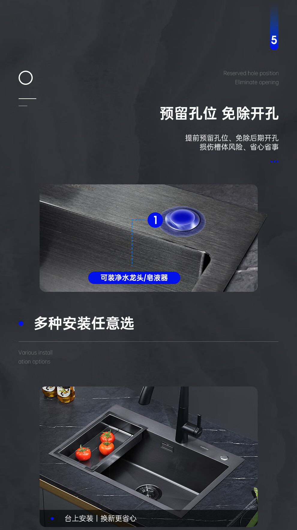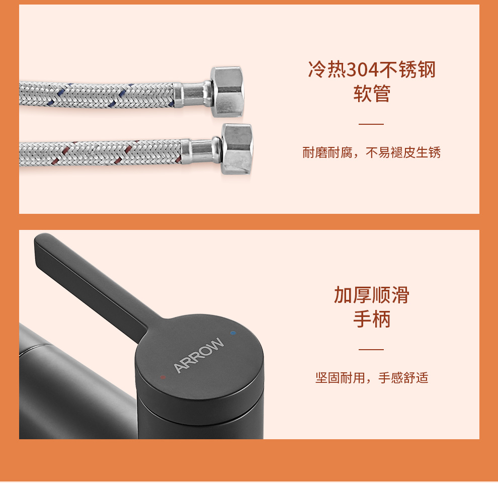 箭牌(ARROW) 304加厚不锈钢手工单槽纳米黑色洗菜厨房洗手盆洗菜池水盆洗碗池 手工单槽75*45cm(抽拉龙头角阀)