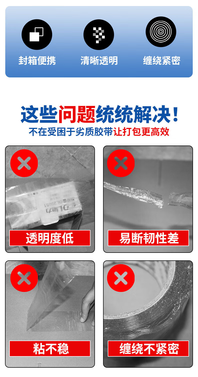透明胶带 打包封箱胶带 抗拉扯粘性强清晰透明 工厂打包物流封箱适用 【热销推荐】42mm*30米单卷装