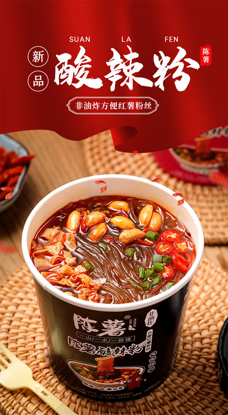 陈薯贵州特产陈薯酸辣粉126.5g每桶冲泡速食红薯粉夜宵螺蛳粉整箱装 【12桶装】黑金版酸辣粉