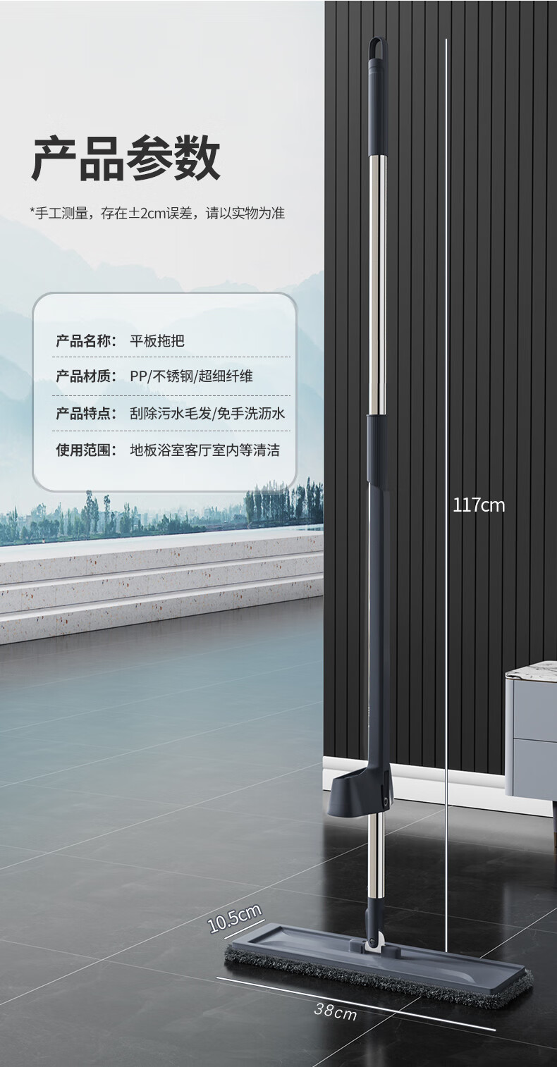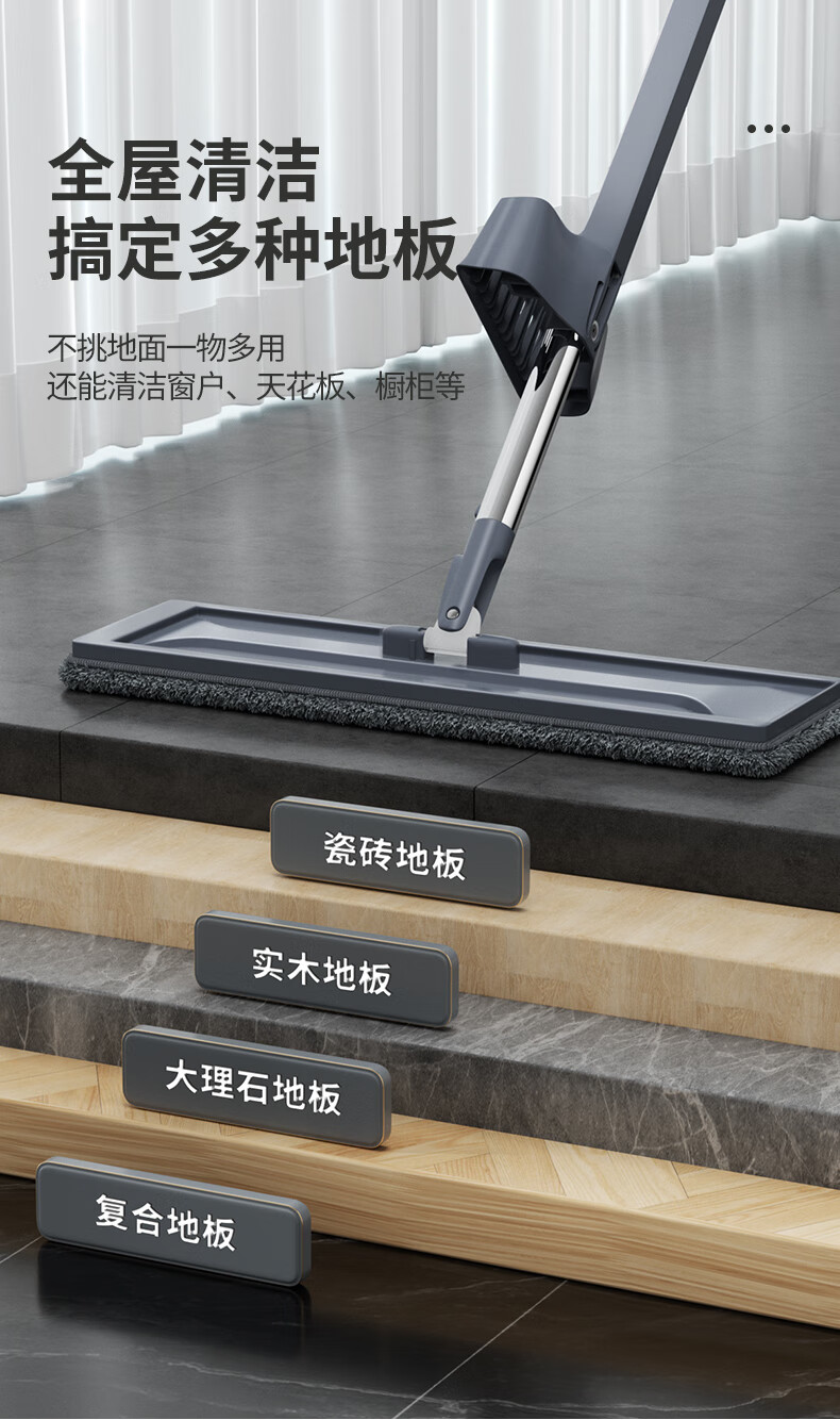 百家好世平板拖把38cm2布家用懒人墩布拖干湿两用自动回弹 源头直发 包邮