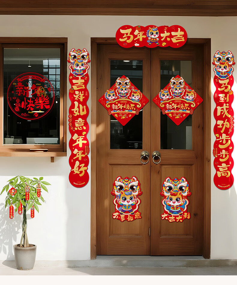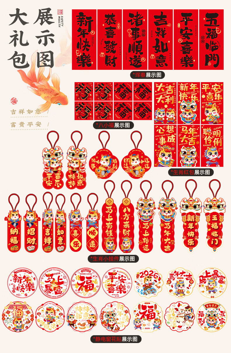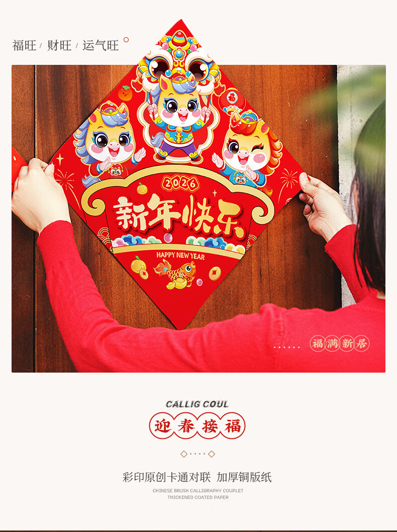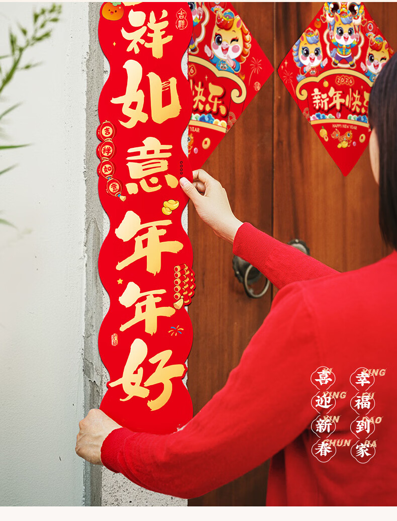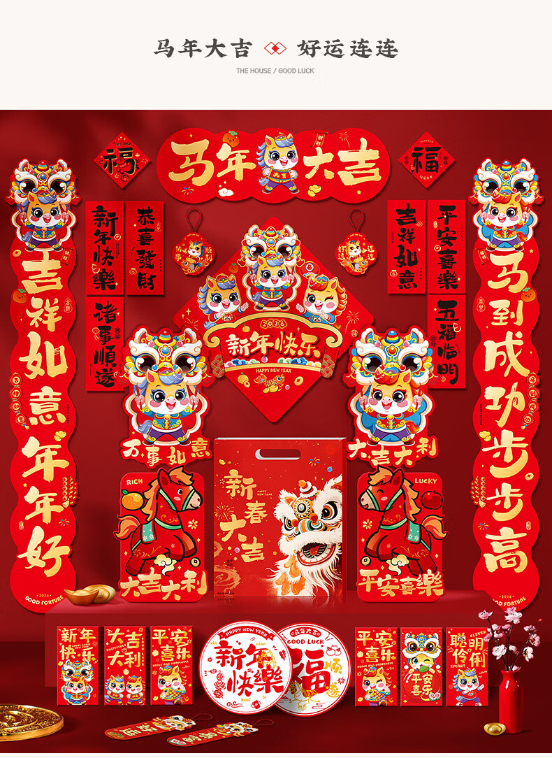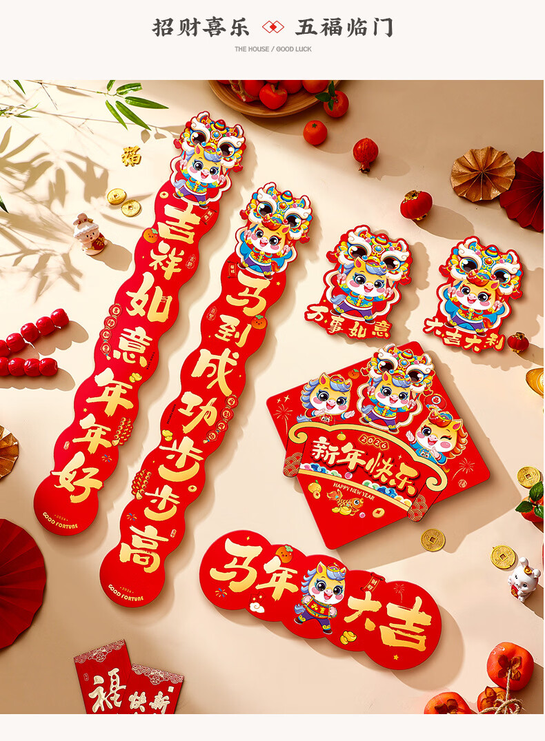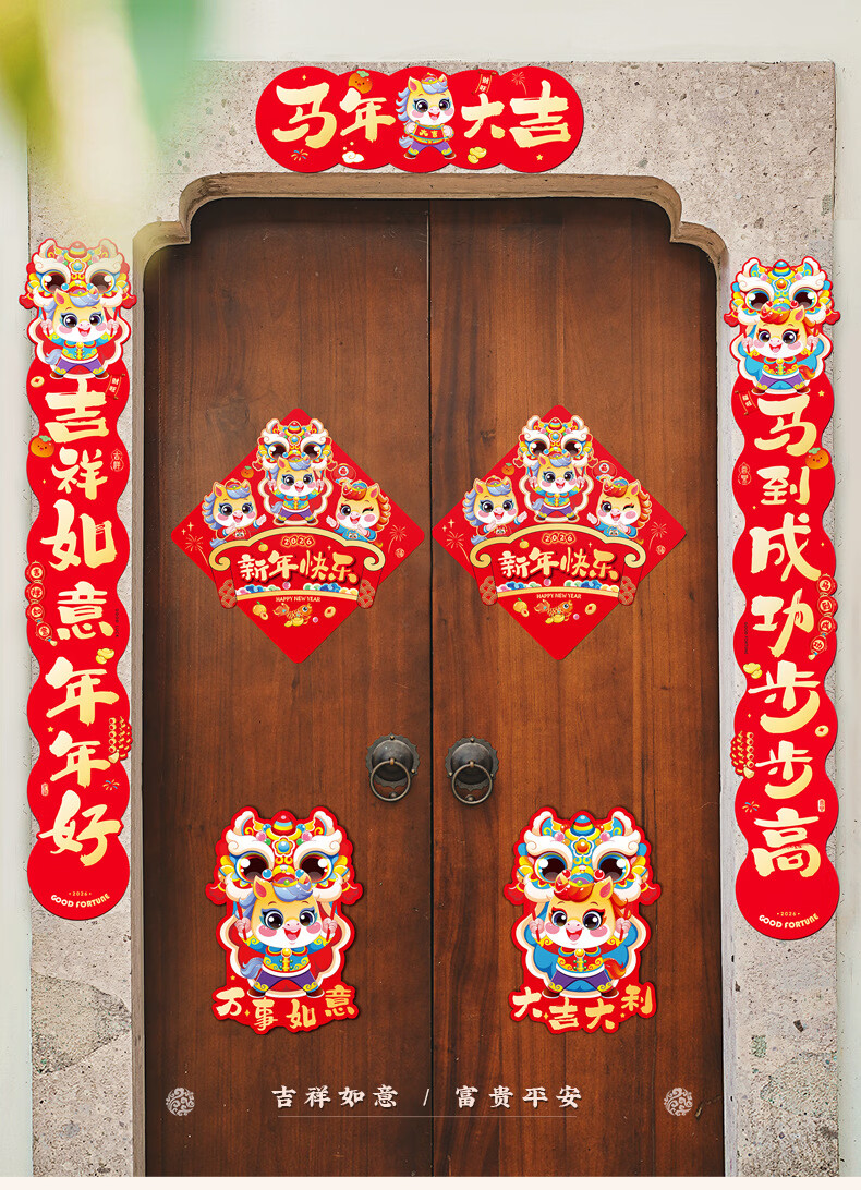 恬舒2026马年对联新年过年春联套装新款春节入户门贴福字大门 金字马年送福72件套【礼盒装】 请看清是否合适后尺寸下单