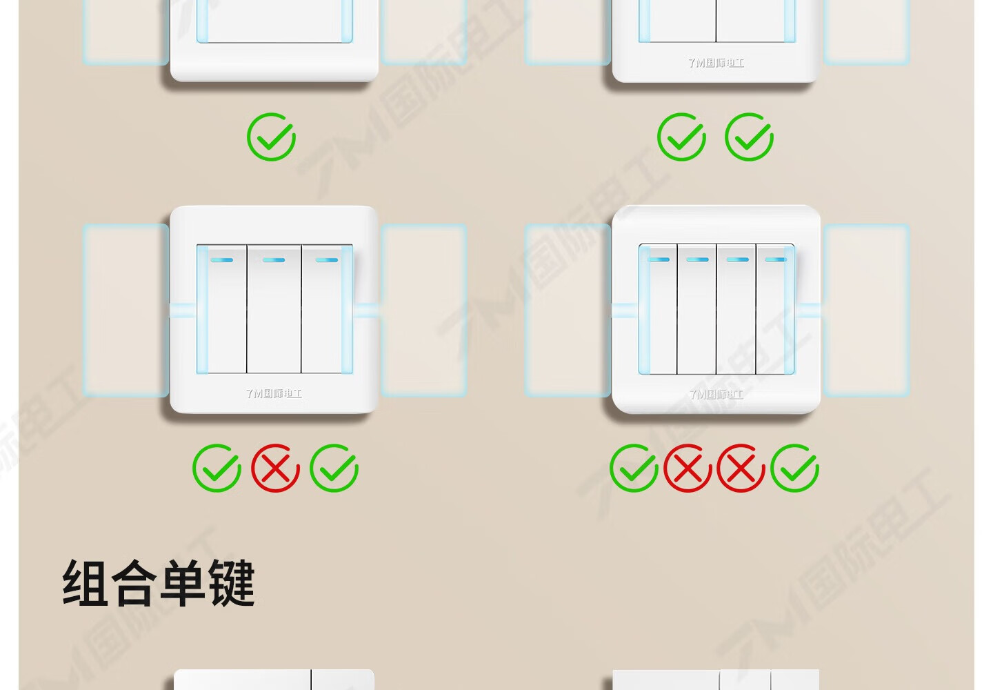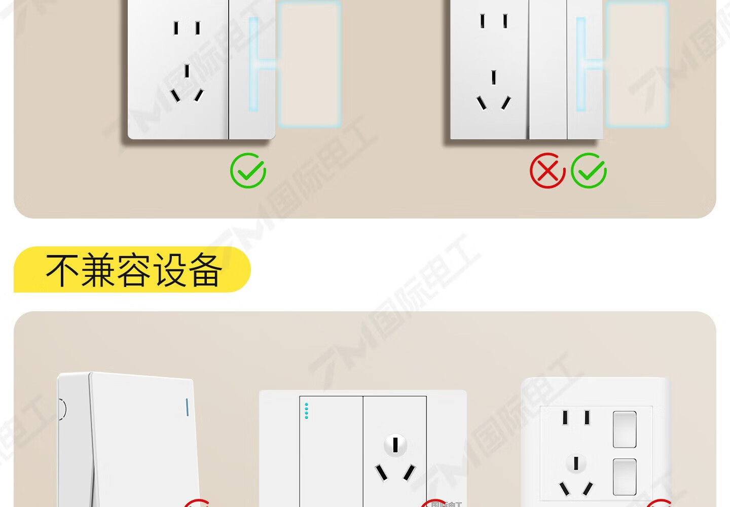 7M国际电工扩展插座86型多功能墙壁拓展插座转换器多孔位无线插排插线接线板 灰色【向右扩展21孔】USB+独开关
