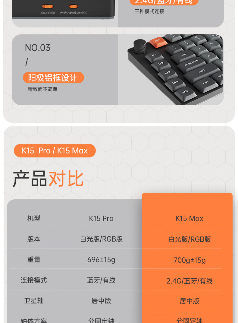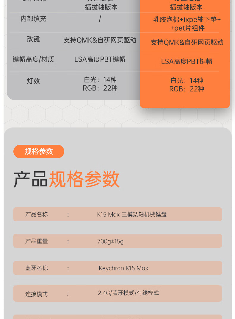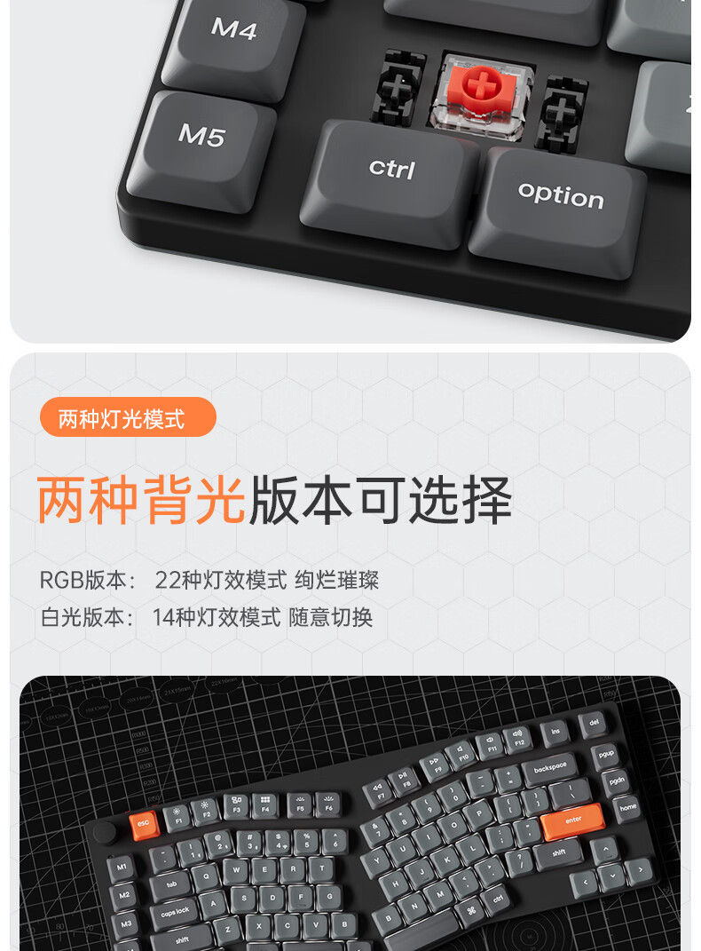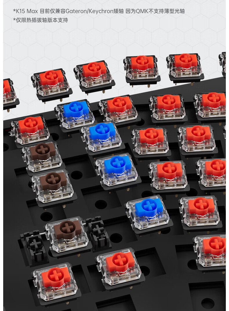 keychron渴创 K15Max 机械键盘 三模无线键盘 矮轴键盘 异形Alice键盘 客制化键盘 QMK/VIA开源改键 K15Max 不可插拔 白光 红轴