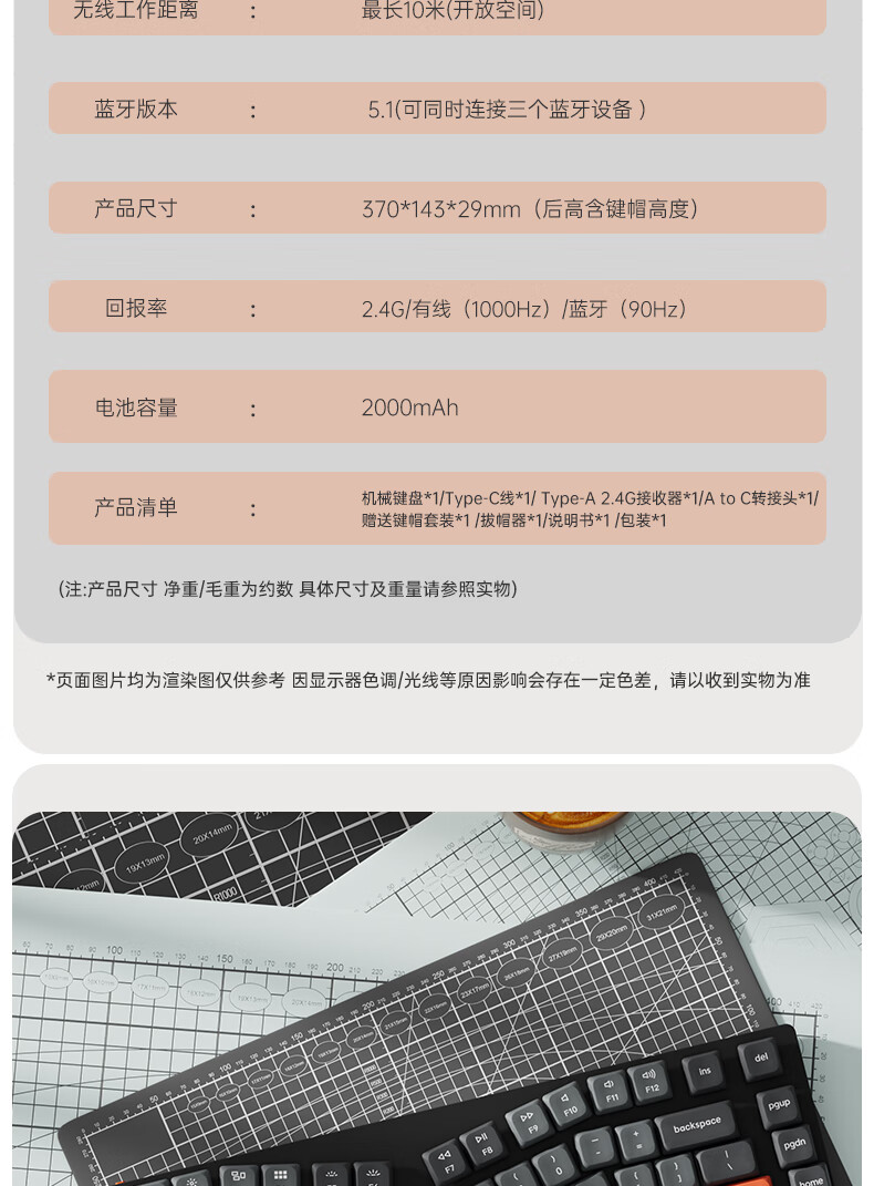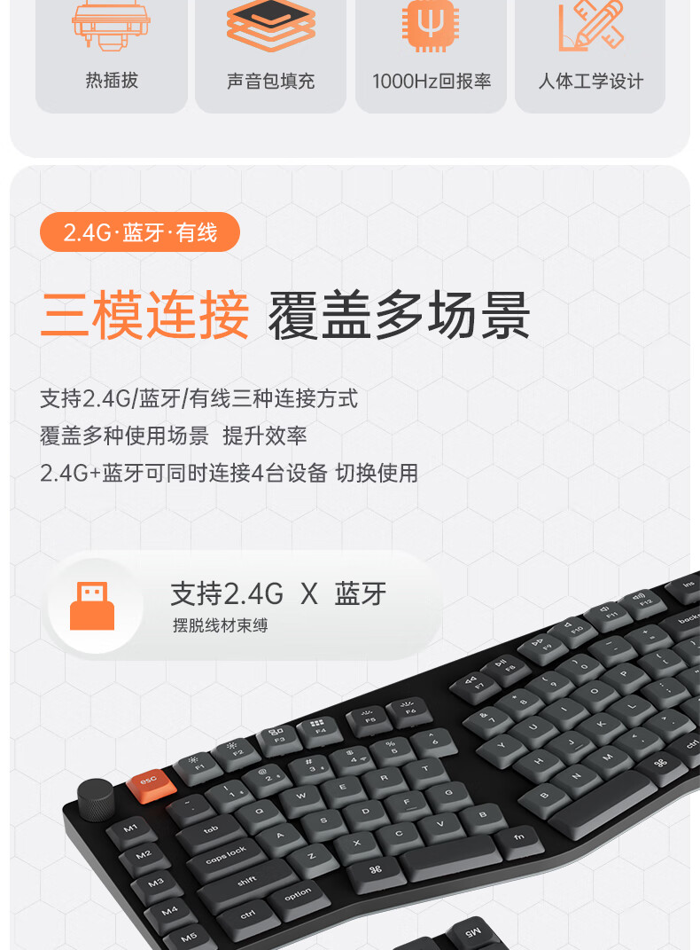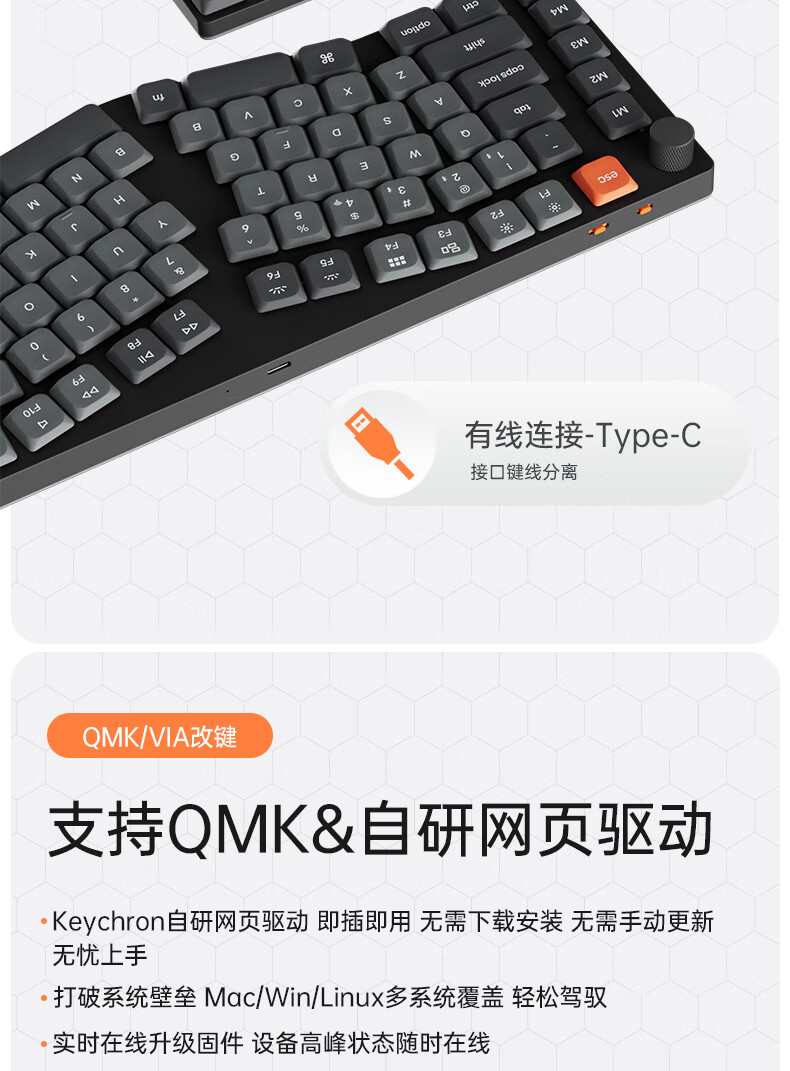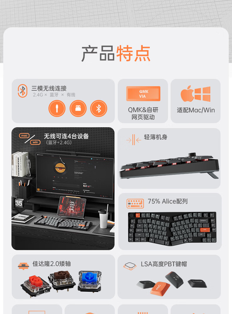 keychron渴创 K15Max 机械键盘 三模无线键盘 矮轴键盘 异形Alice键盘 客制化键盘 QMK/VIA开源改键 K15Max 不可插拔 白光 红轴