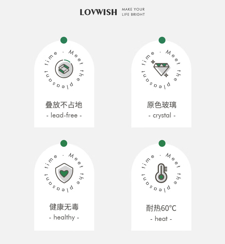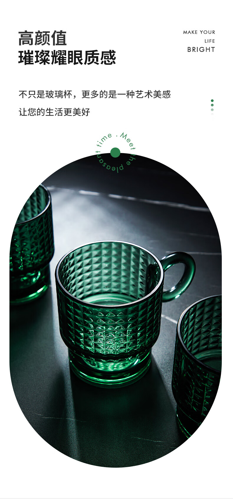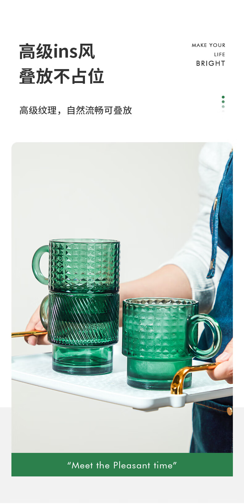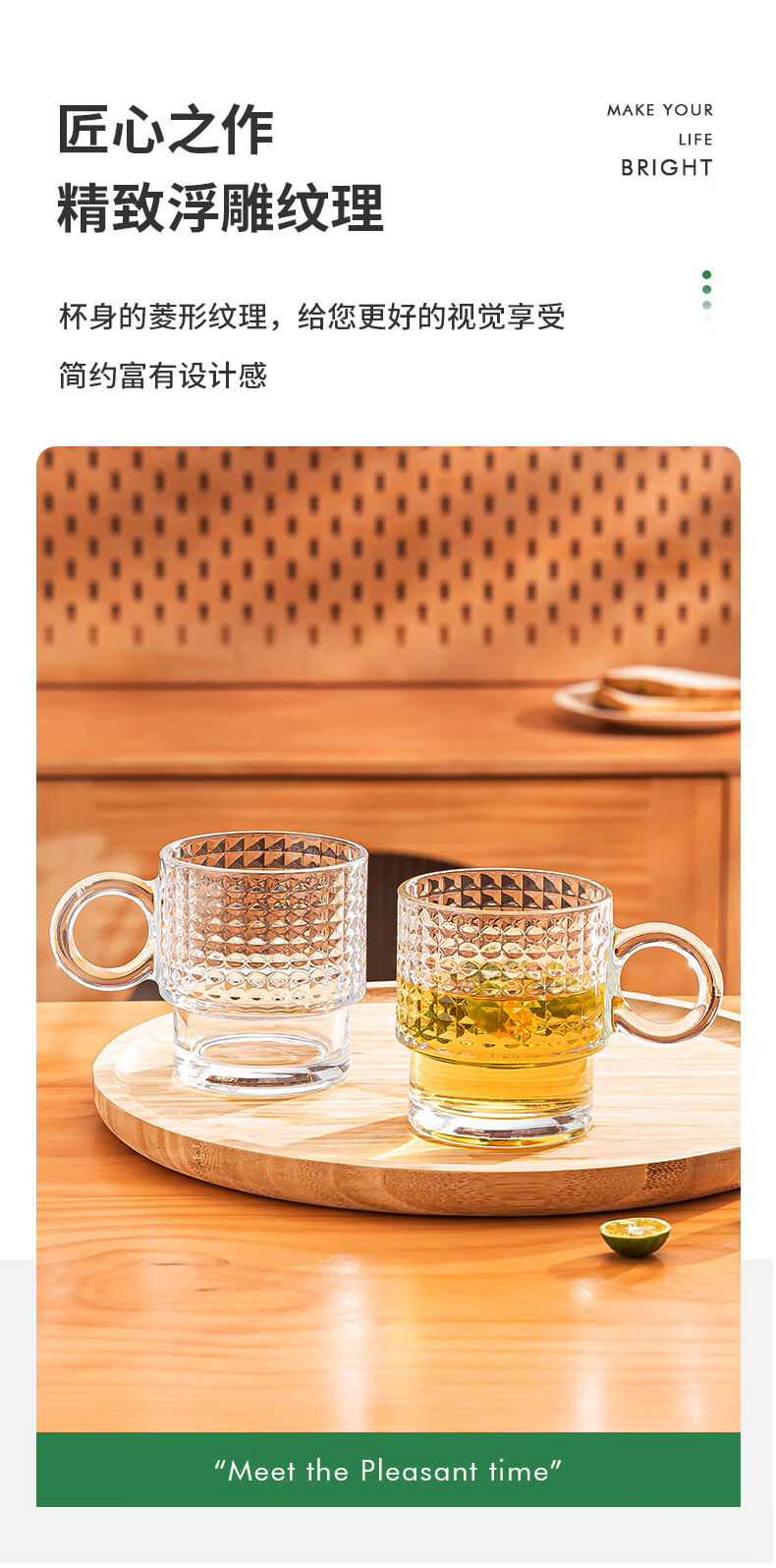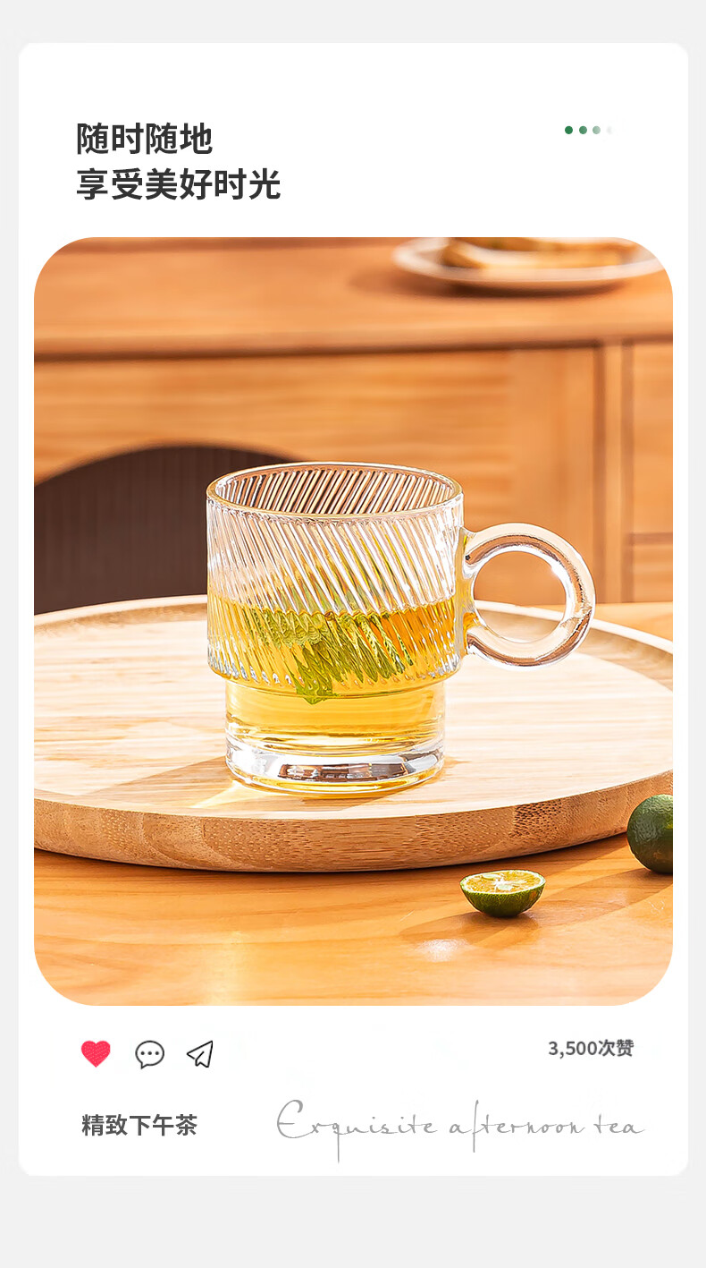 乐唯诗墨绿原色玻璃杯家用大容量喝水杯子女生高颜值带把手叠叠杯饮料杯 乐雅叠叠杯【斜纹透明】 300ml 2只