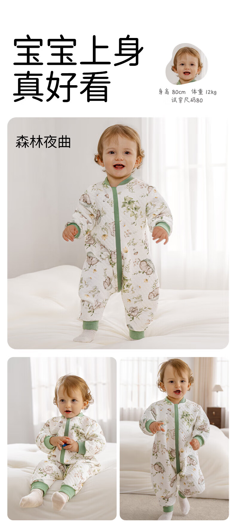 欧孕(OUYUN)婴儿睡袋儿童防踢被全棉宝宝分腿睡袋小孩睡袋防踢被春-1 森林夜曲【L】推荐身高90-105cm
