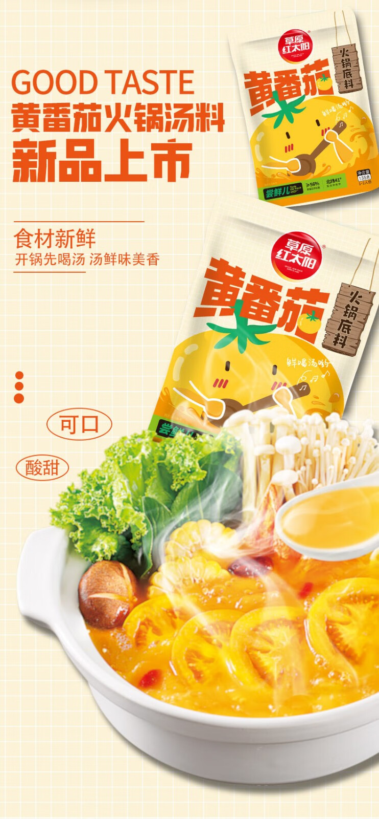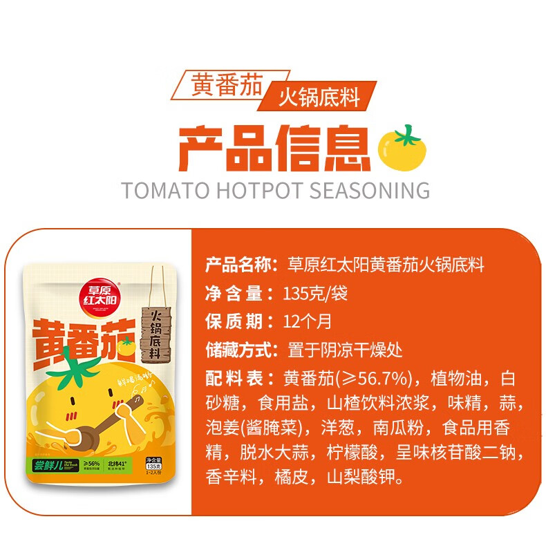 草原红太阳黄柿子底汤番茄味火锅锅底麻辣烫底料调味汤包135g/袋 黄番茄火锅底料3袋