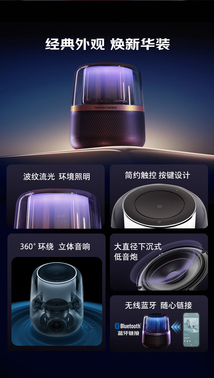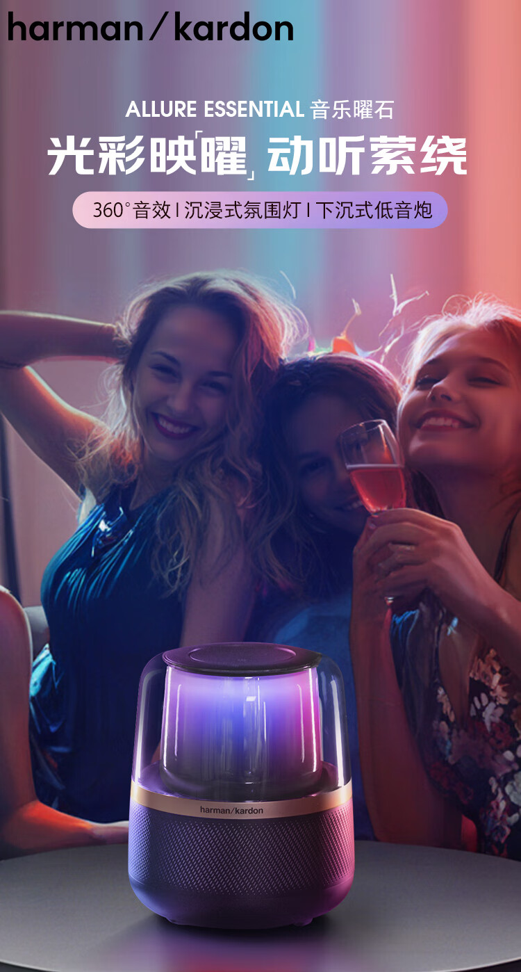 哈曼卡顿(Harman/Kardon) 音乐曜石蓝牙音箱音响 电脑桌面仿水晶琉璃4代琉璃5材质 Allure Esential 男生新年礼物