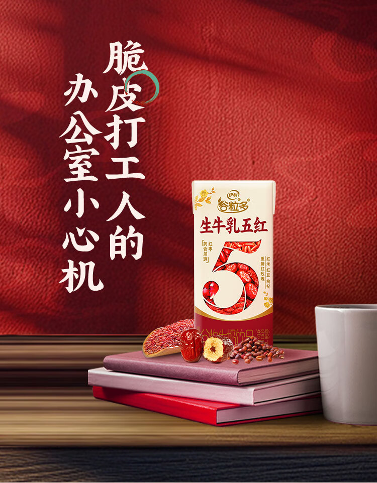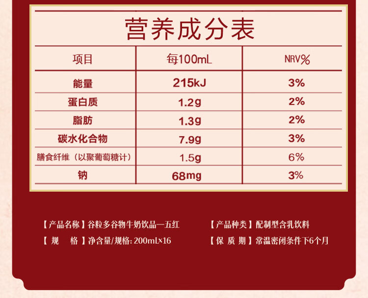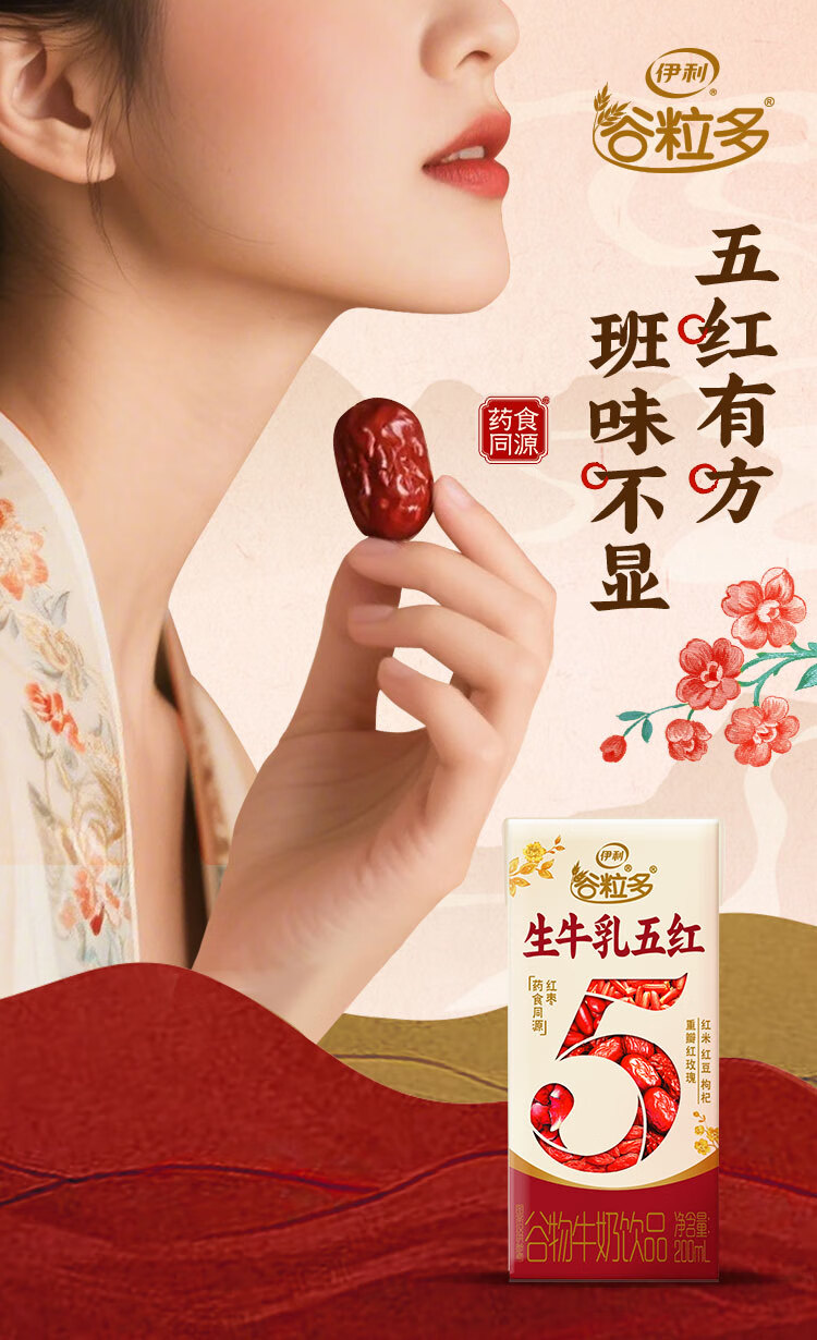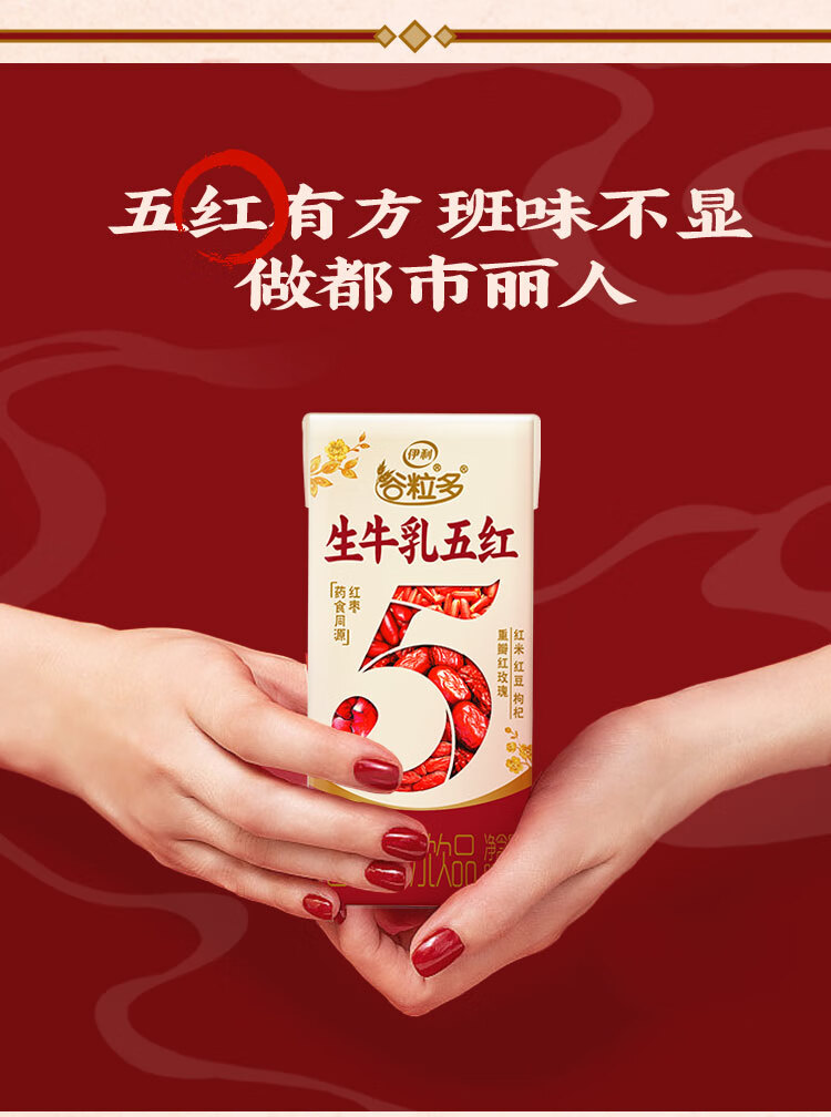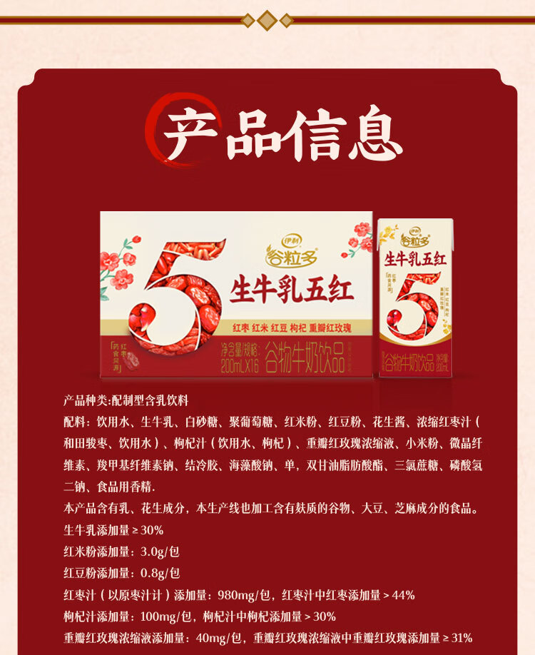 伊利谷粒多生牛乳五红16盒牛奶饮品红豆红枣红米枸杞红玫瑰12月 200ml*16盒/箱
