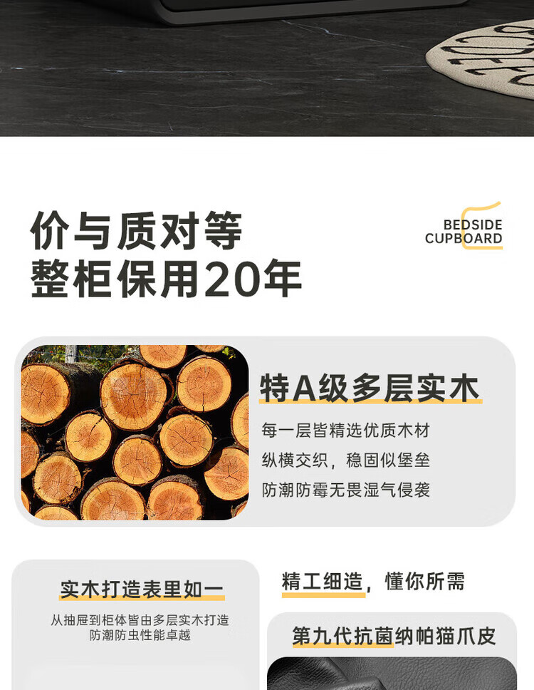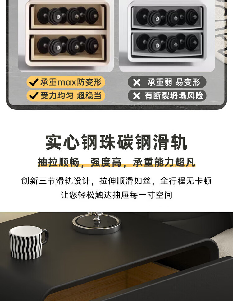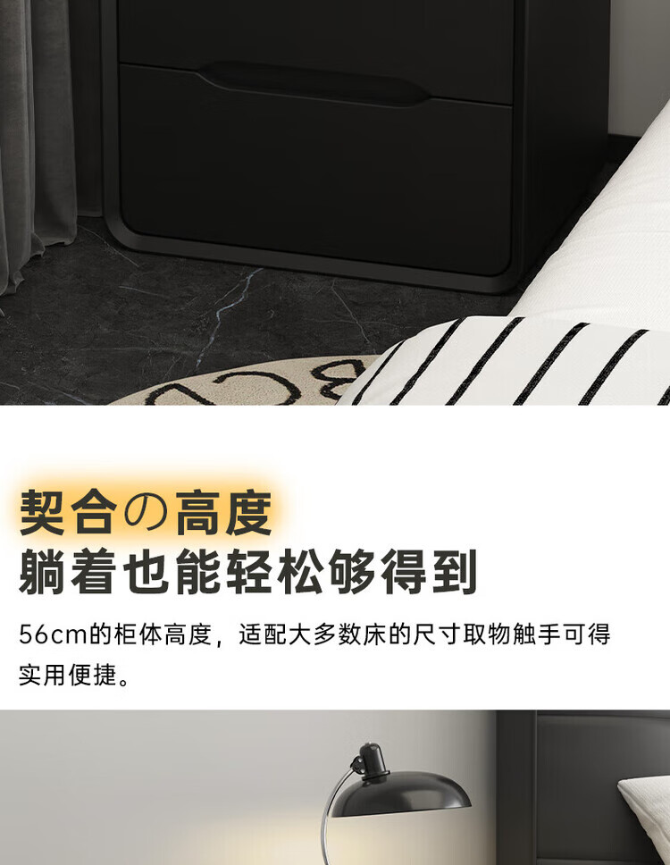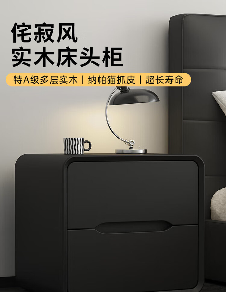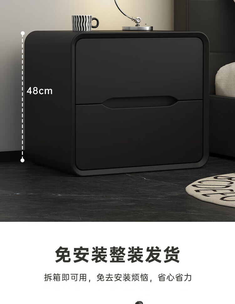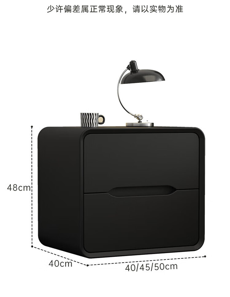 耐禾实木床头柜置物架2026爆款轻奢高级感家用卧室床边收纳储物柜 黑色 【实木抽屉+整装发货】 长40x宽40x高48cm
