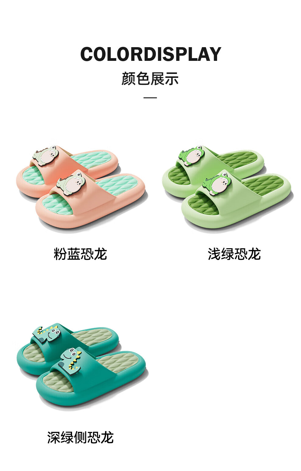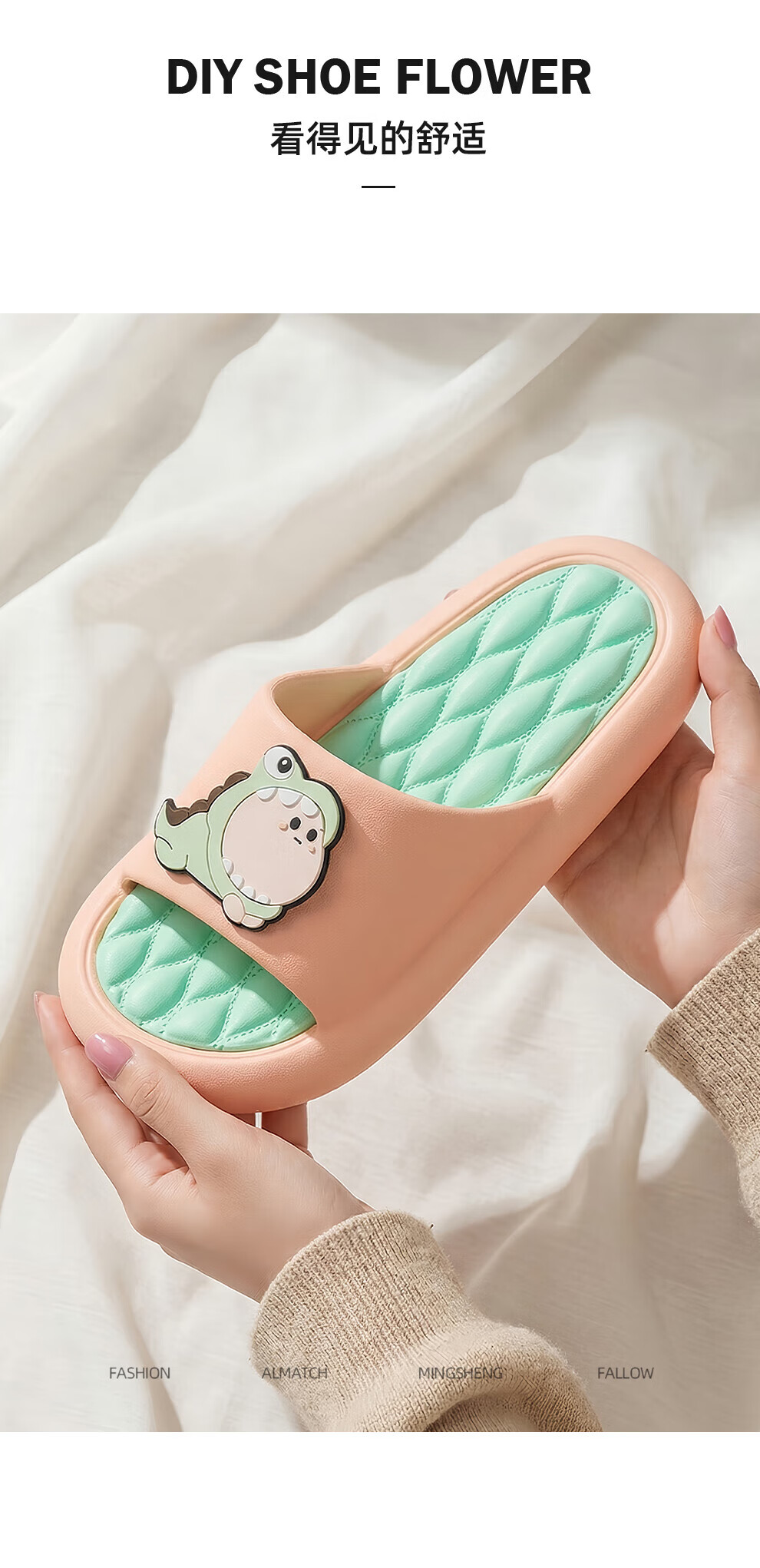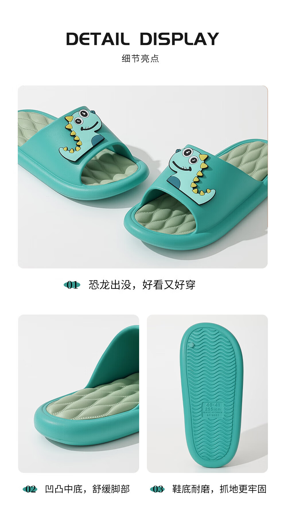 FZT可爱小恐龙踩屎感拖鞋女士春季2026新款室内家居防滑耐磨凉拖鞋女 深绿 36-37 标准码