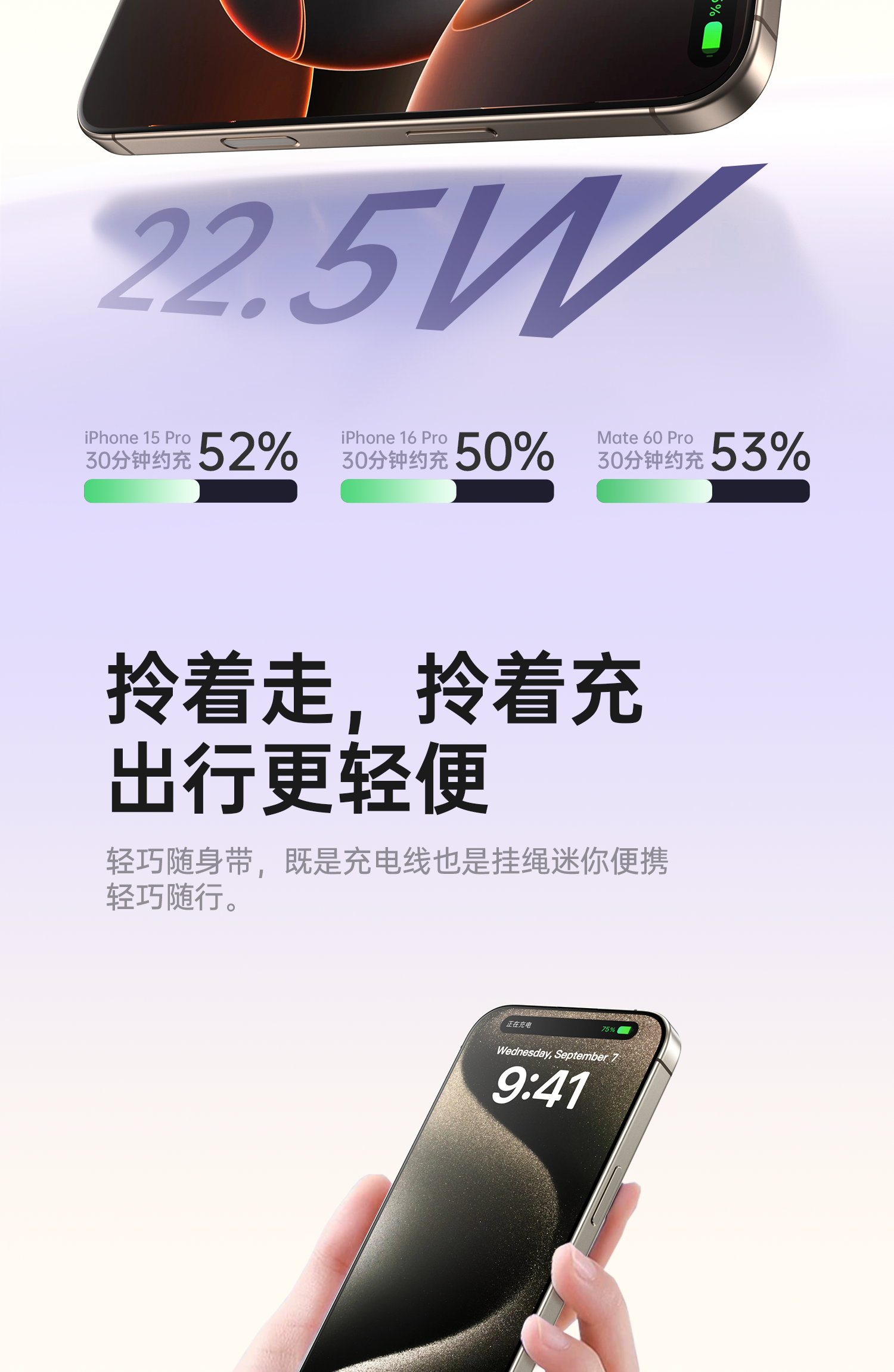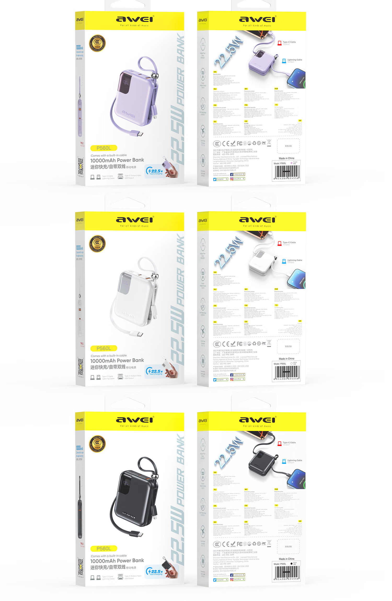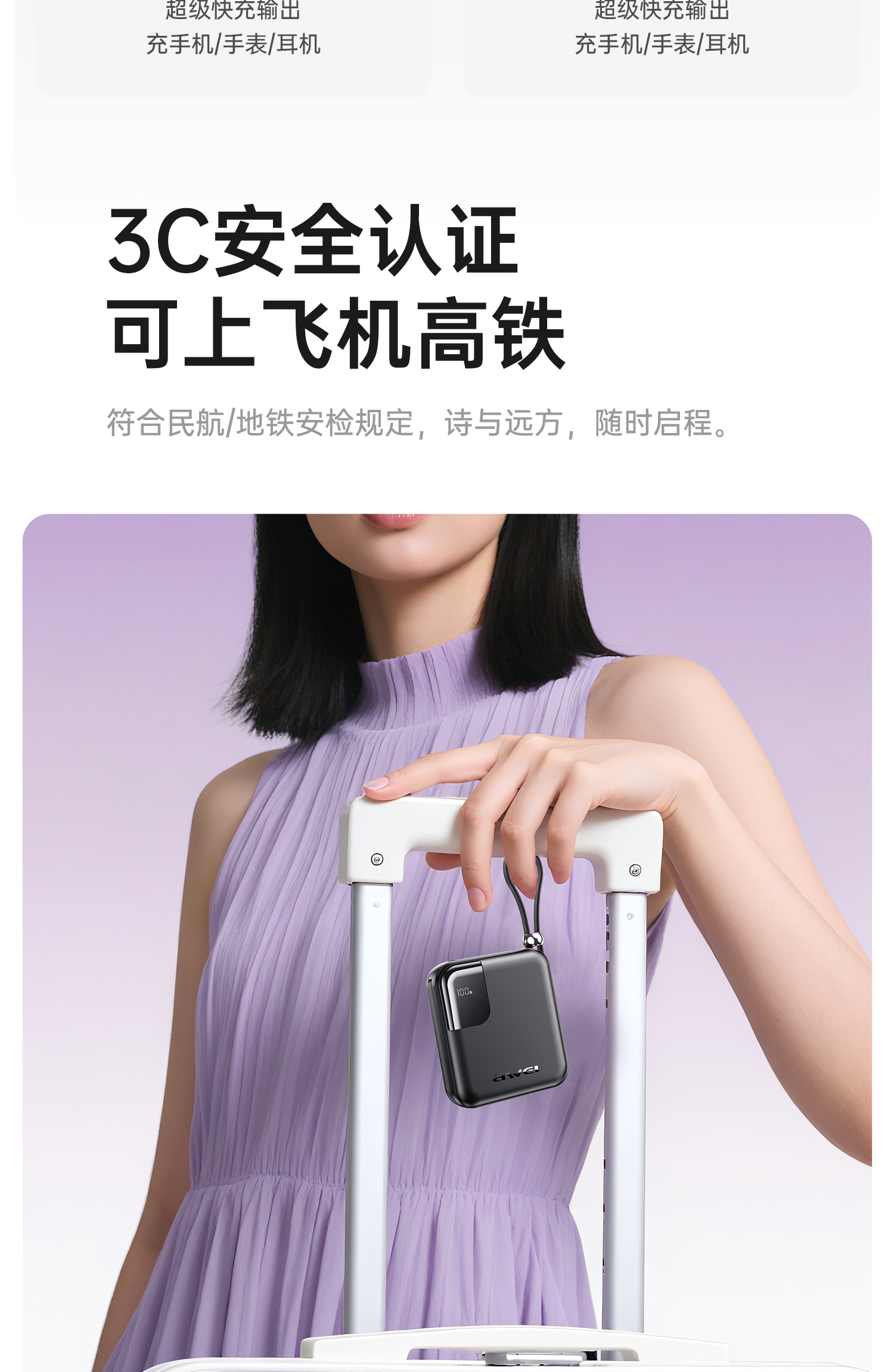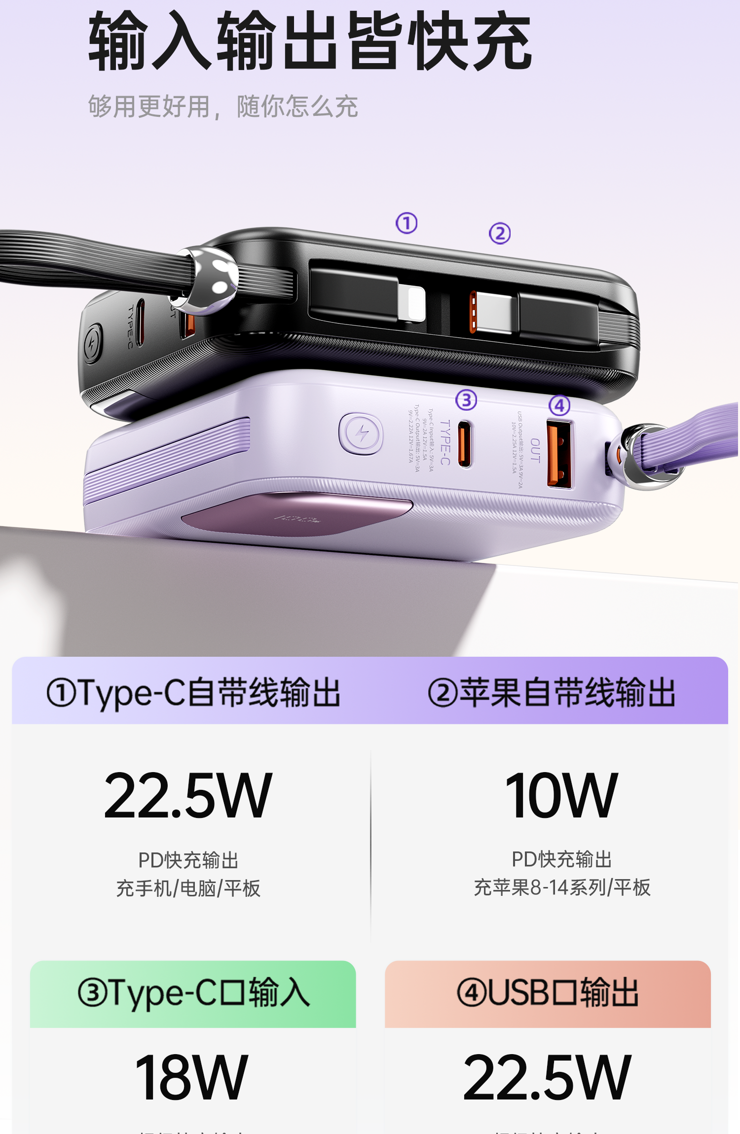 用维(AWEI)充电宝10000毫安容量自带双线22.5W快充移动电源迷你超薄小巧便携适用苹果17【3C认证可上飞机】 紫色丨电量数显丨自带苹果+Type-C双线 10000mAh