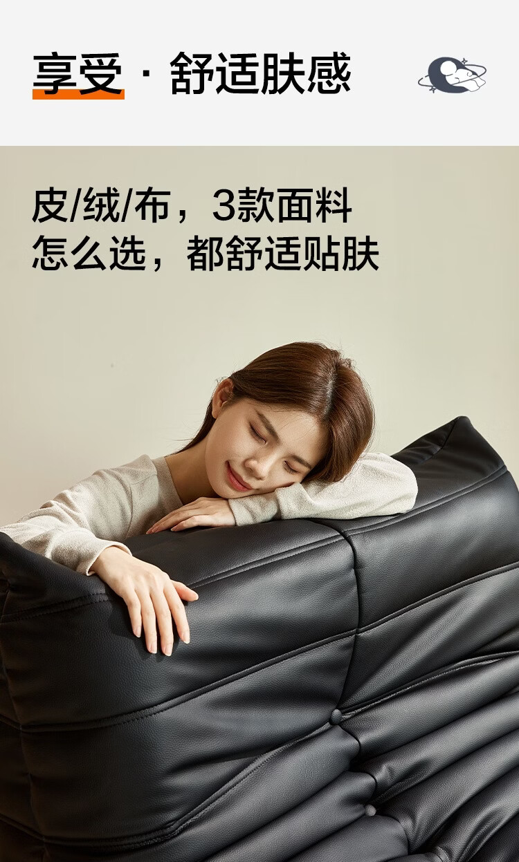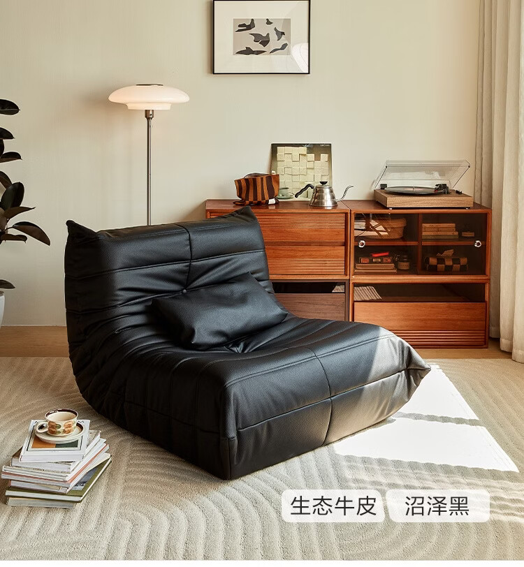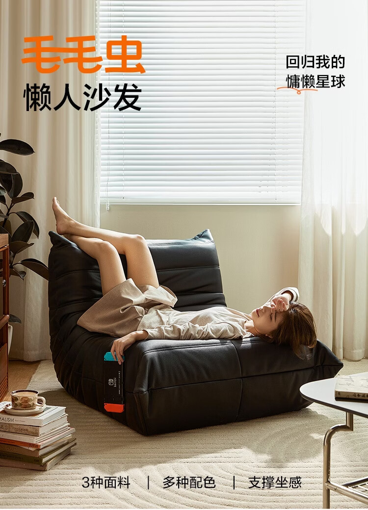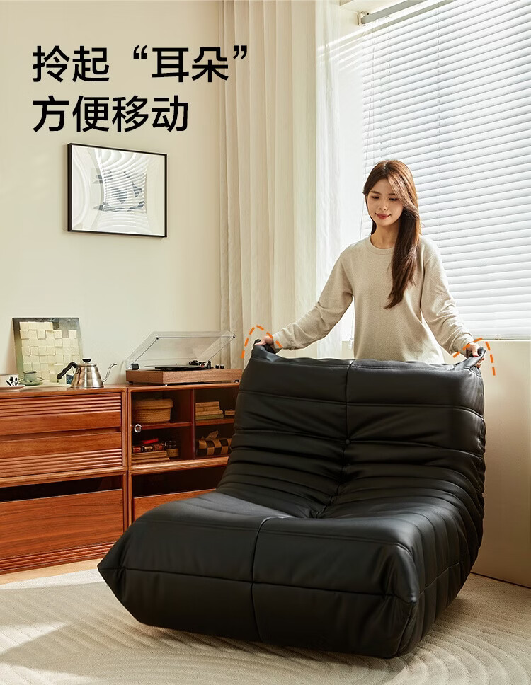 LINSY KIDS林氏家居懒人沙发客厅2025新款单人椅毛毛虫可躺可睡沙发TDY255 (2)【耐用生态牛皮】沼泽黑-小单人位