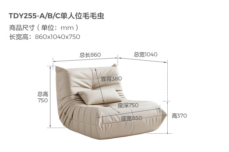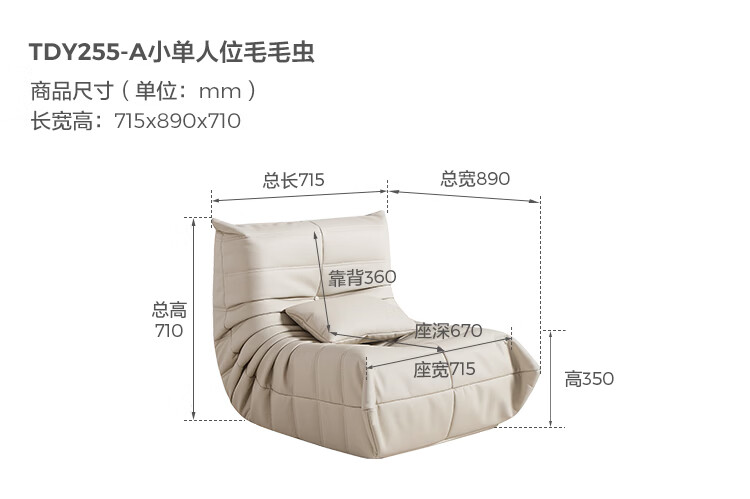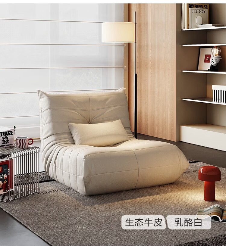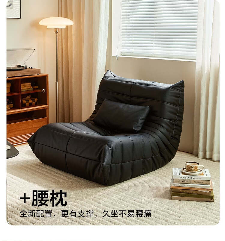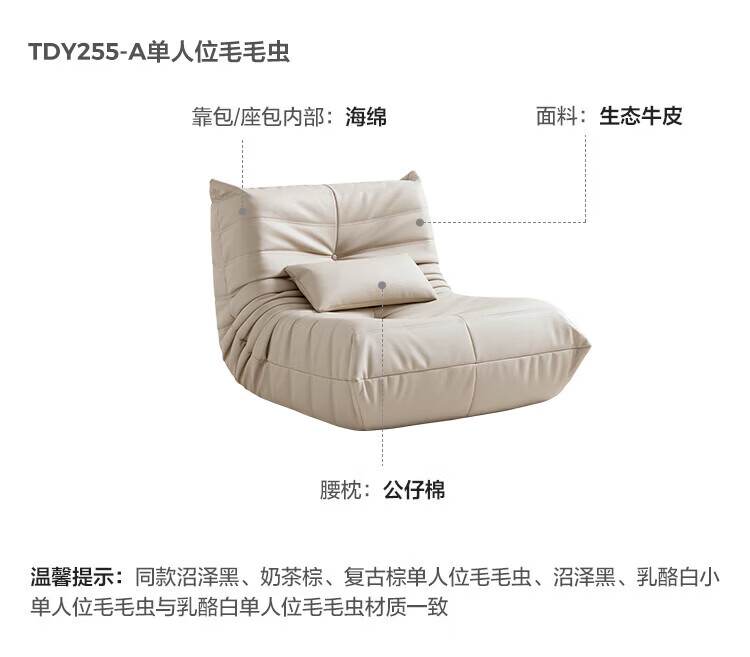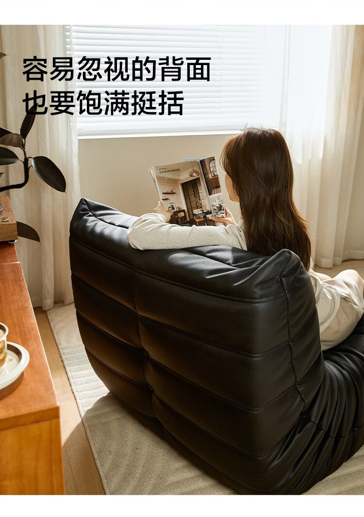 LINSY KIDS林氏家居懒人沙发客厅2025新款单人椅毛毛虫可躺可睡沙发TDY255 (2)【耐用生态牛皮】沼泽黑-小单人位