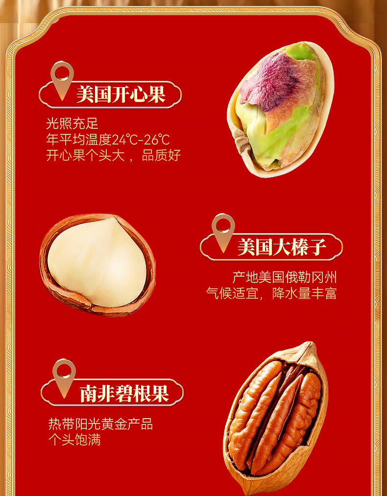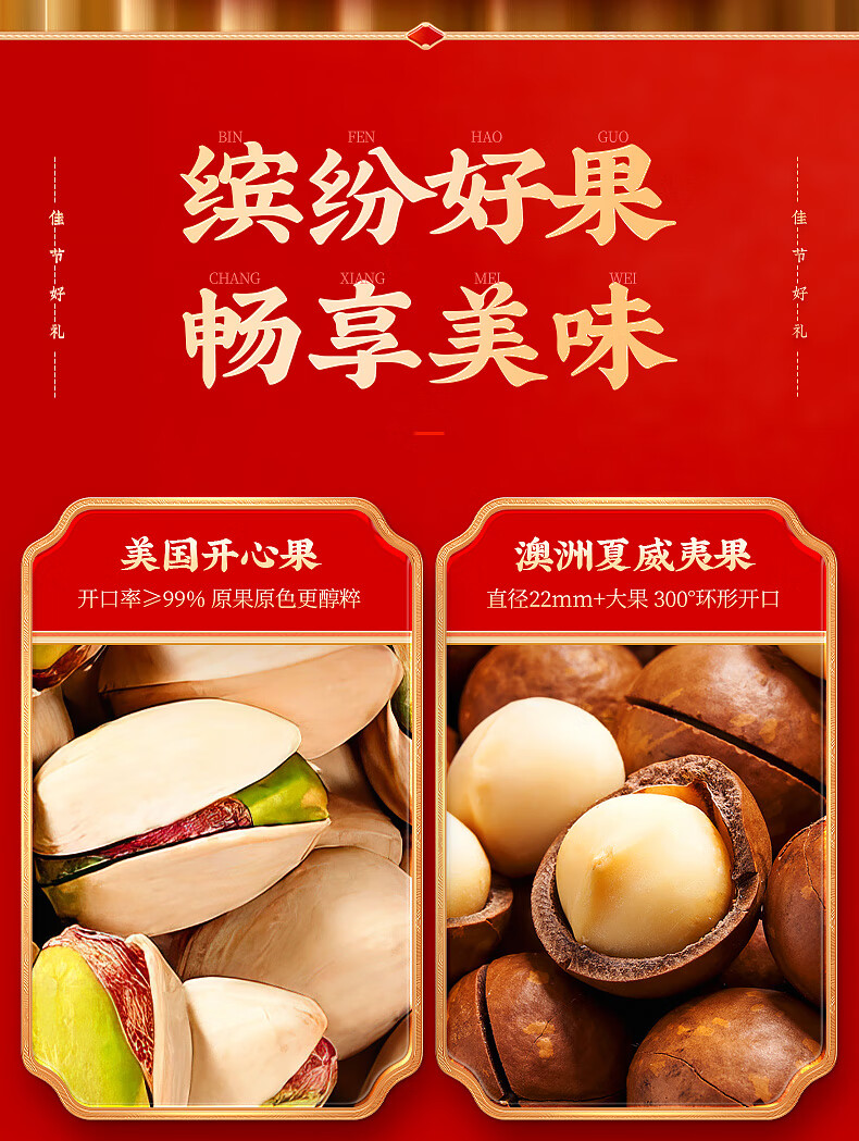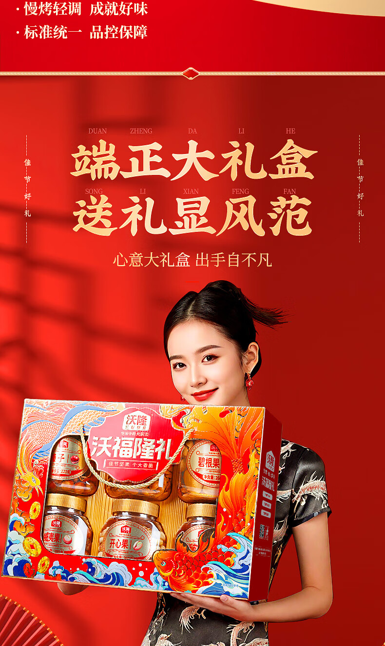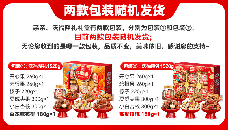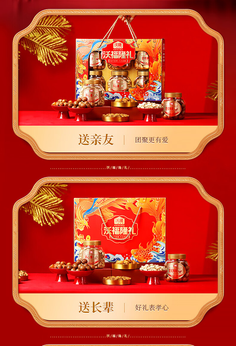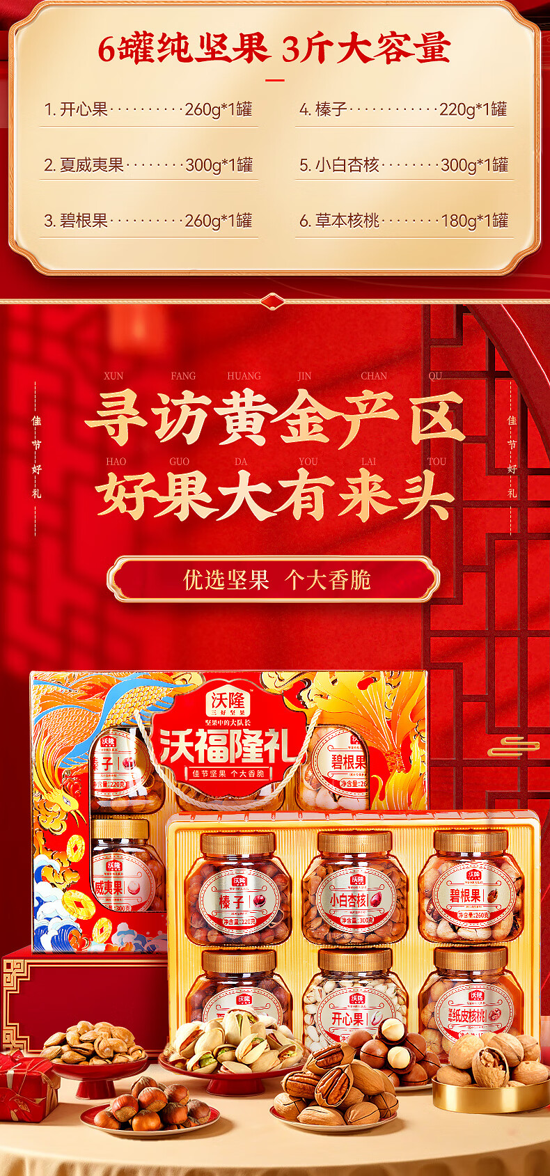 沃隆纯坚果礼盒6罐1.52kg沃福隆礼开心果干果零食炒货大礼包节日礼盒