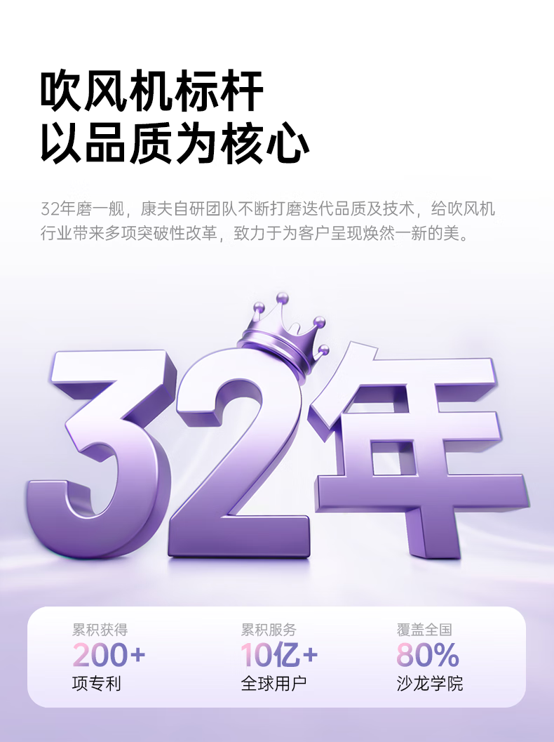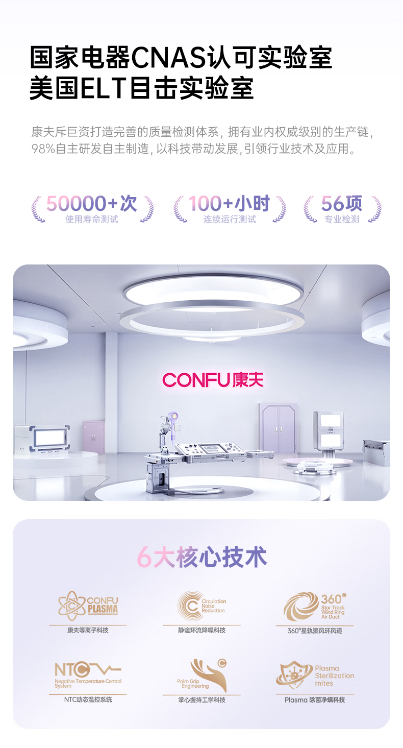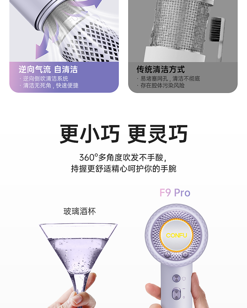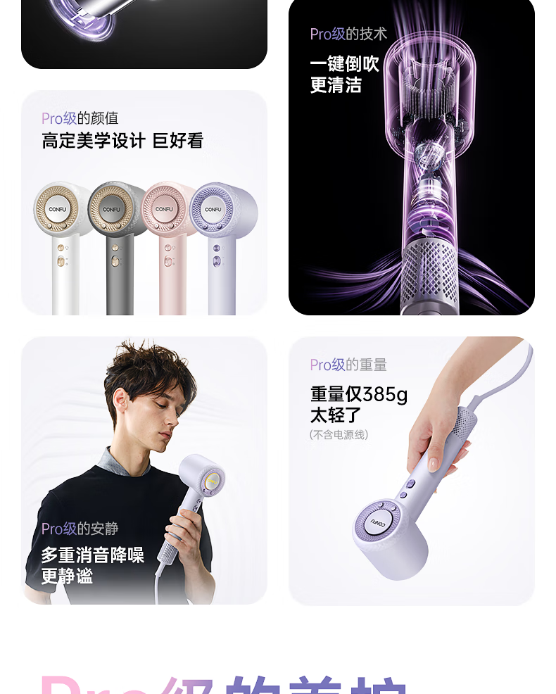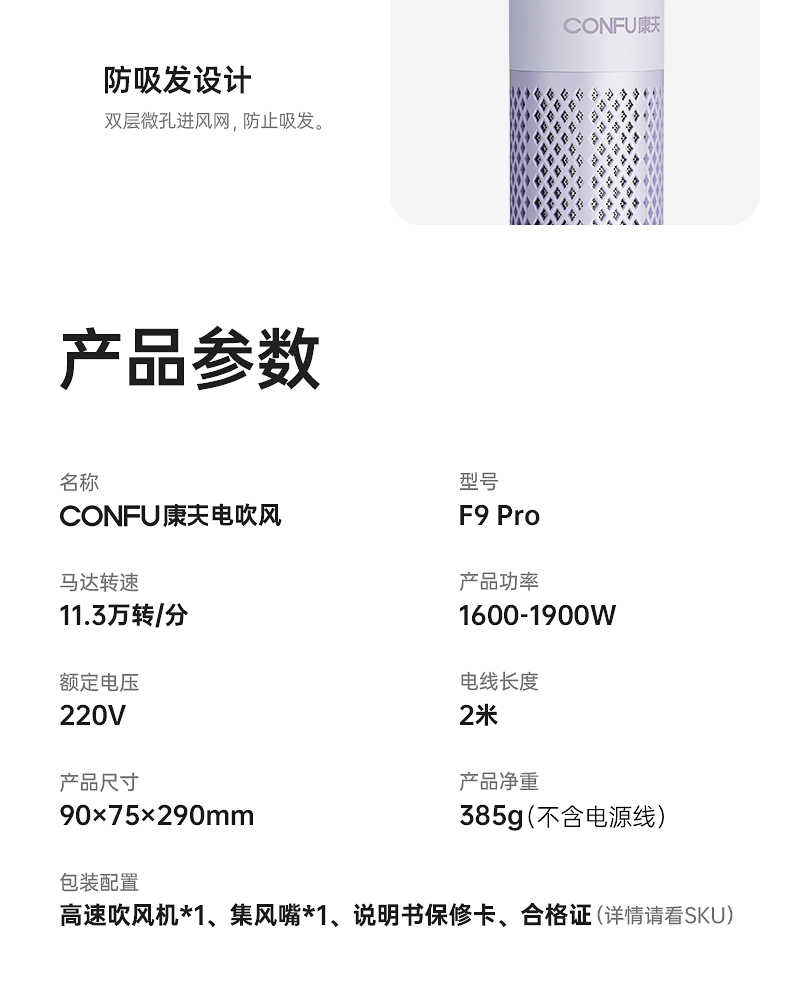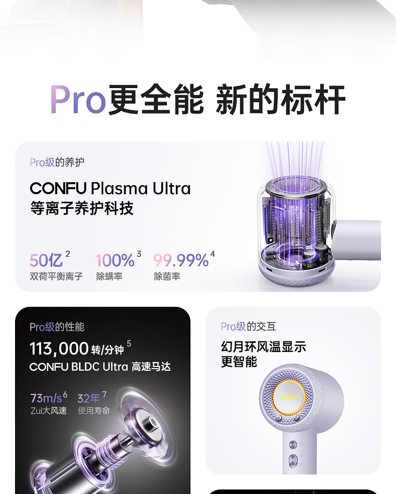 康夫(CONFU)高速护发吹风机50亿等离子家用大功率速干新年礼物送女友电吹风筒F9Pro尤莱特紫