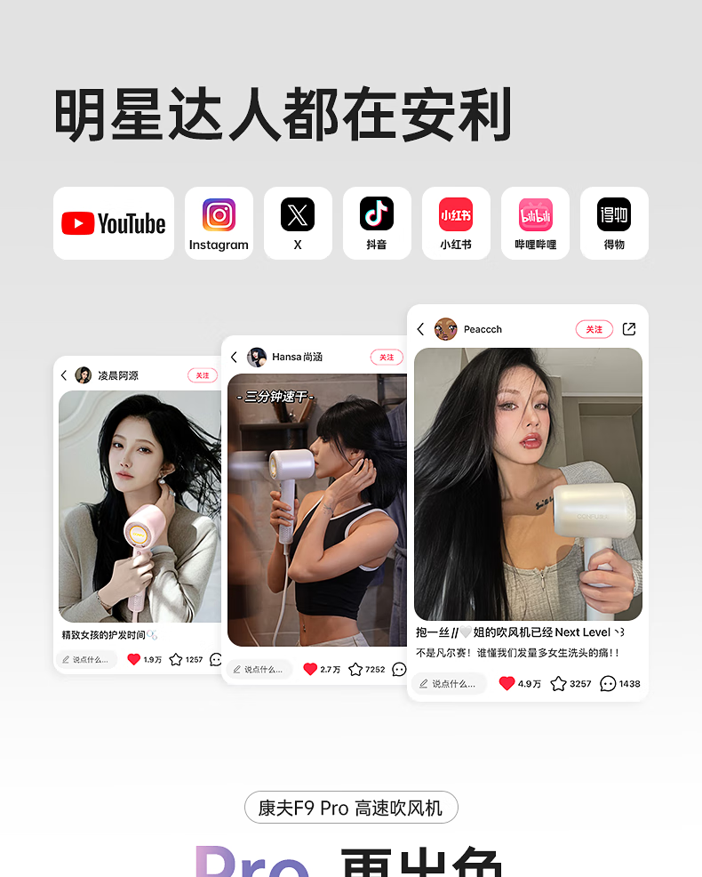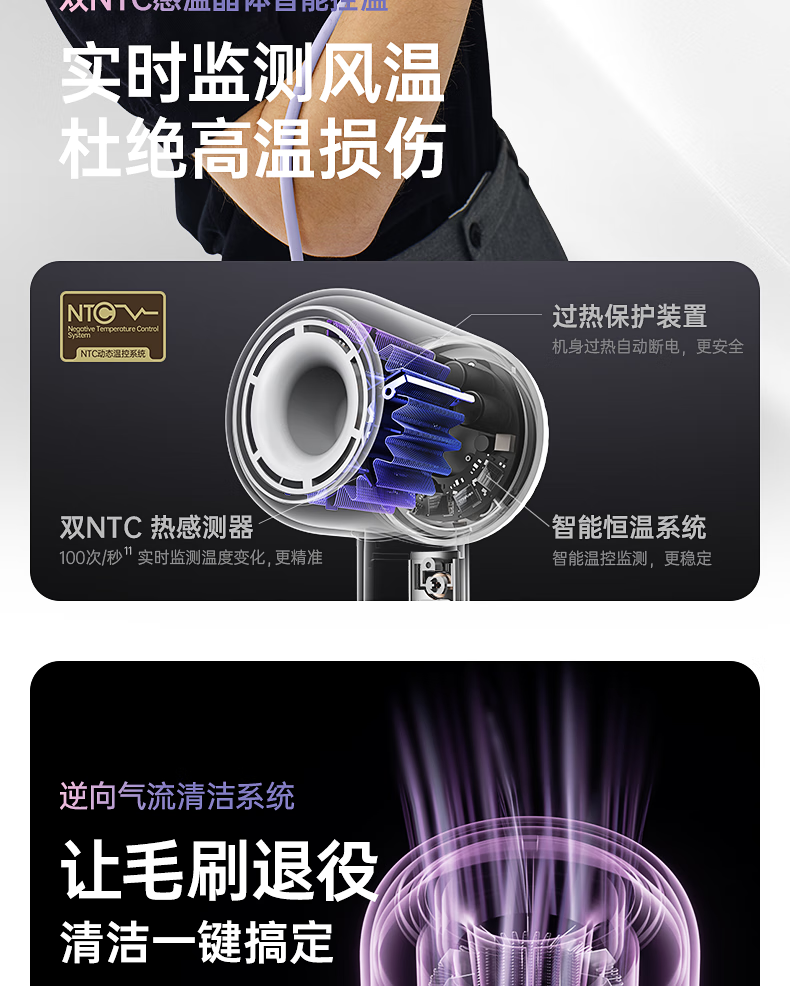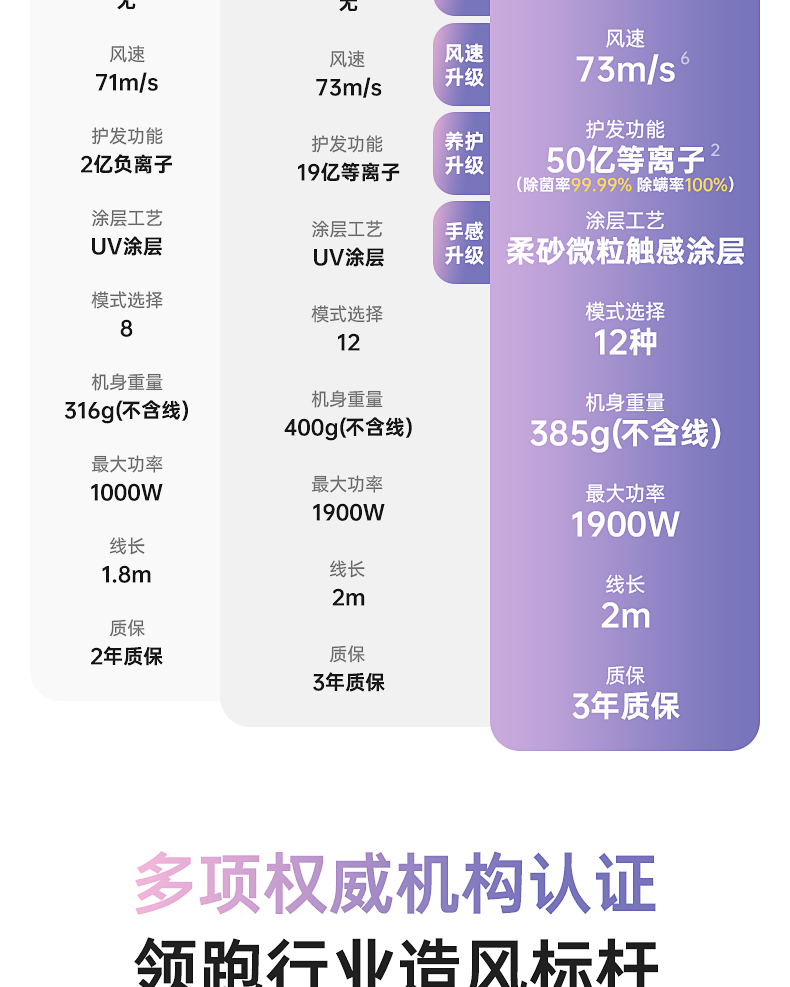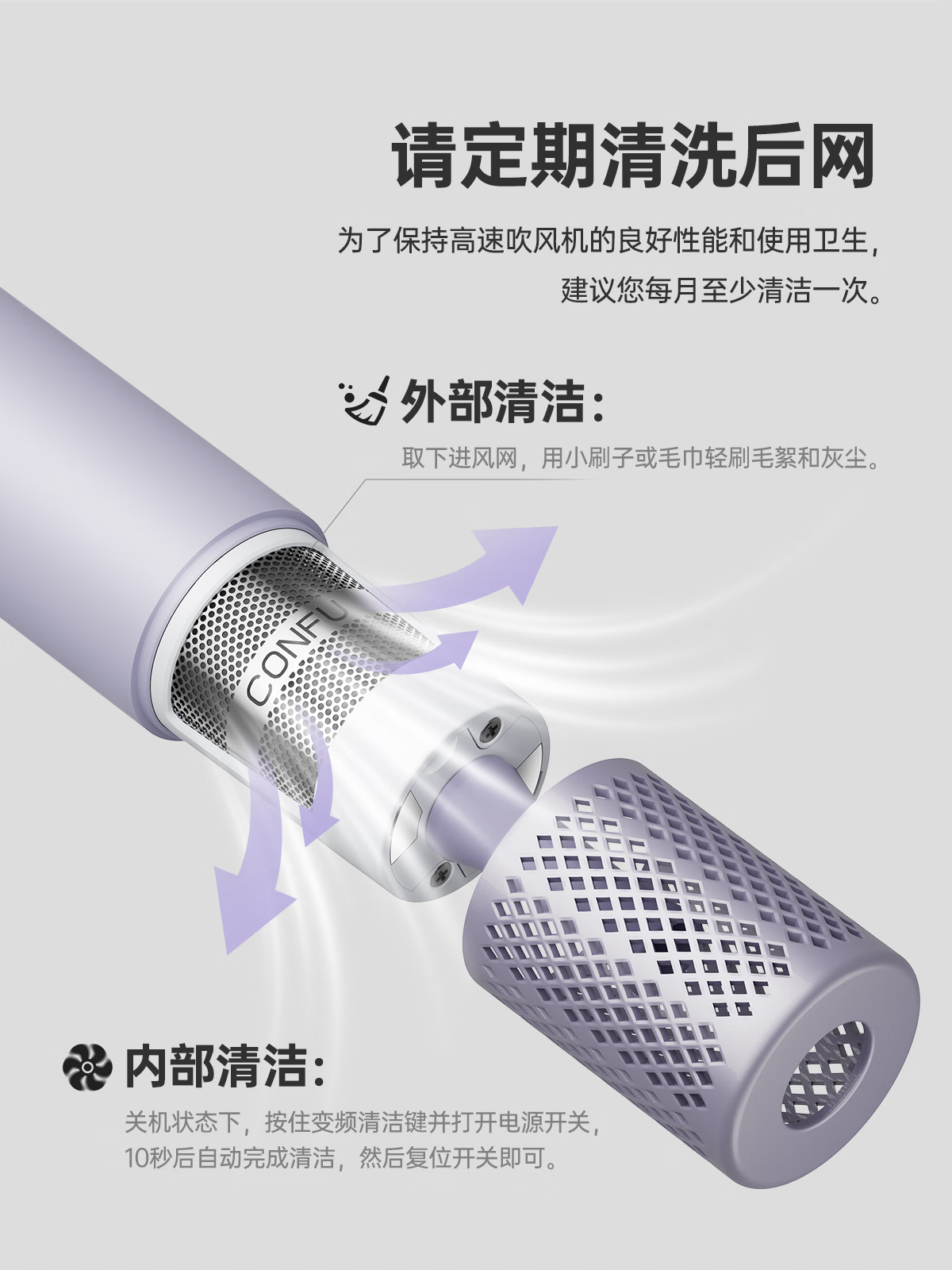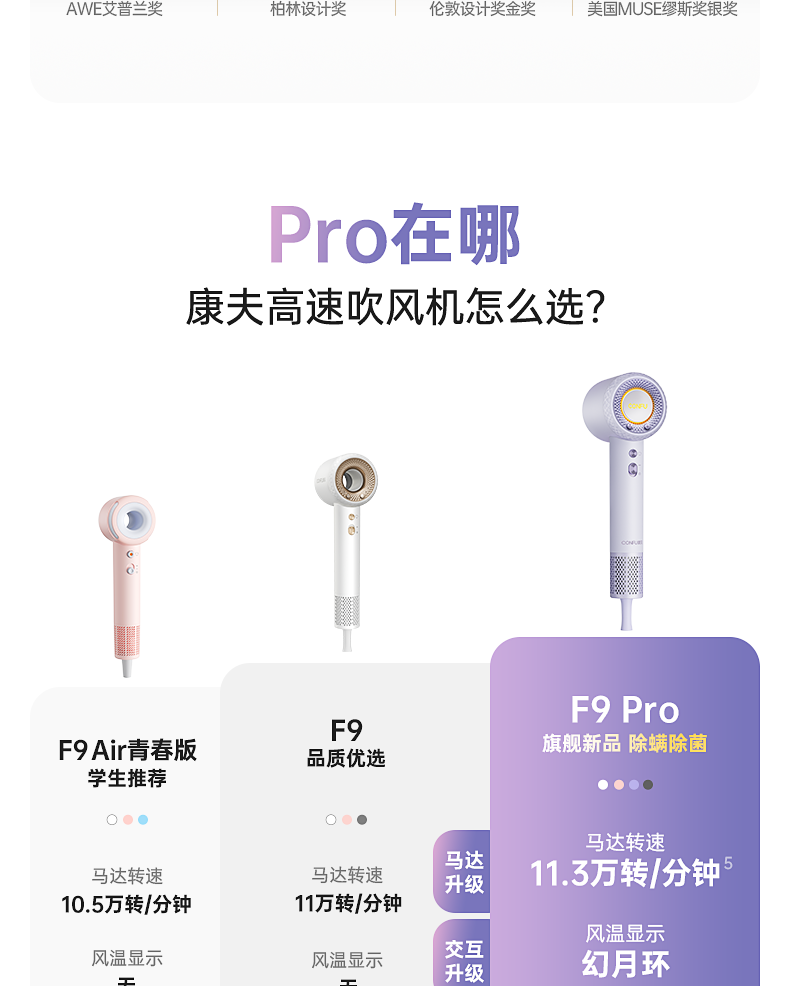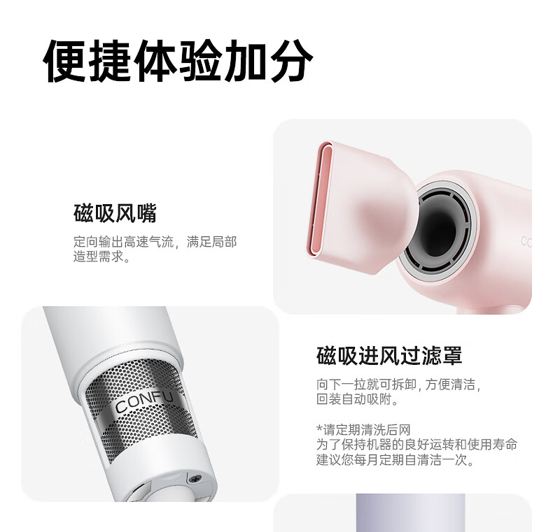 康夫(CONFU)高速护发吹风机50亿等离子家用大功率速干新年礼物送女友电吹风筒F9Pro尤莱特紫