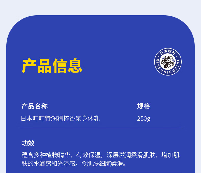 日本叮叮特润精粹香氛身体乳250g 防干燥干裂滋润保湿全身留香润肤乳液