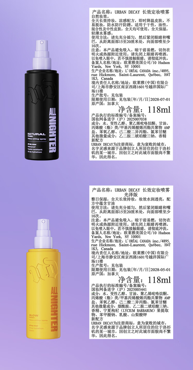 Urban Decay【颠覆升级】衰败城市UD定妆喷雾焊妆控油持久防水新年礼物118ml
