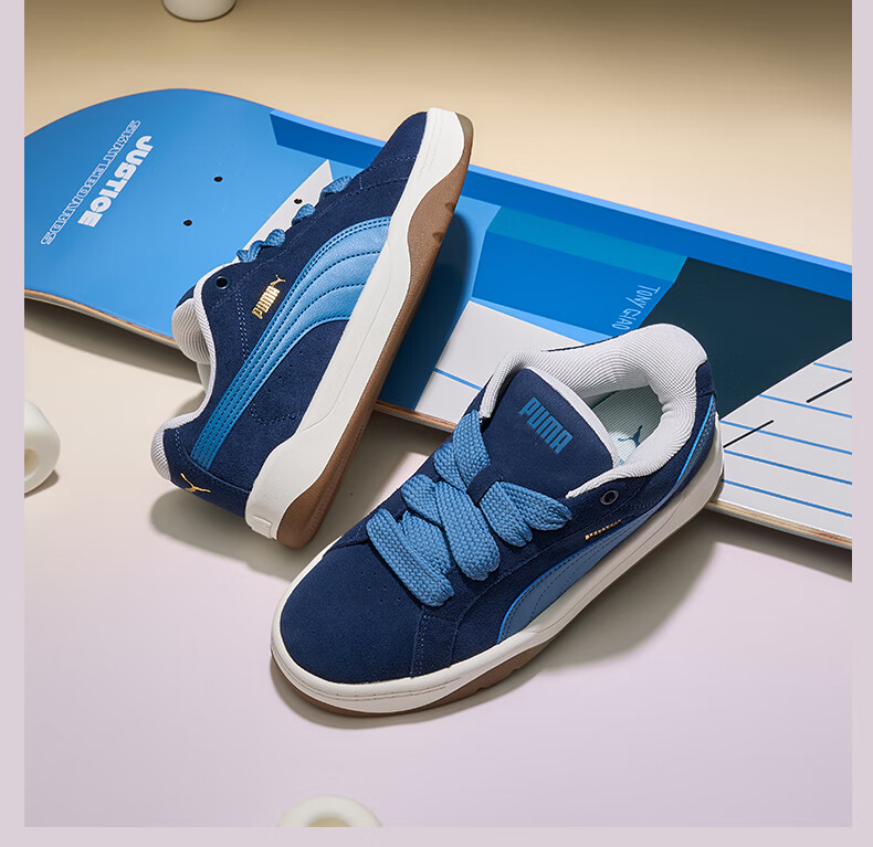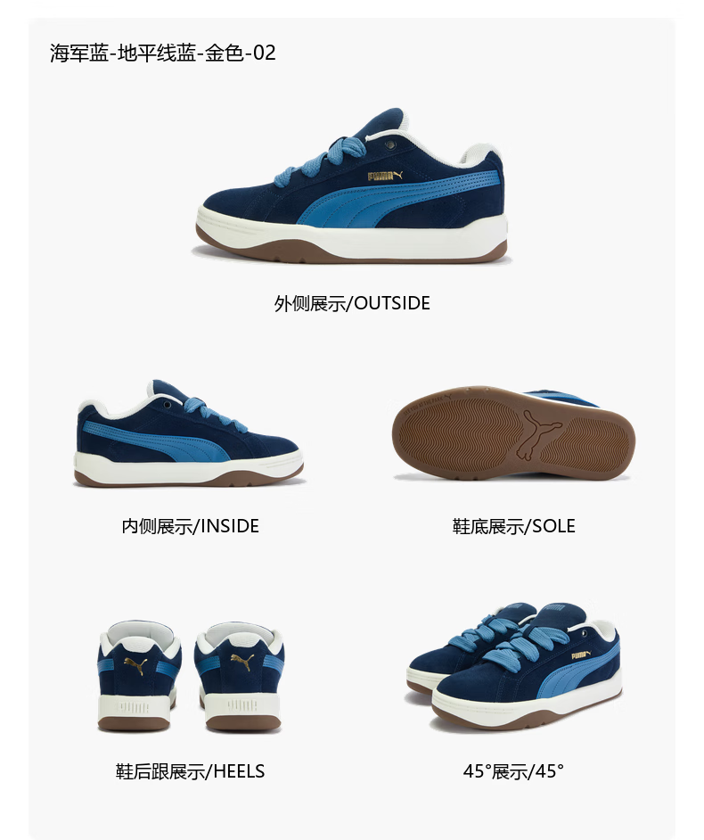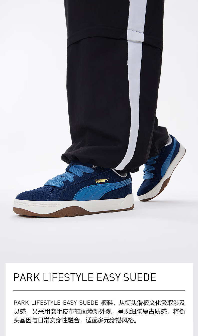 彪马(PUMA)官方 男女同款复古休闲板鞋 PARK LIFESTYLE EASY SUEDE 407867 海军蓝-地平线蓝-金色-02 40