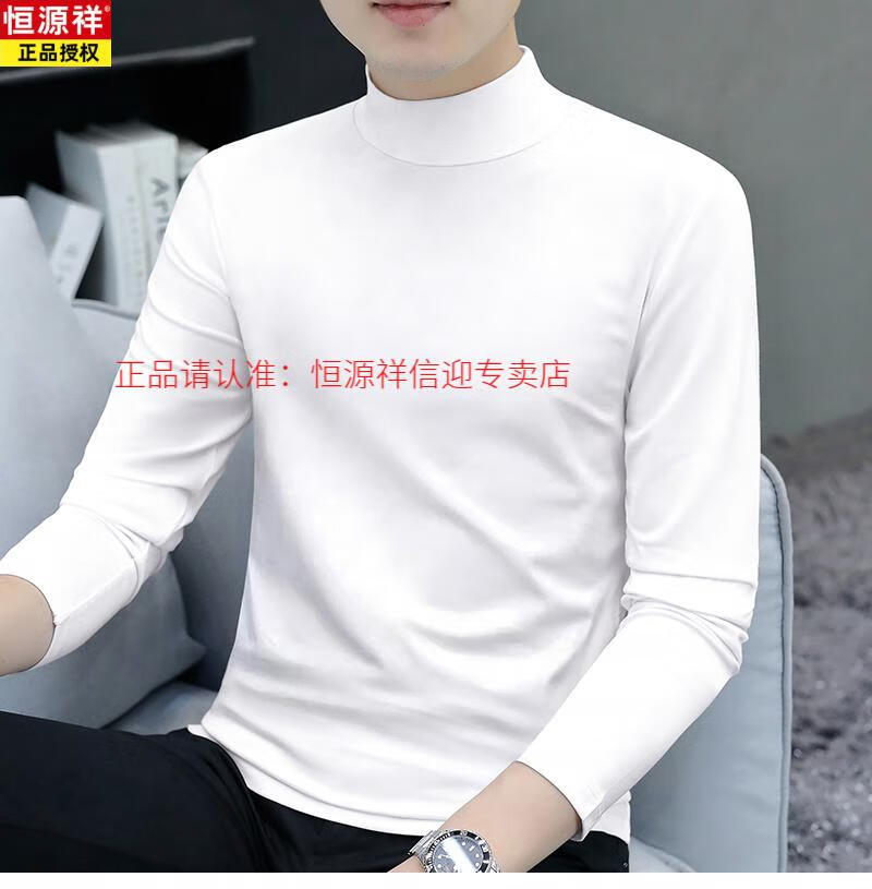 恒源祥半高领打底衫男士新款纯棉修身长袖T恤秋冬内搭中领加厚上衣 白色 2XL 145-160斤