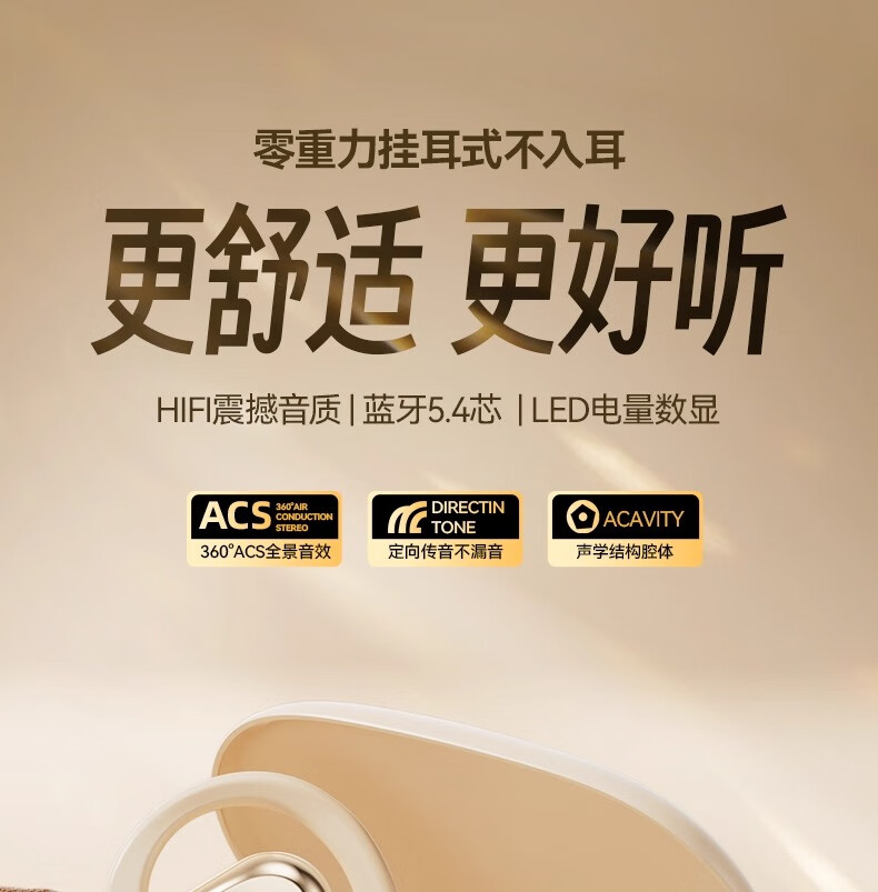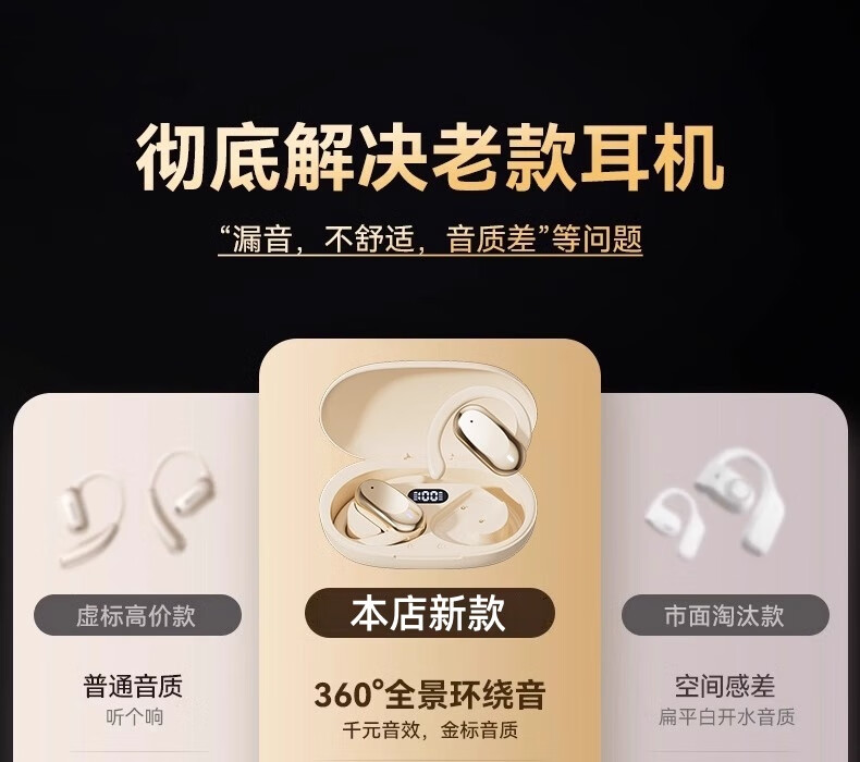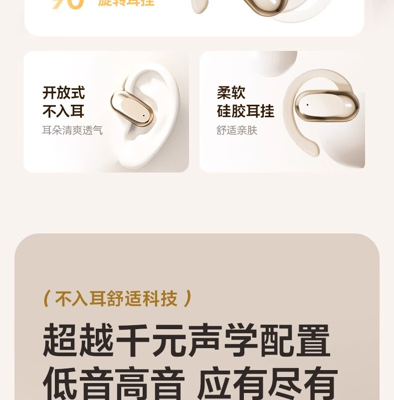 鑫羽音【厂家直发】【100万+】新款无线蓝牙耳机不入耳气骨传导耳挂式超 白-万元音效+超长续航+超清通话 蓝牙通用