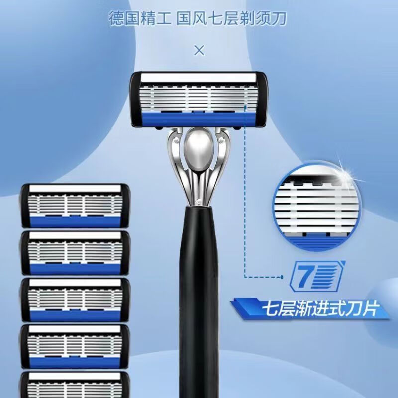 新款国风升级六层刀片手动通用七层剃须刀男士刮胡刀刀头刮脸高档 【12刀头+1刀柄+收纳盒+剃须膏】