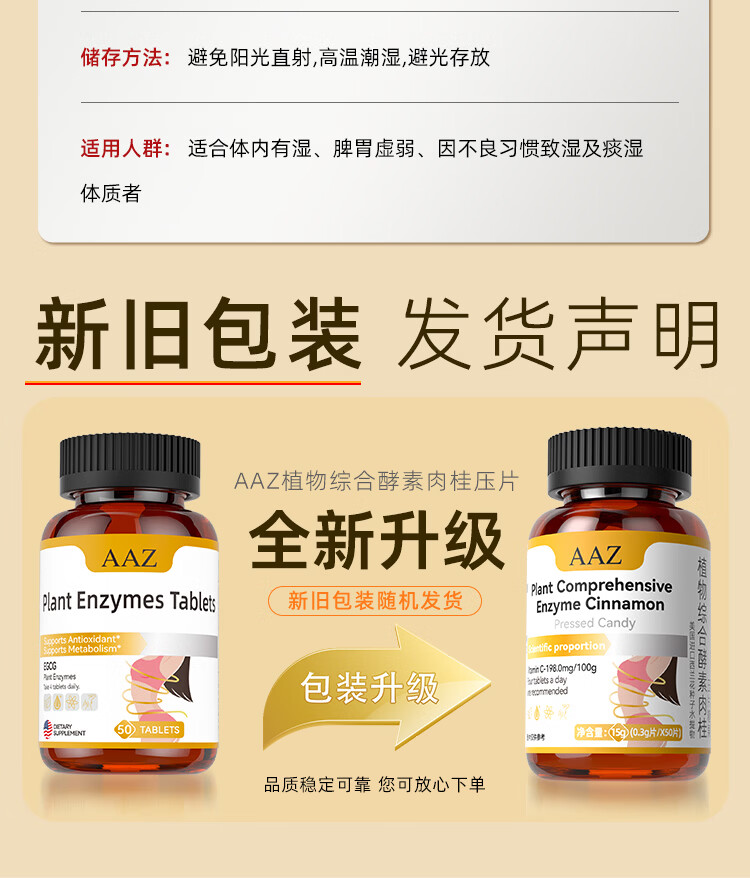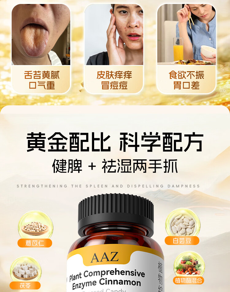 AAZ植物酵素排体内湿寒湿热身体轻盈呵护健康滋重调理 50片*3盒 【告别湿气 排体湿寒】