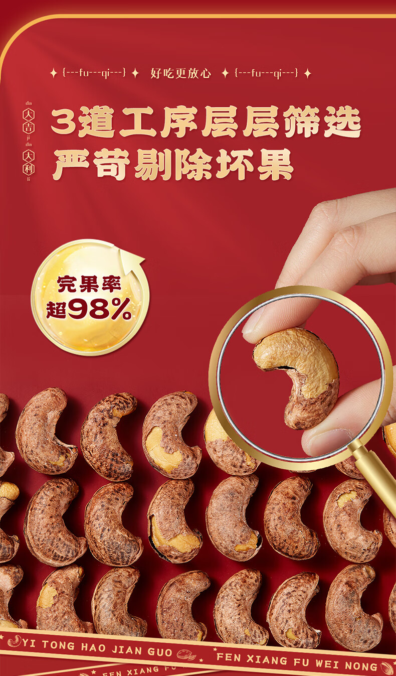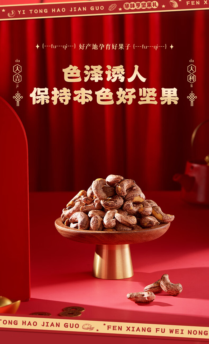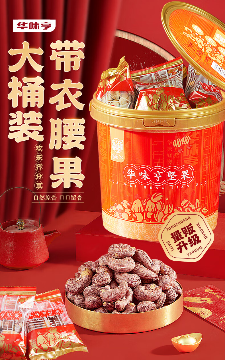 华味亨500g带衣腰果桶装约22小包独立包装送礼坚果大颗粒果仁年货零食 500g桶装