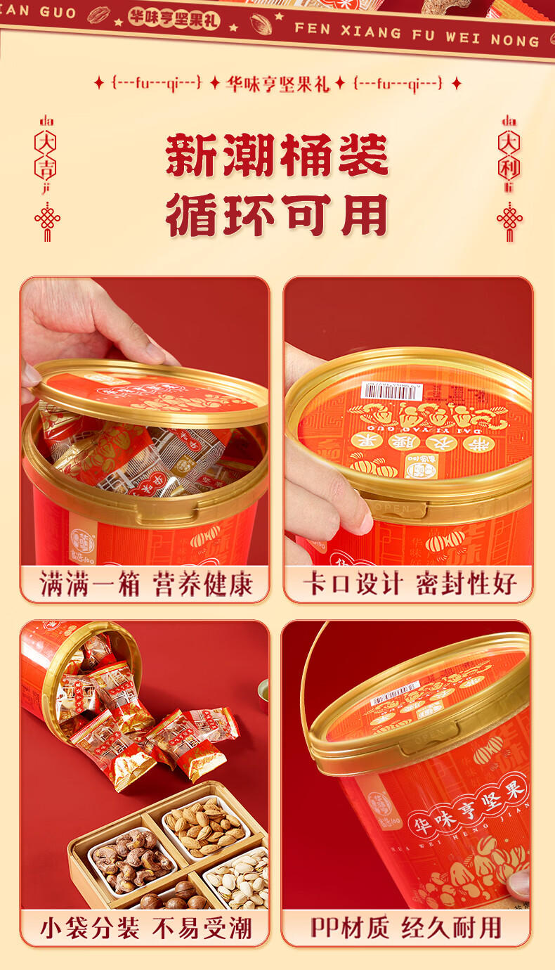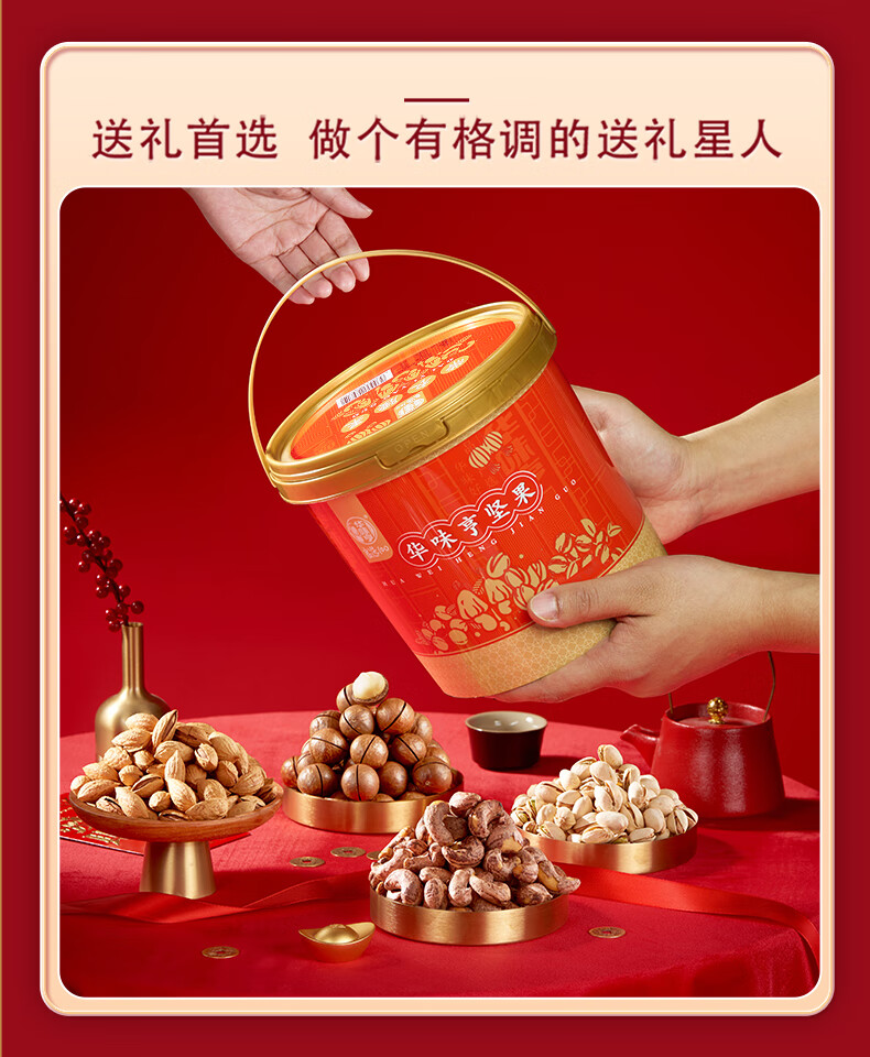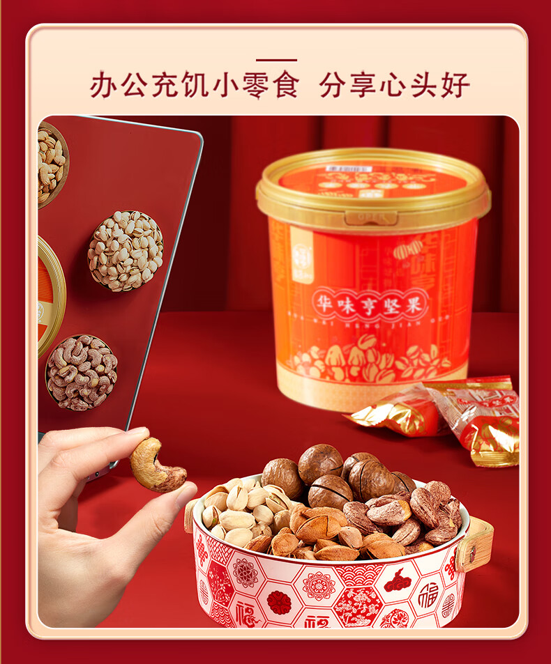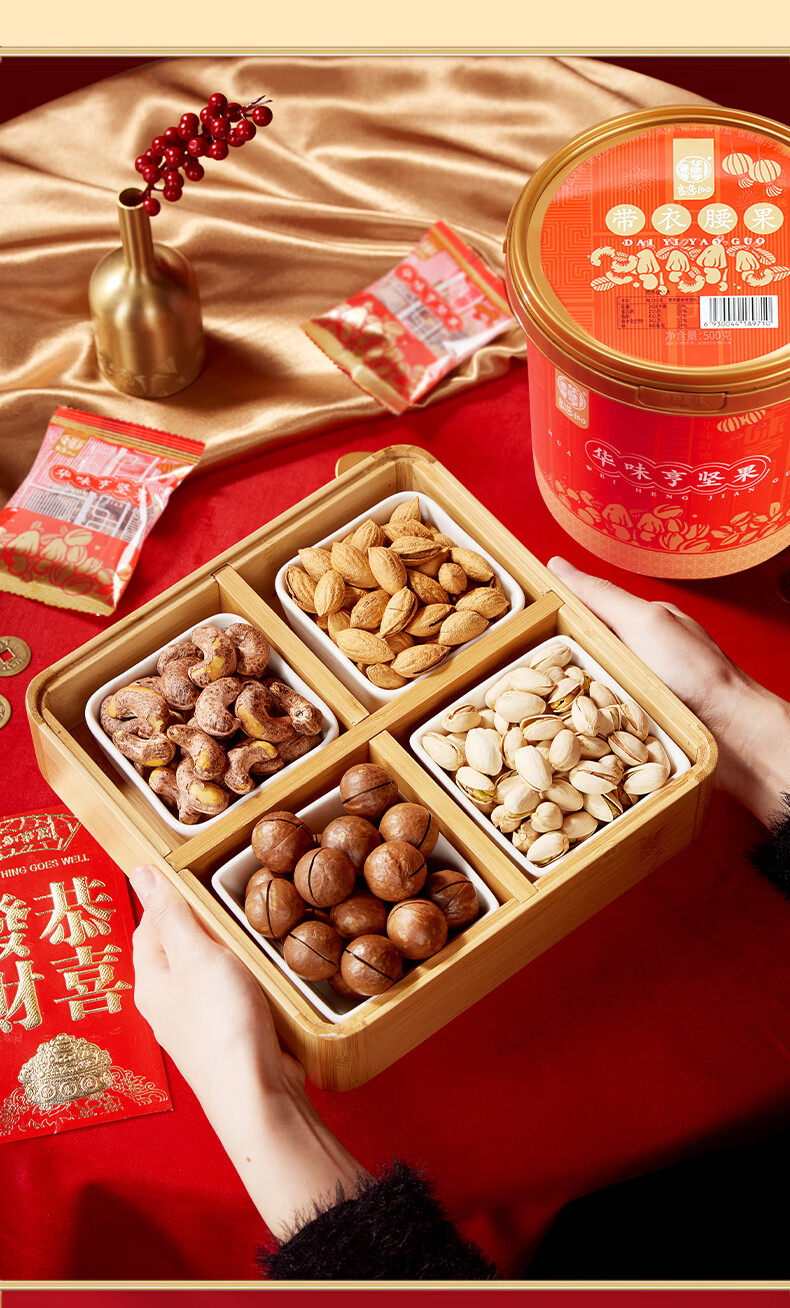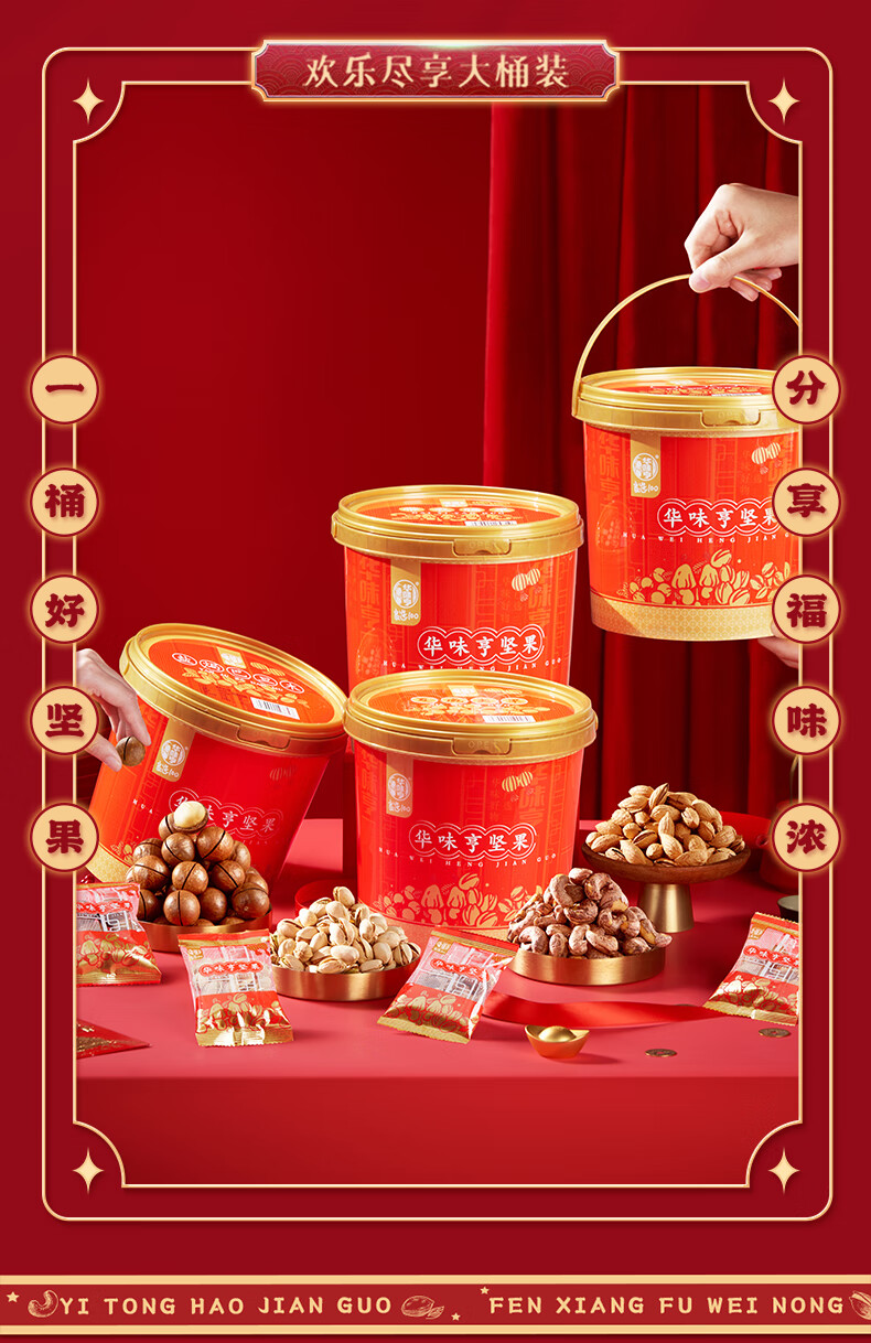 华味亨桶装混合坚果1kg 坚果炒货开心果腰果年货礼盒送礼零食休闲小吃 500g夏威夷果+500g盐焗巴旦木