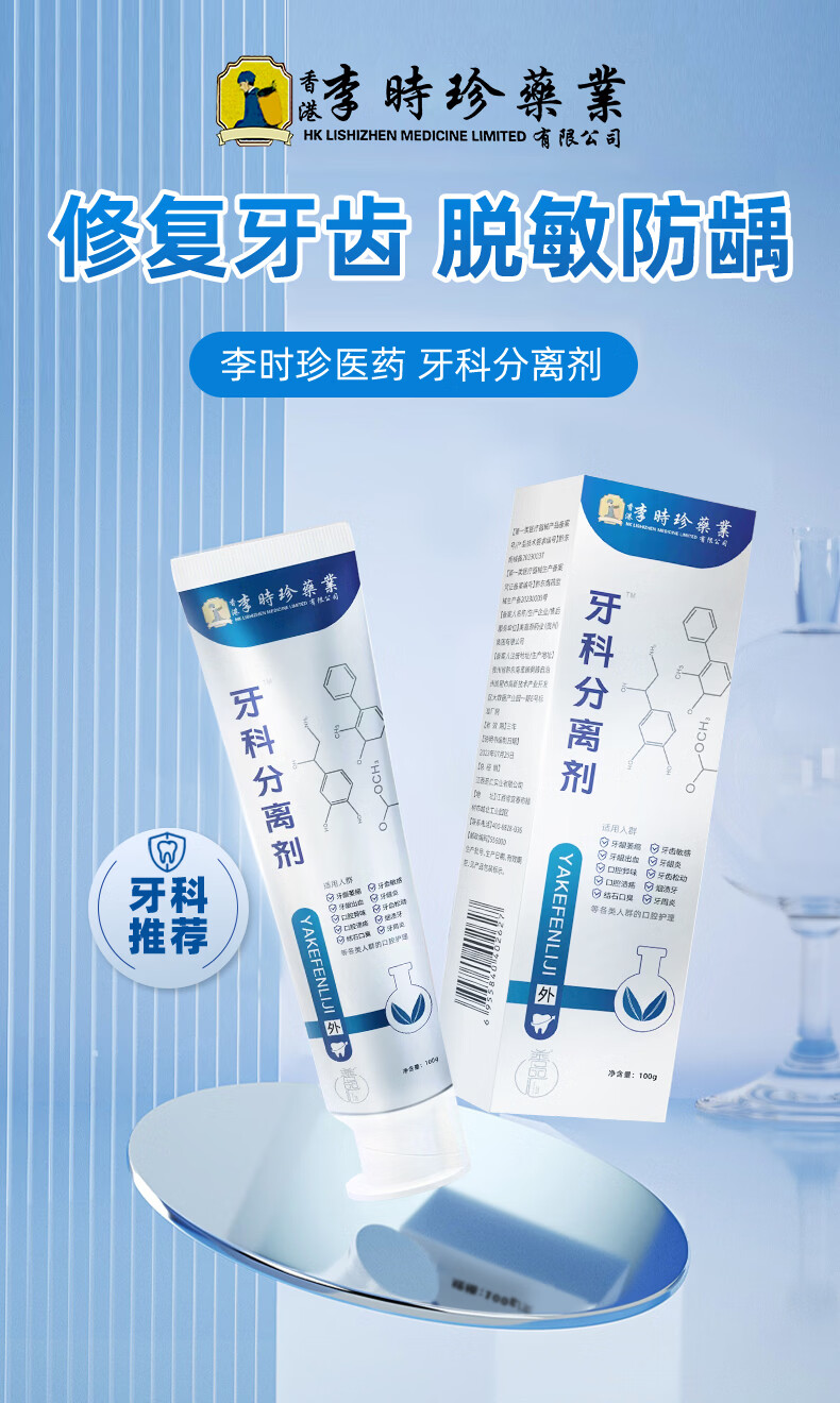 李时珍牙科分离剂牙膏状牙龈萎缩牙齿松动固齿修复再生牙周炎敏感专用 3盒疗程装【官方旗舰】93%顾客选择